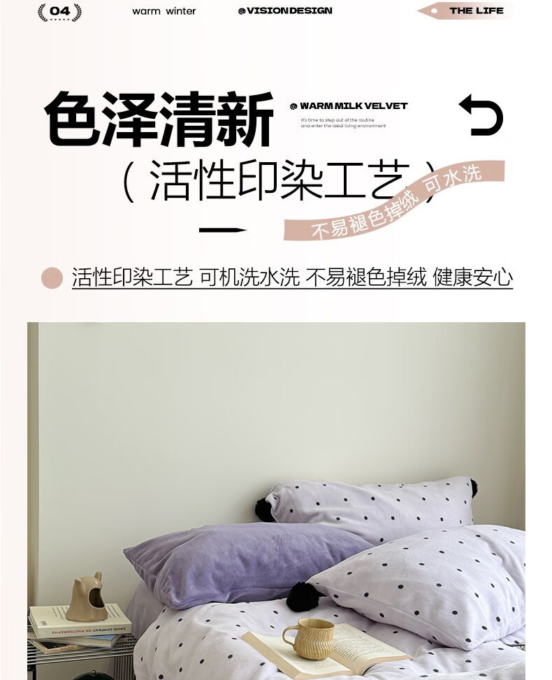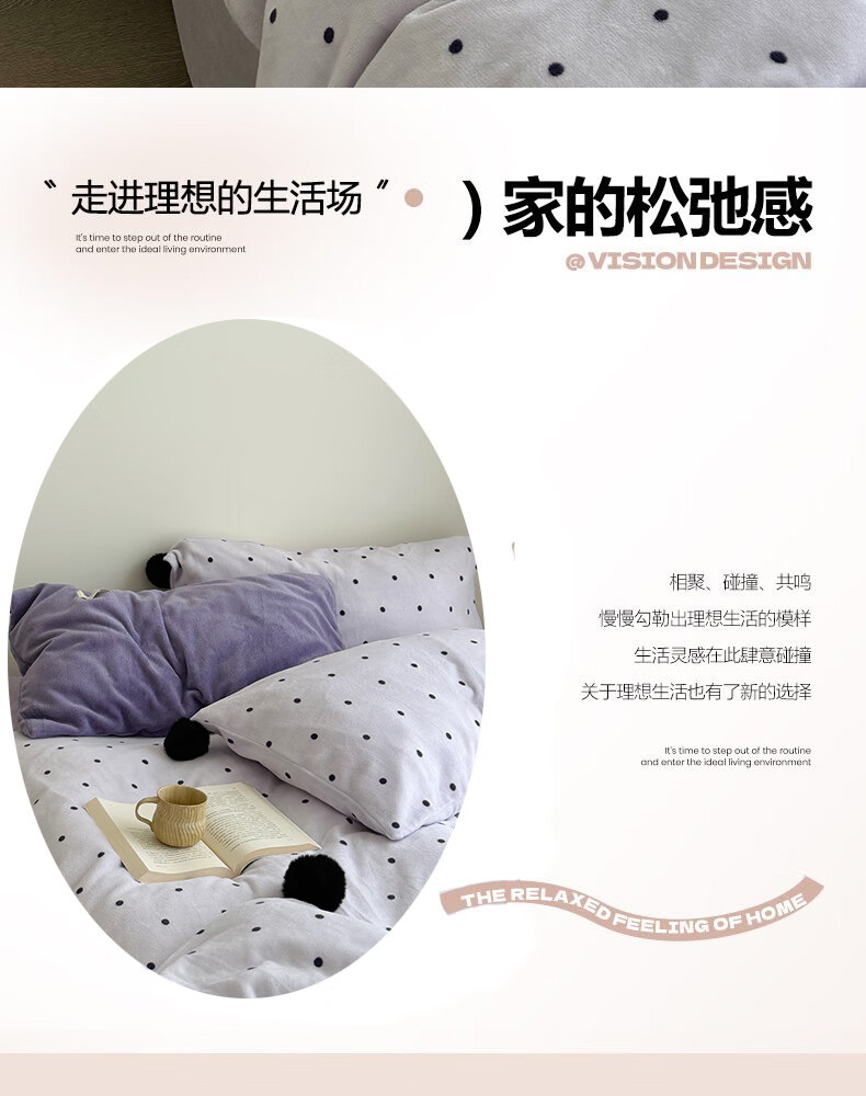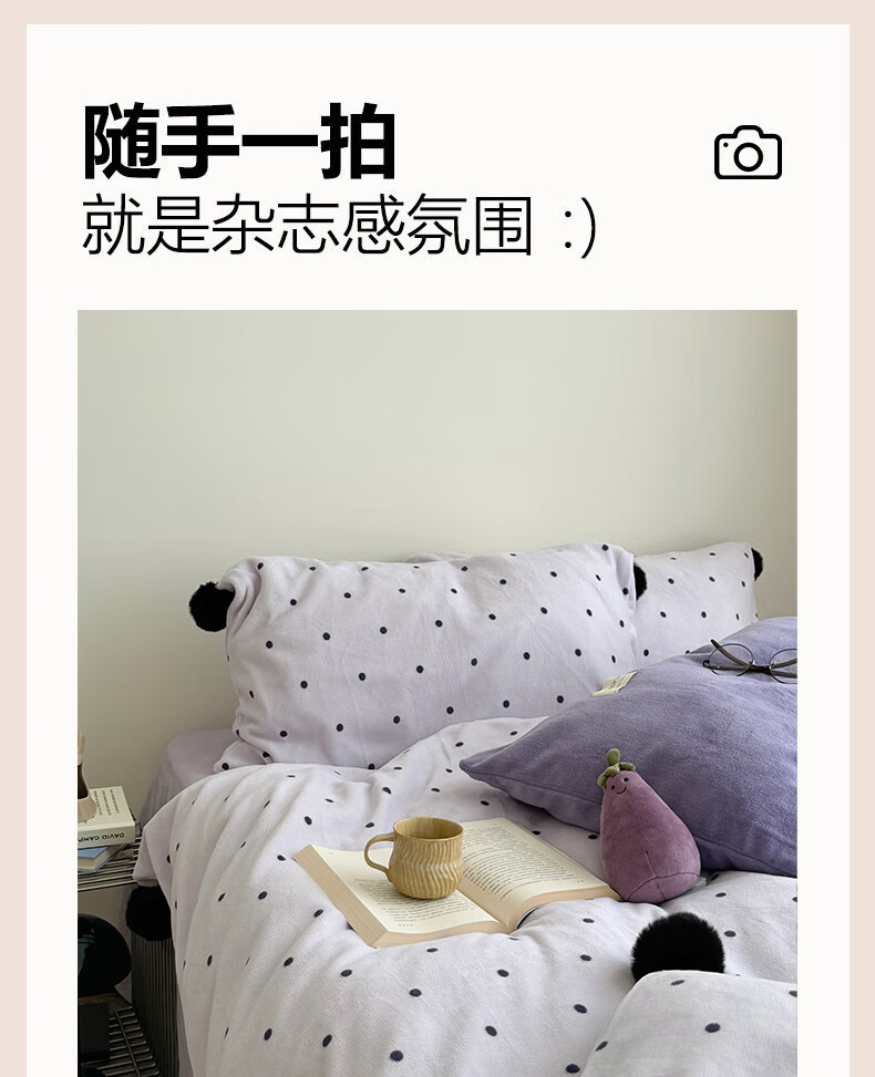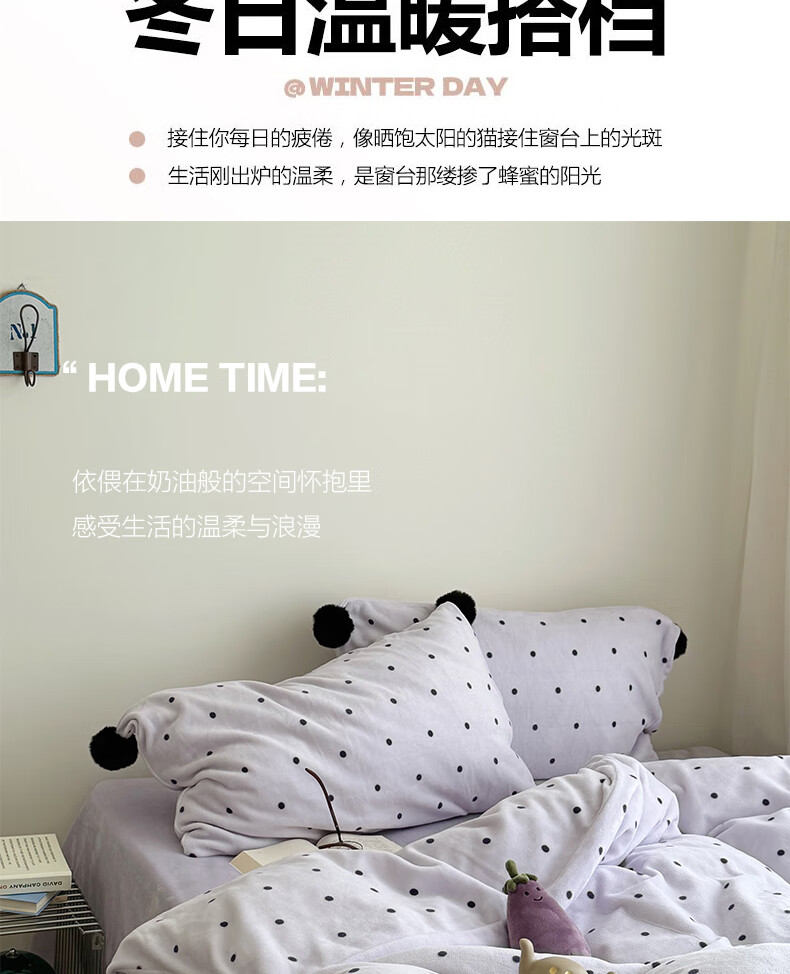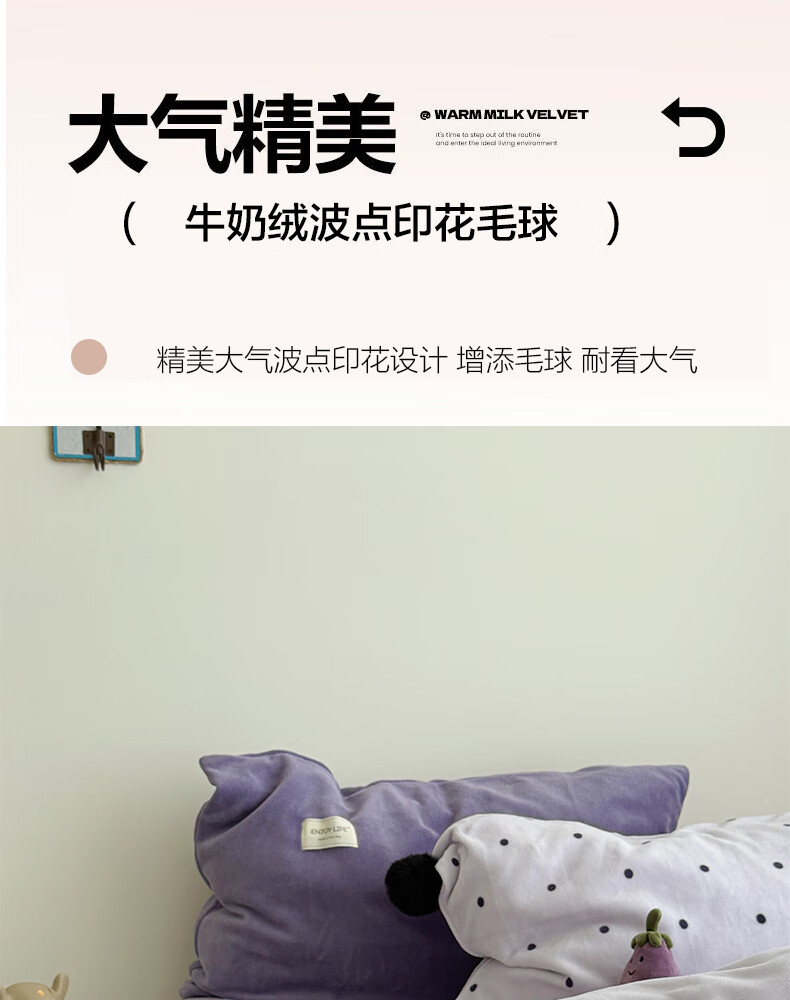 苏萱ins芋泥紫牛奶绒四件套冬天双面加绒珊瑚绒毛球被套床单床上用品4 波点紫-枕套混搭 2.0m 床单款 四件套-被套220x240cm