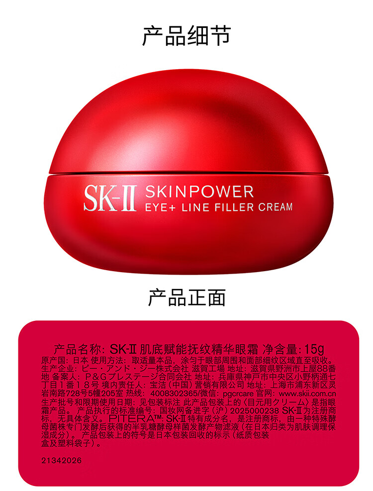 SK-II大红瓶大眼眼霜15g淡化细纹祛眼袋sk2化妆护肤品全套装生日礼物女
