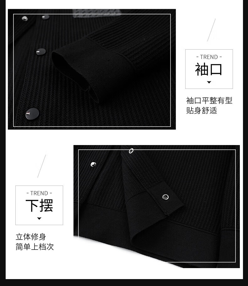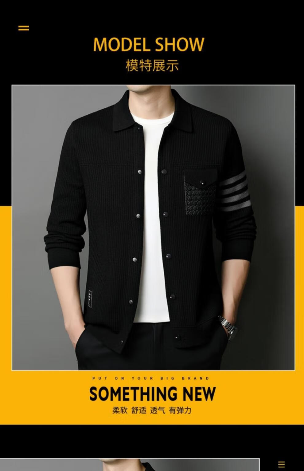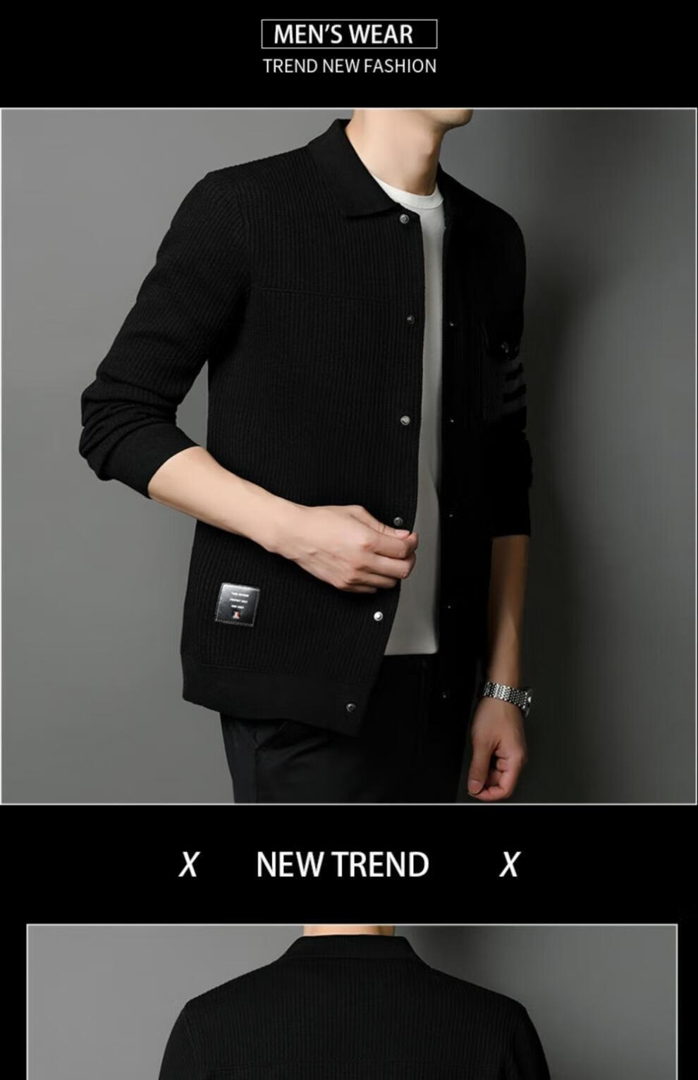 AX阿玛尼 春秋季新款翻领针织夹克男士个性皮口袋上衣休闲男装外套 黑色-4076 新款 L