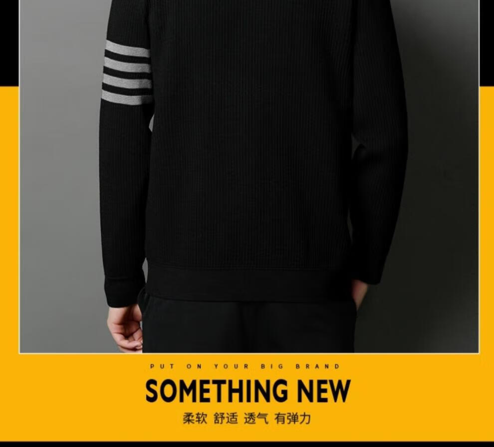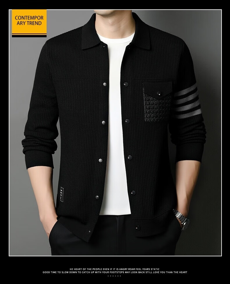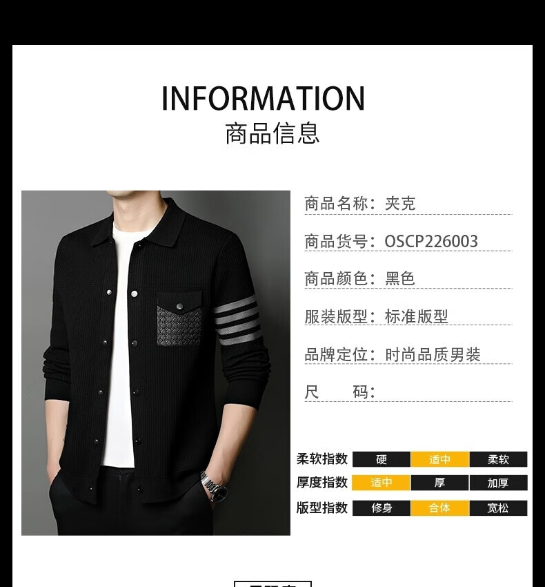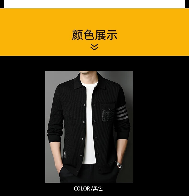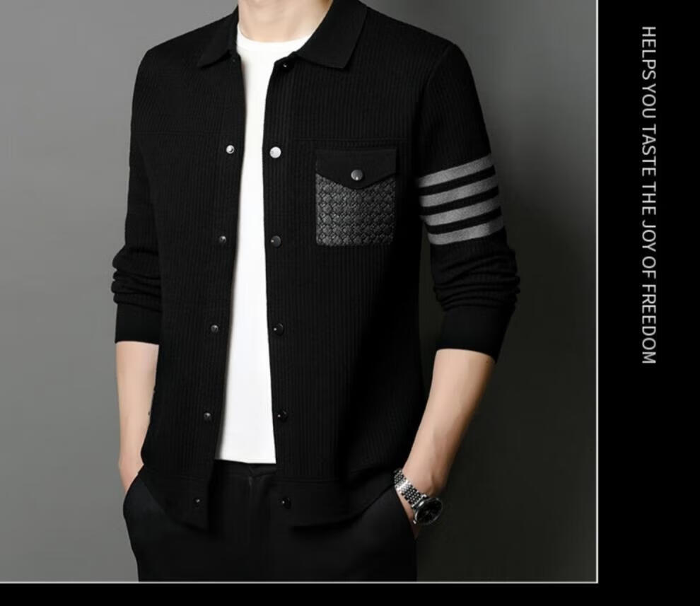 AX阿玛尼 春秋季新款翻领针织夹克男士个性皮口袋上衣休闲男装外套 黑色-4076 新款 L