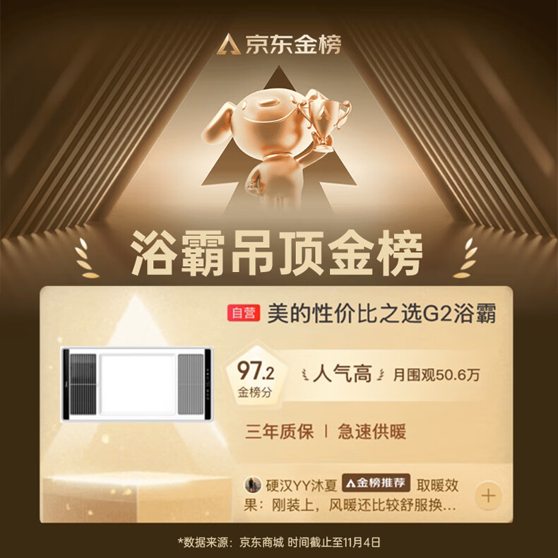 美的(Midea)浴霸暖风照明排气一体集成300x600风暖卫生间暖风机换气浴霸灯G2