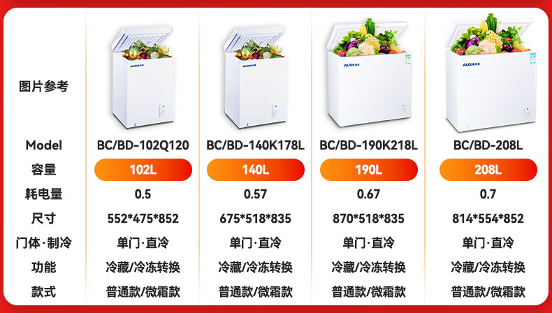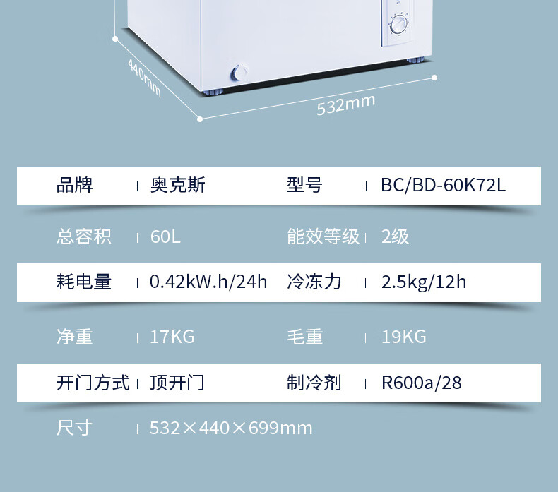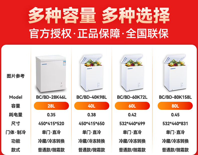 奥克斯小冰柜家用省电保鲜冷冻冰柜 商用节能迷你小型卧式冷柜 储母乳柜冰箱 【国补】128升级减霜款|可囤60斤肉 28L
