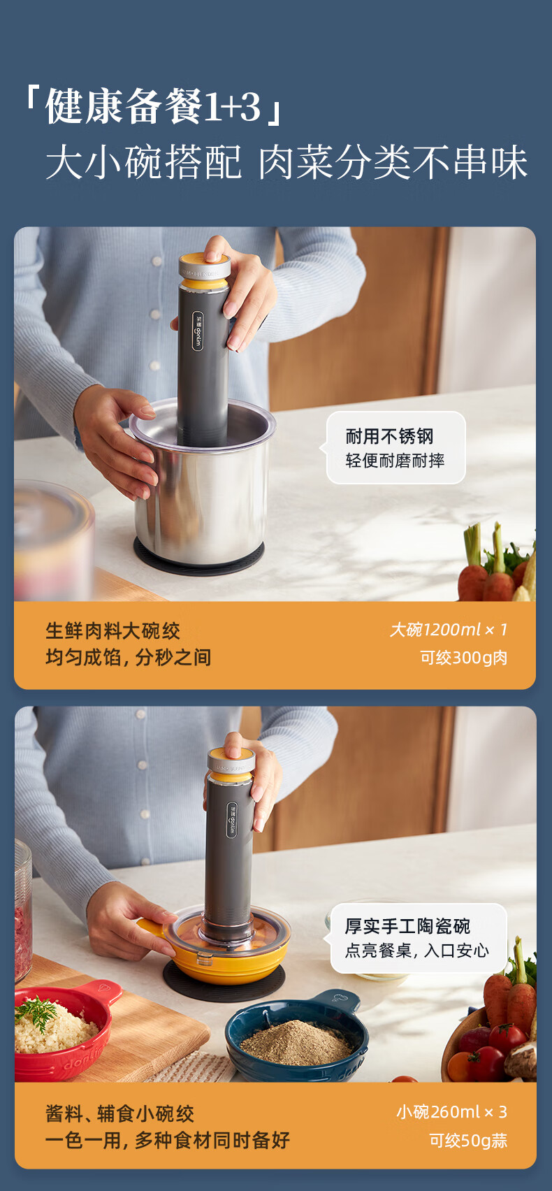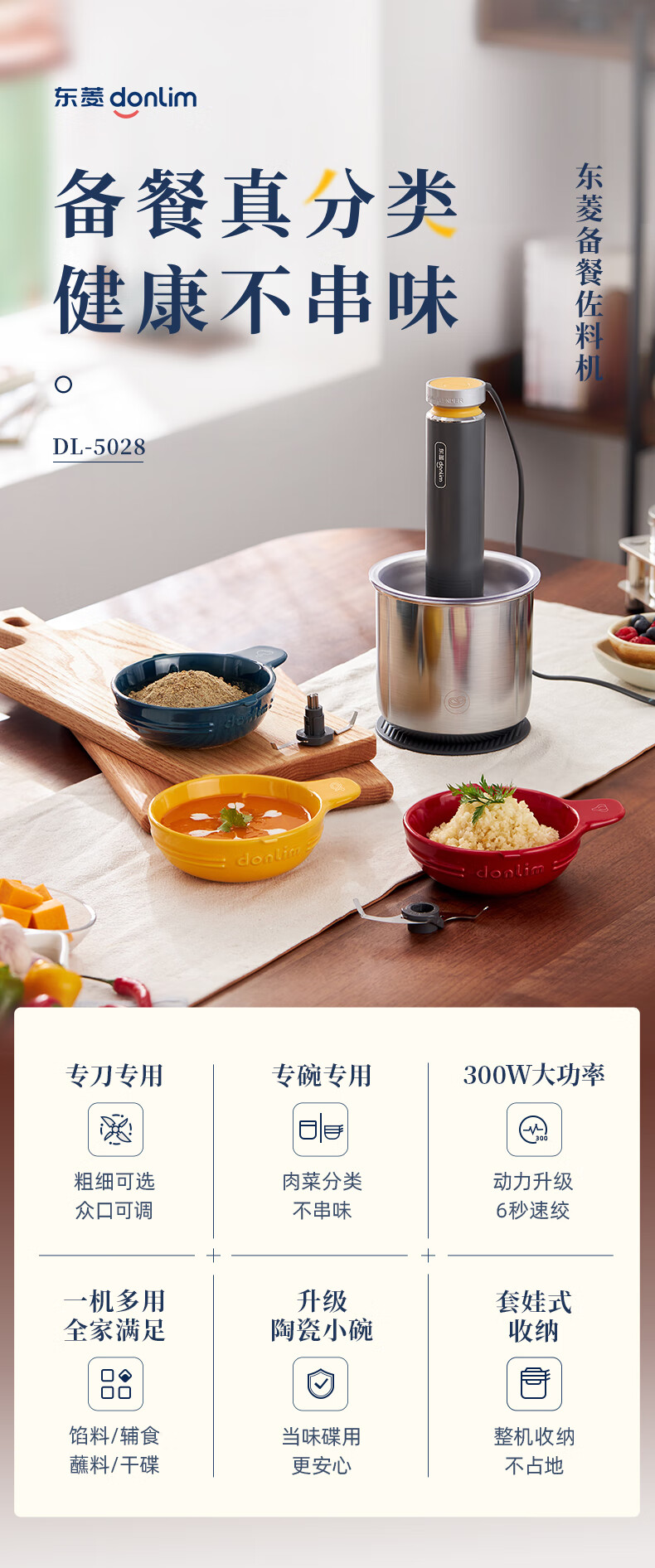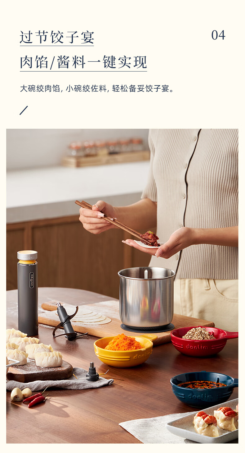 东菱(Donlim)绞肉机家用套娃佐料机电动辅食机绞馅碎肉料理机切菜磨粉捣蒜器DL-5028不锈钢款