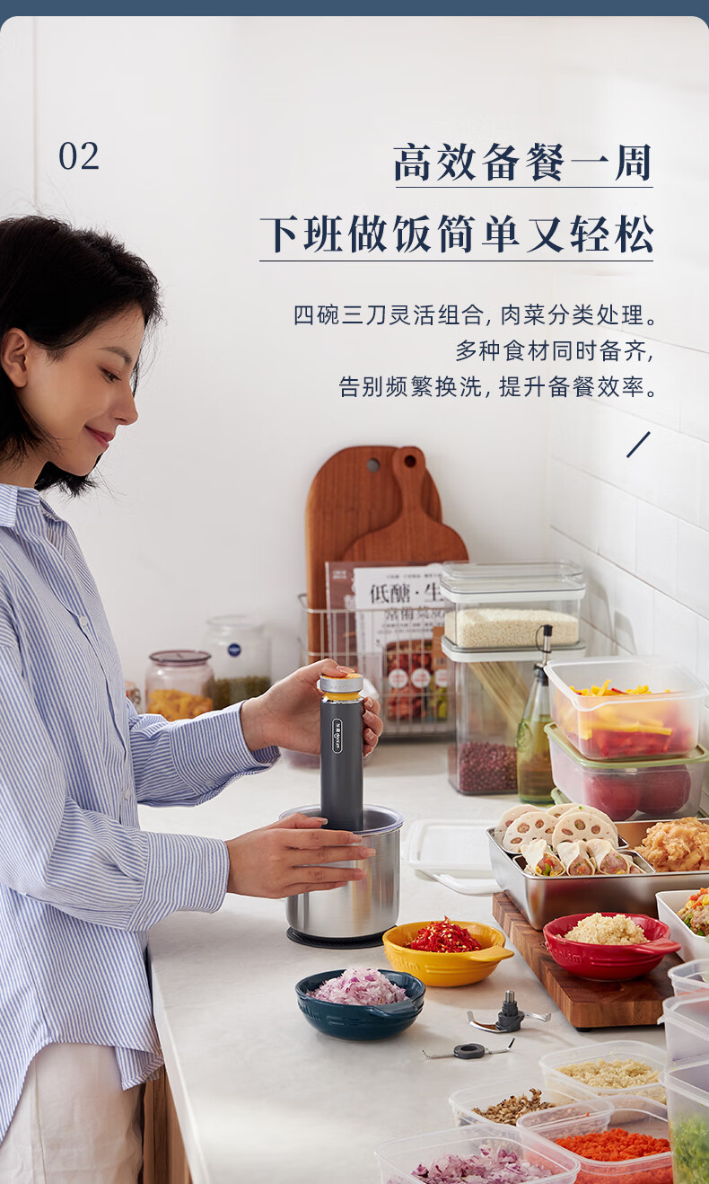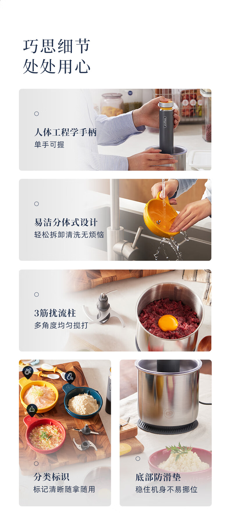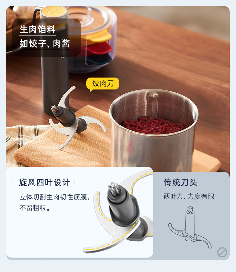 东菱(Donlim)绞肉机家用套娃佐料机电动辅食机绞馅碎肉料理机切菜磨粉捣蒜器DL-5028不锈钢款
