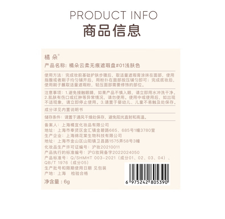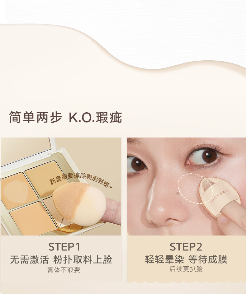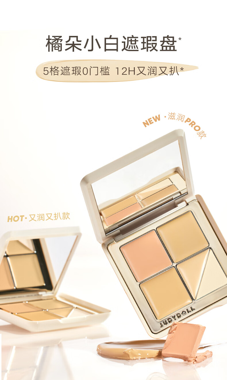 橘朵(Judydoll)五色遮瑕盘遮瑕膏底妆遮盖斑点黑眼圈提亮泪沟法令纹02自然肤色