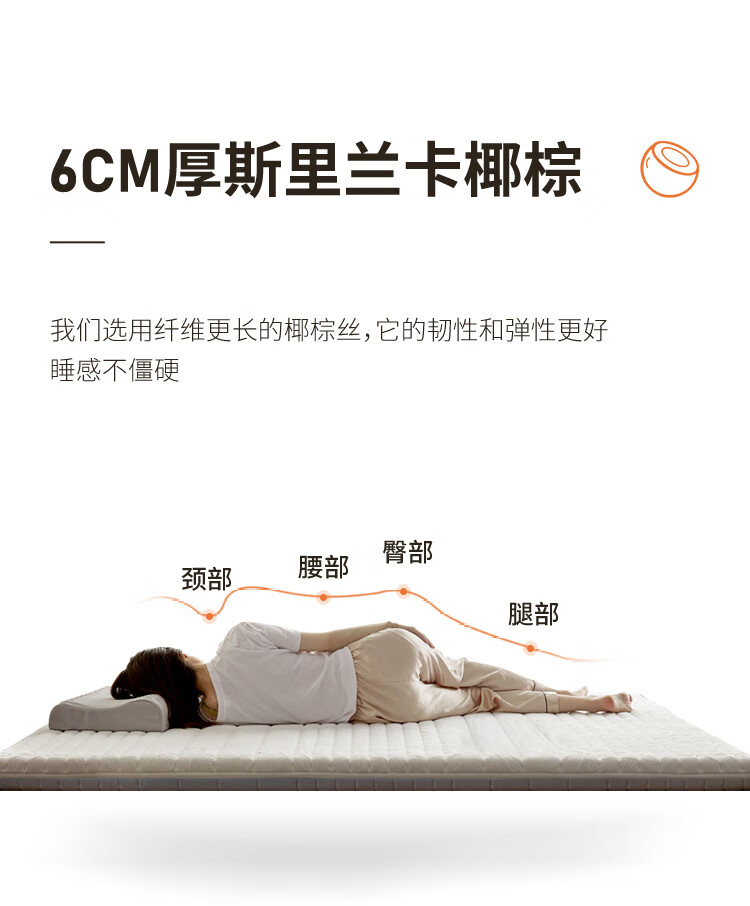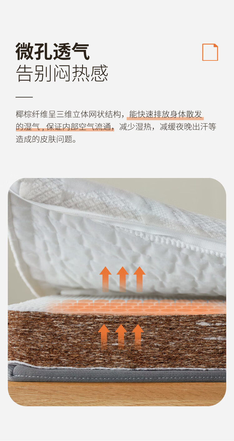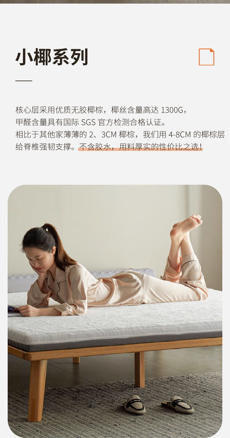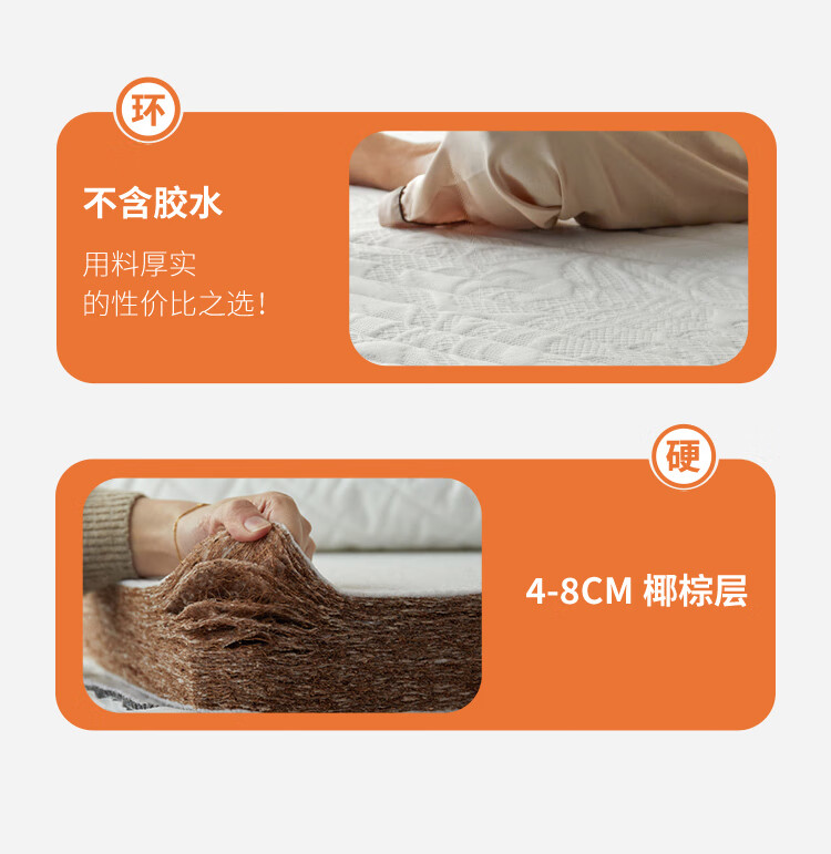 源氏木语卧室床垫天然椰棕环保垫家用棕垫双人薄款硬垫子1.8*2m 京仓款