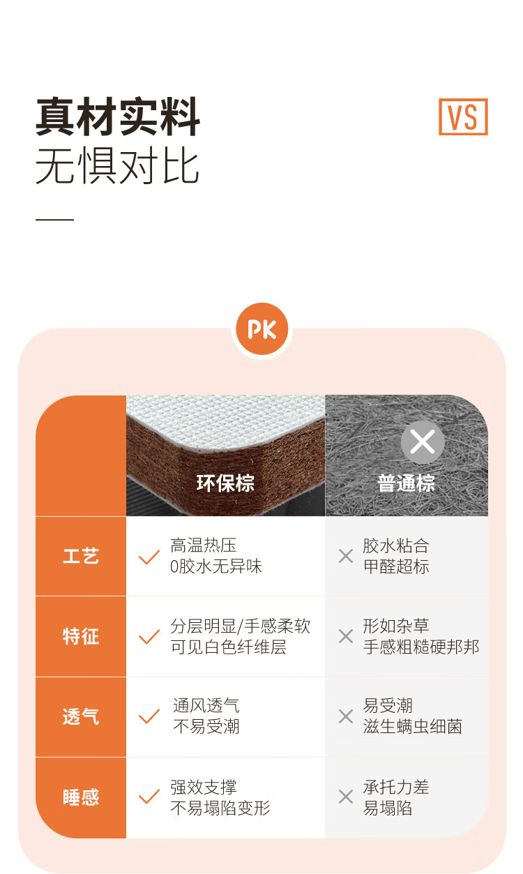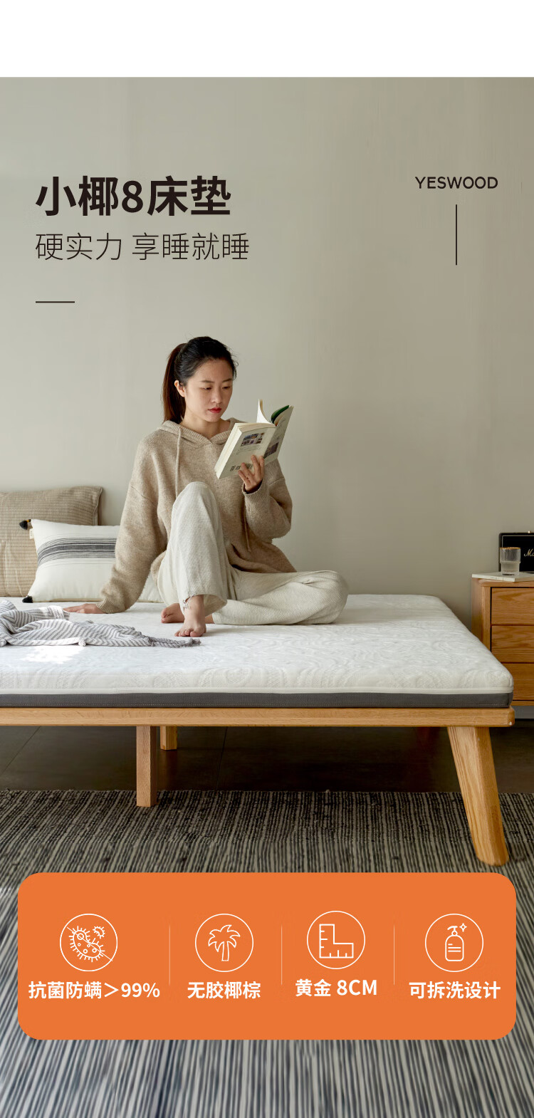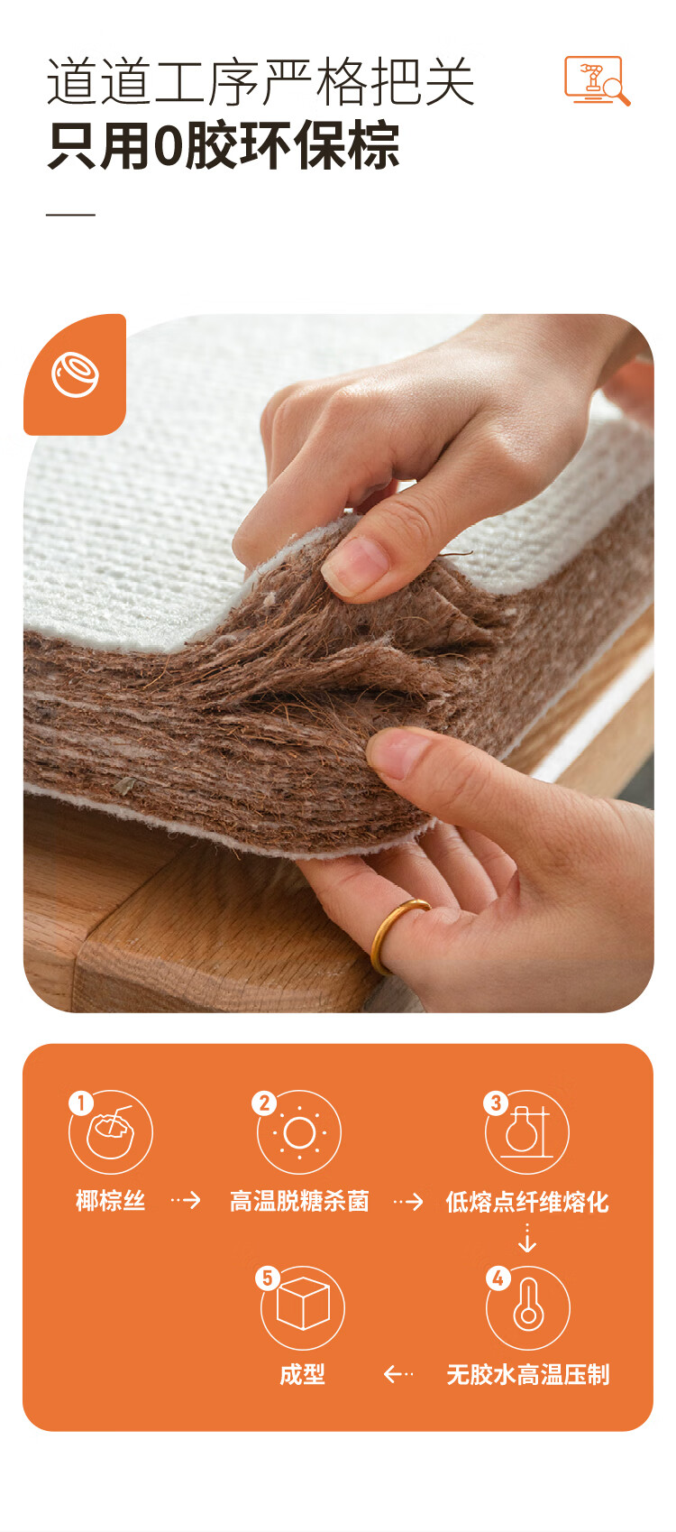 源氏木语卧室床垫天然椰棕环保垫家用棕垫双人薄款硬垫子1.8*2m 京仓款