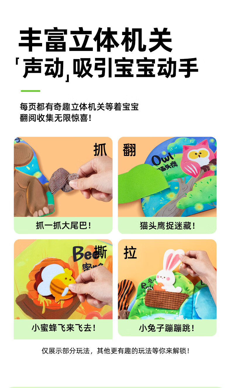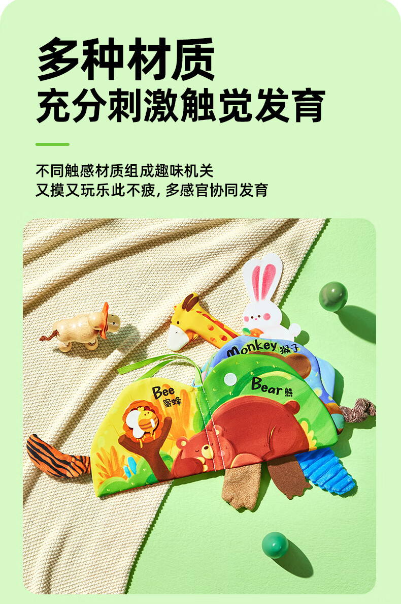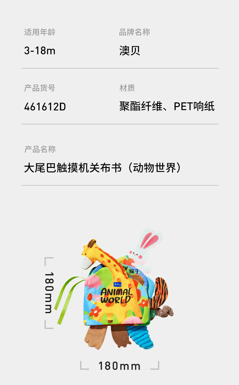 澳贝(auby)婴幼儿童玩具宝宝早教大尾巴触摸机关布书可水洗啃咬撕不烂新生儿