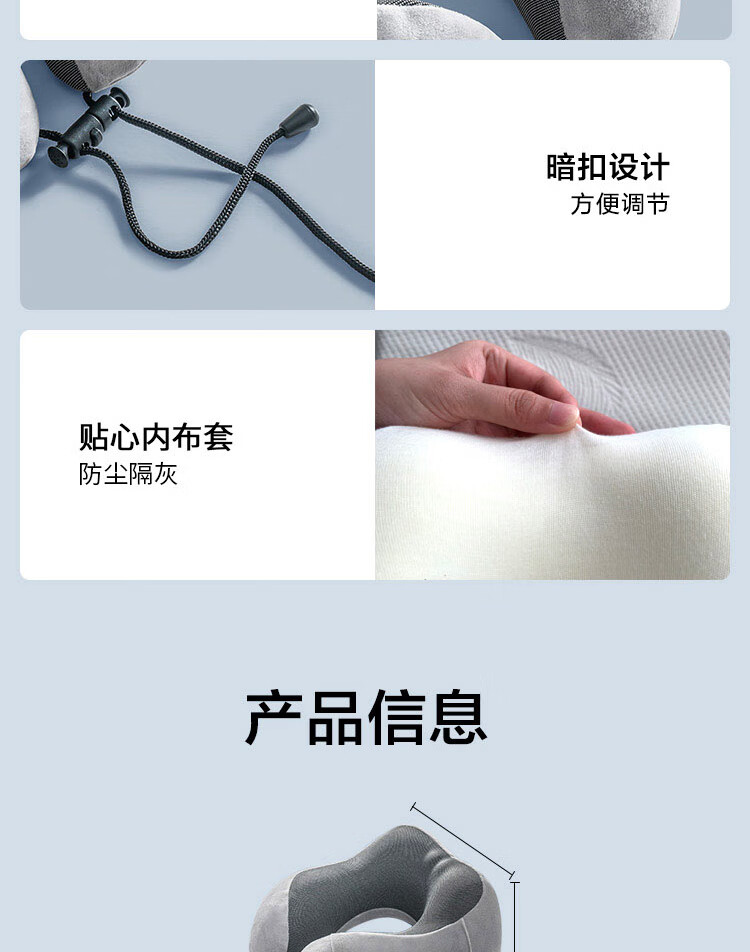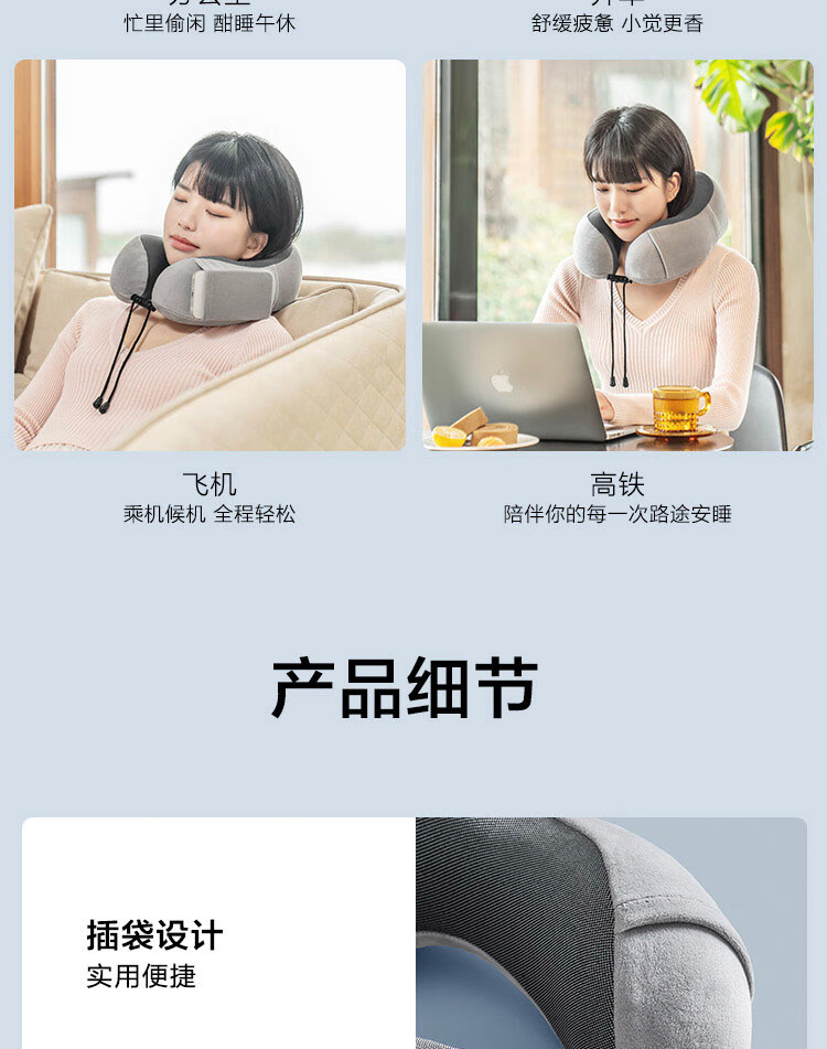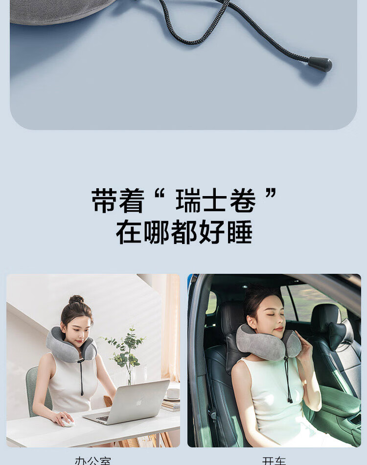 京东京造 Swiss Roll瑞士卷旅行枕 记忆棉飞机办公室颈椎U型枕午睡枕 灰色