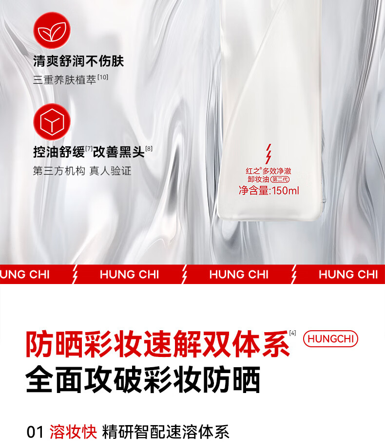 红之(HungChi)【王源同款】不纠结2.0多效净澈卸妆油150ml深层卸妆温和女生礼物