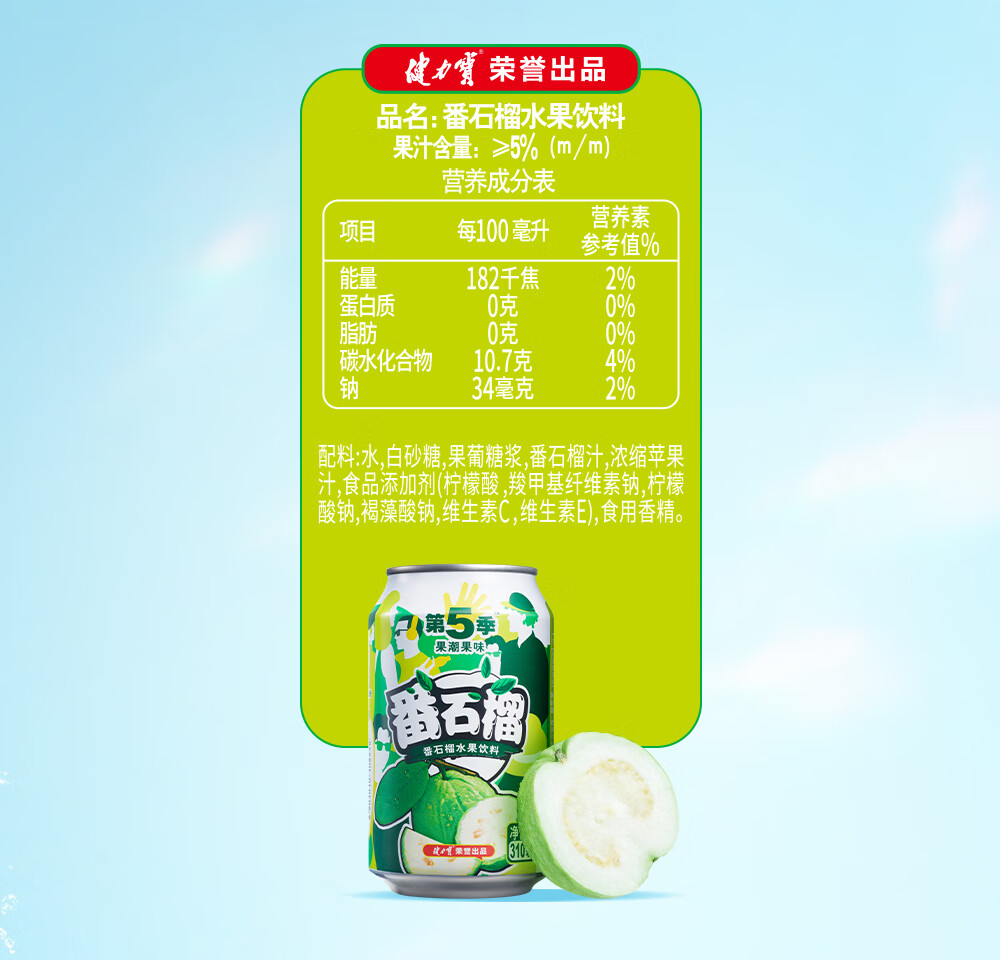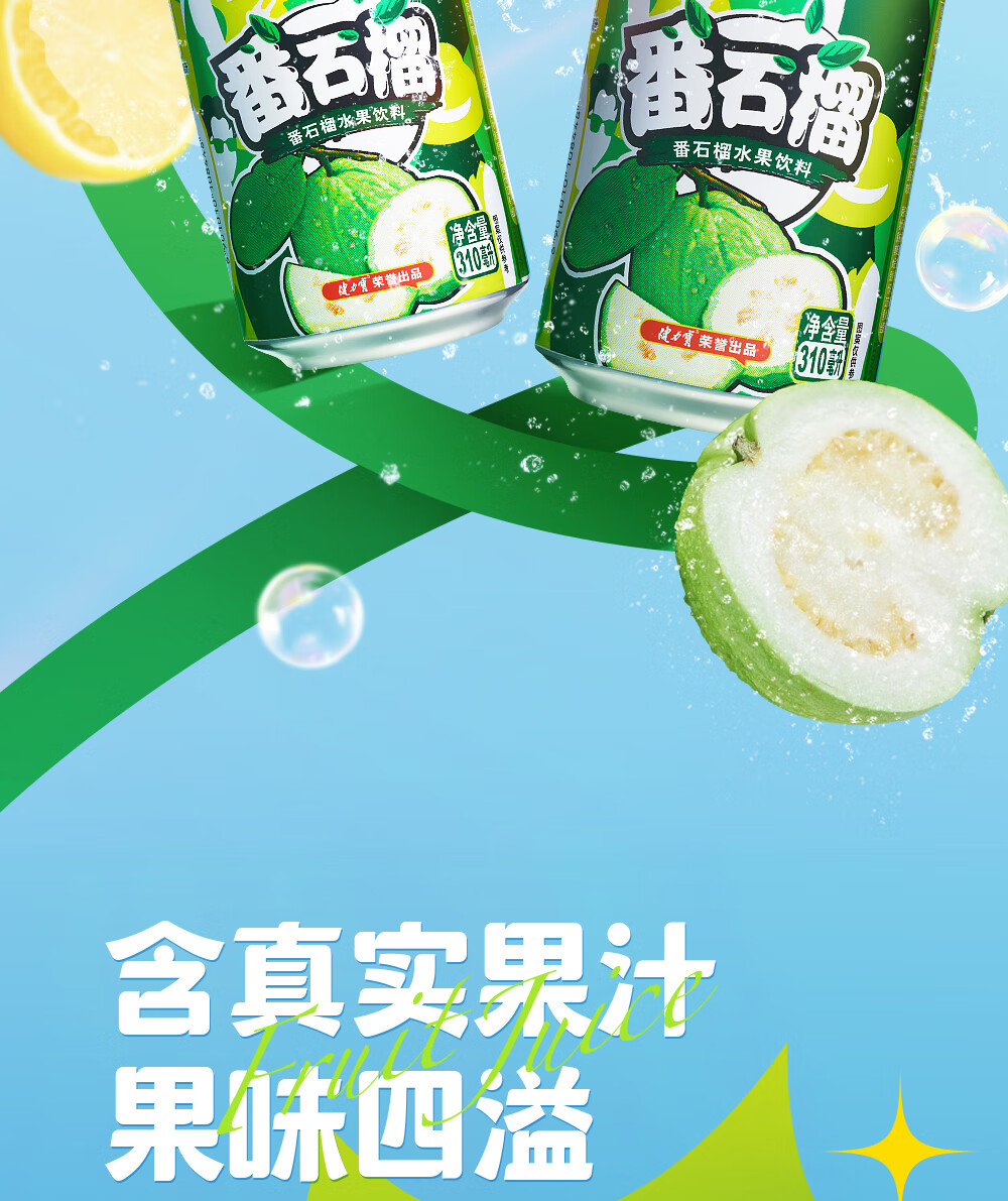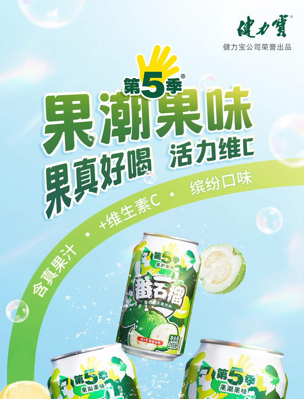 健力宝第5季系列番石榴芭乐口味水果饮料310ml*6罐装