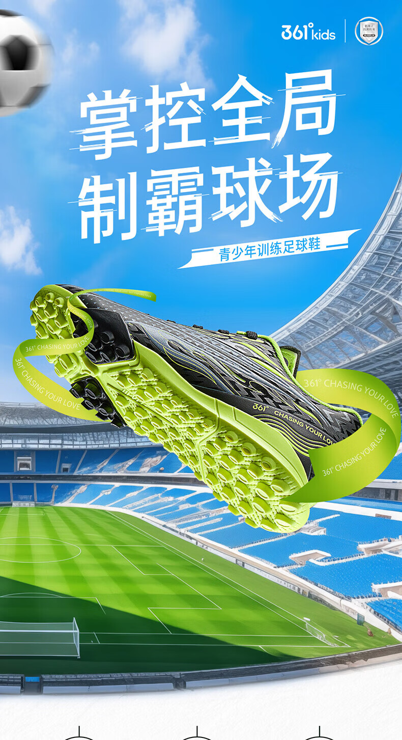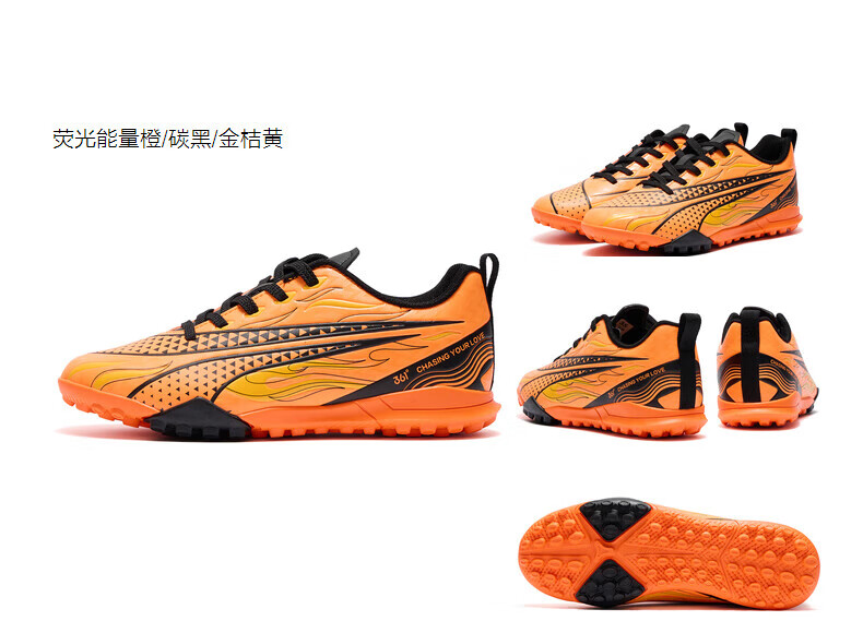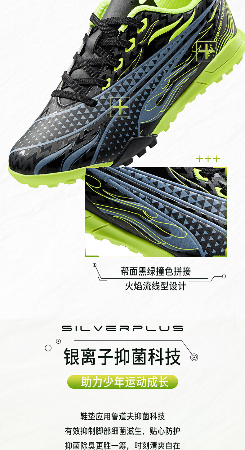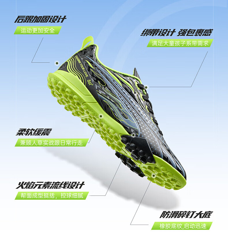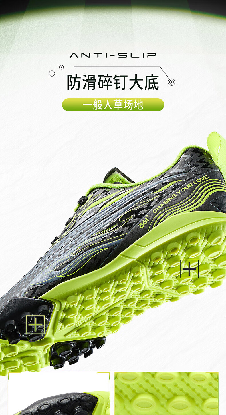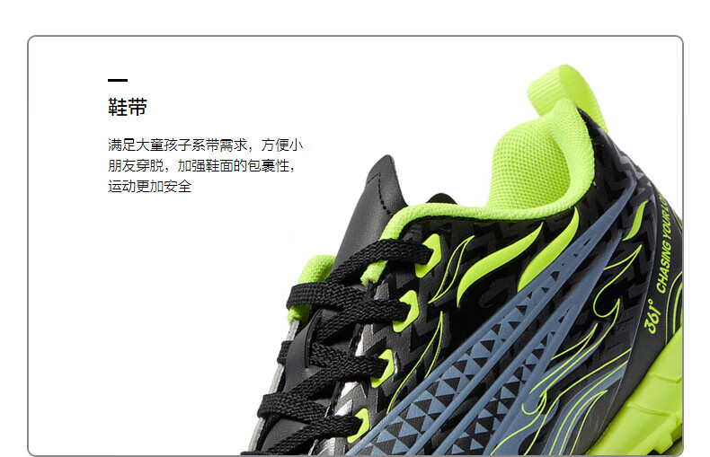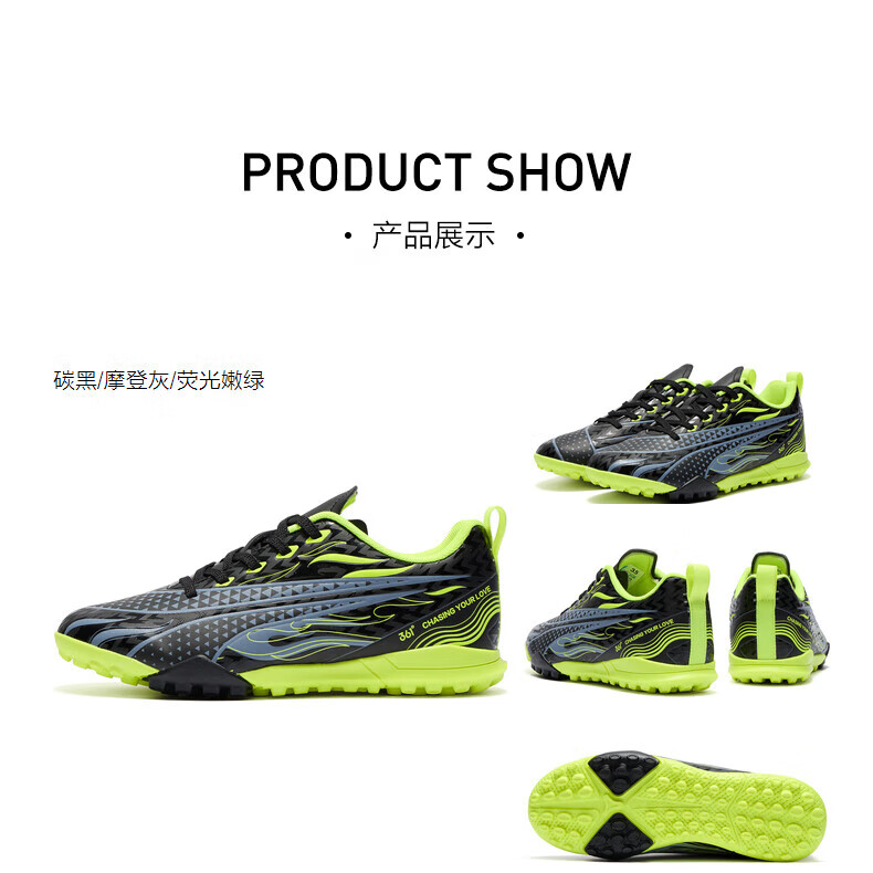 361°童鞋男童运动足球鞋秋季新款中大童鞋子 碳黑/摩登灰/荧光嫩绿 35