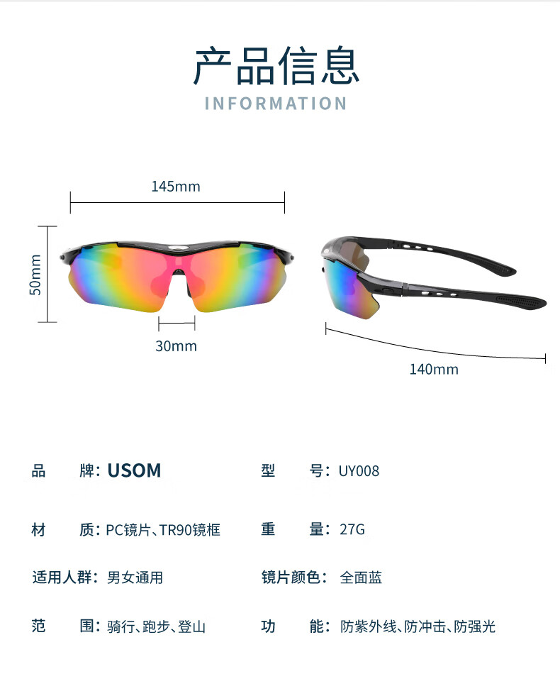USOM骑行眼镜户外运动跑步马拉松防紫外线太阳镜可配近视度数