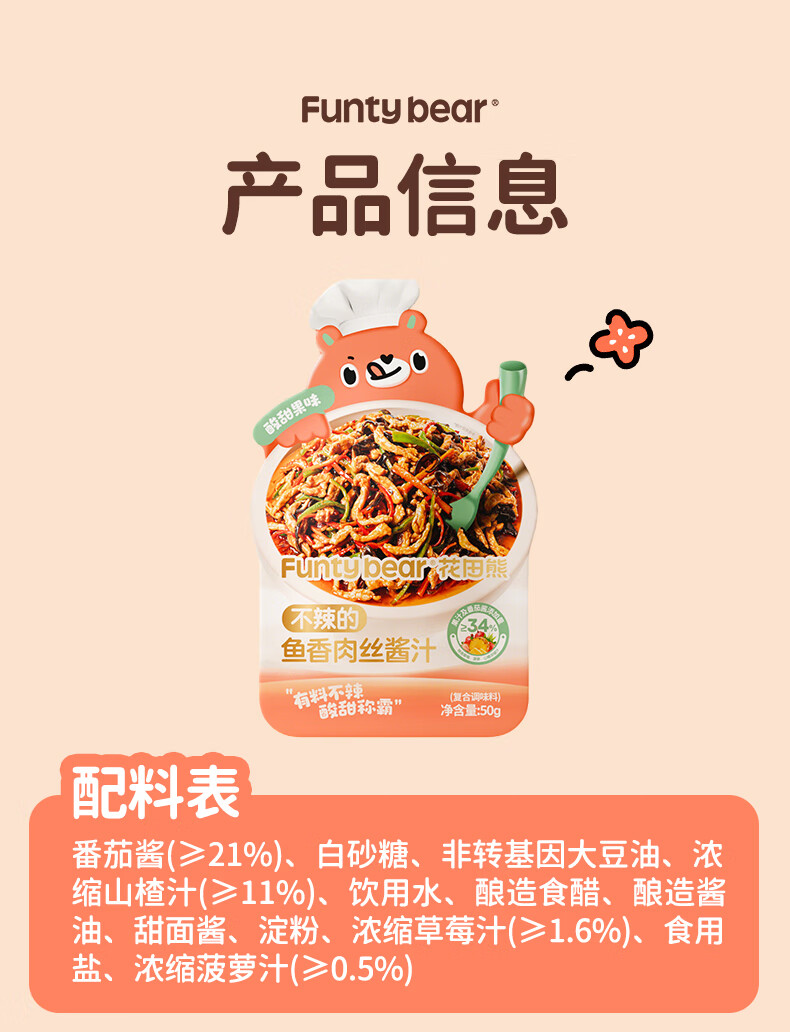 花田熊鱼香肉丝酱汁不辣的调味汁儿童酸甜糖醋汁热门商品炒菜懒人调味料