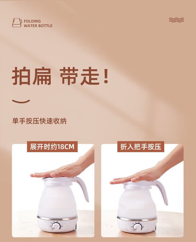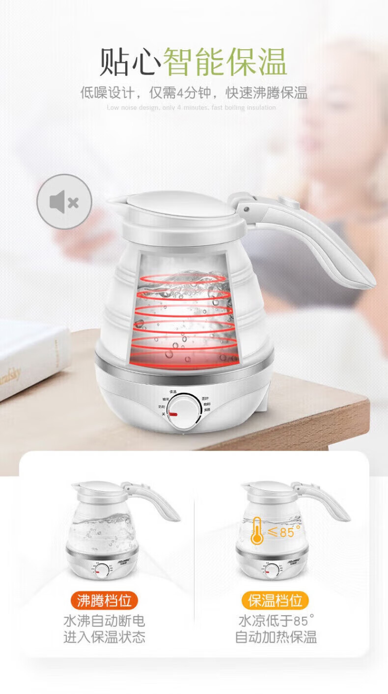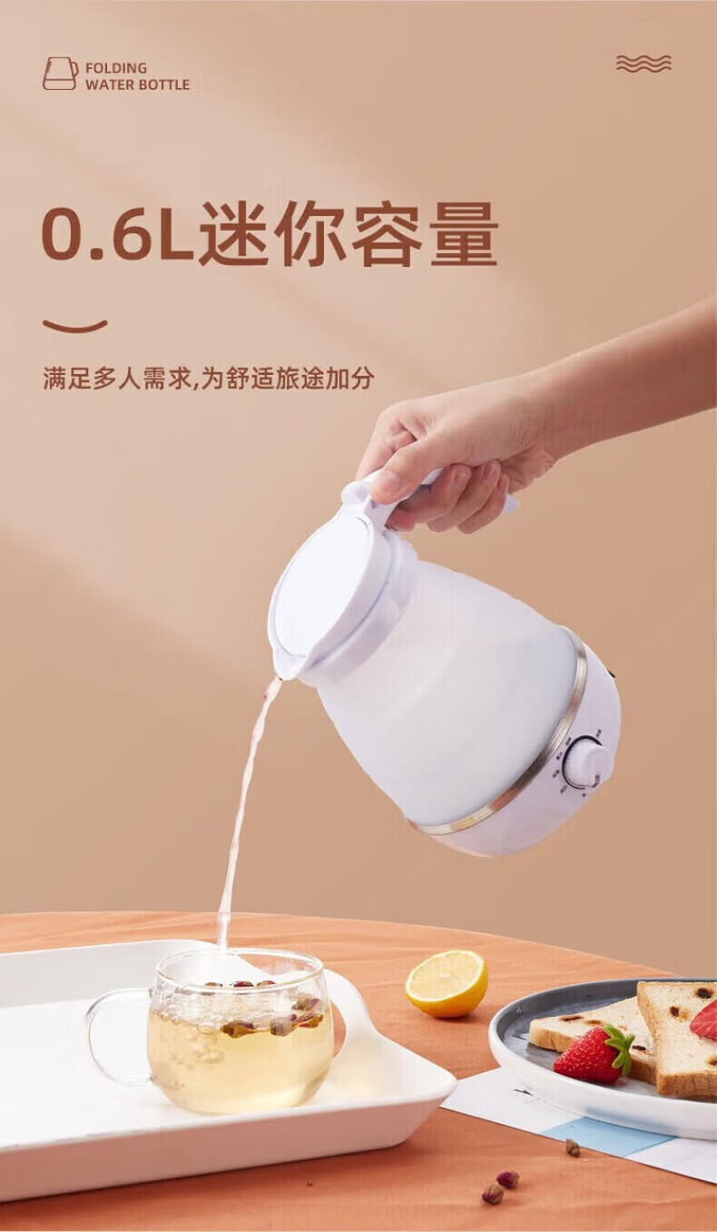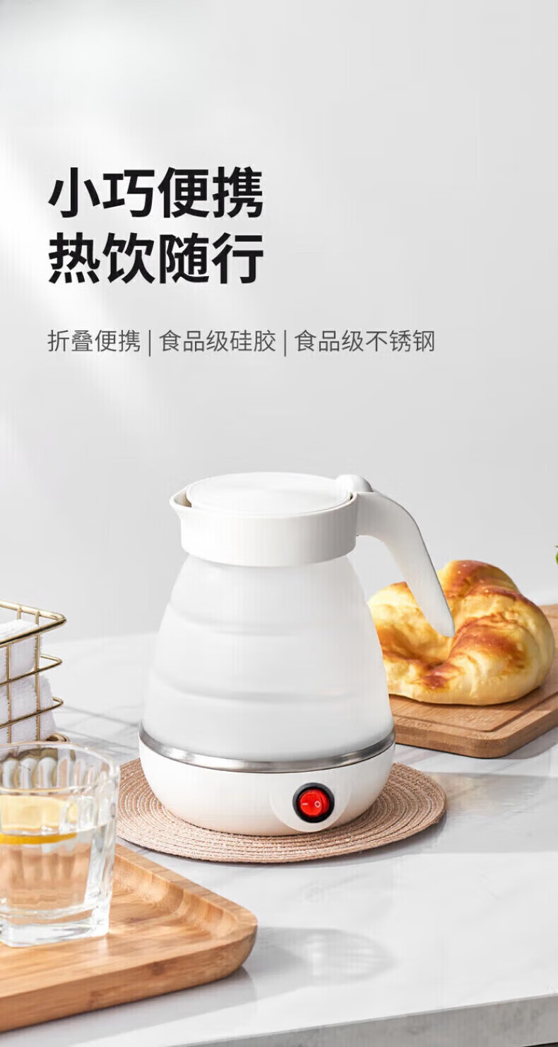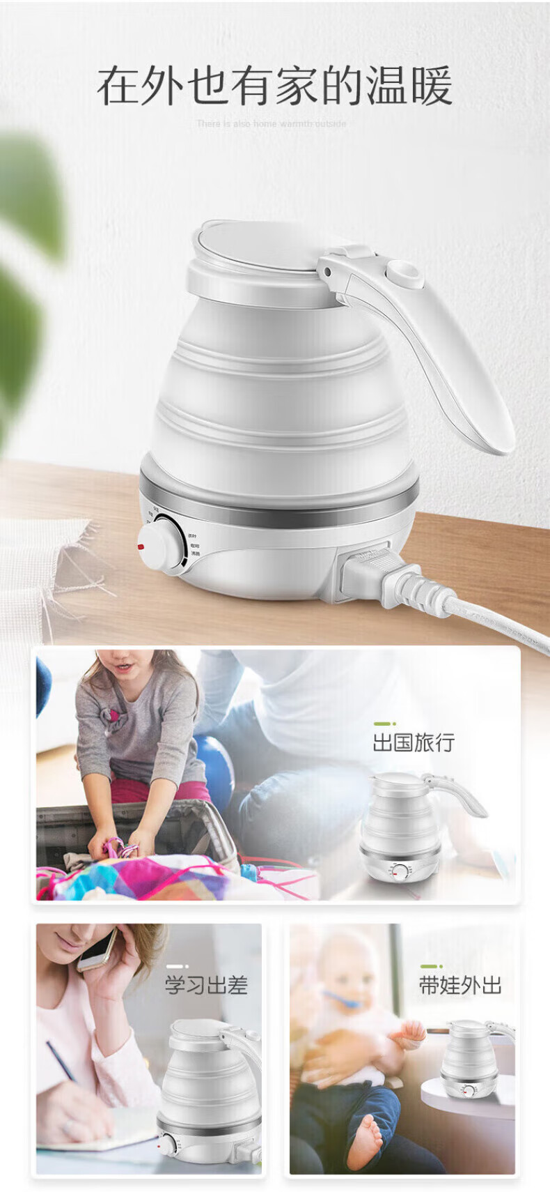 DEATKN德国便携式烧水壶电水壶折叠烧水壶旅行出差小型保温烧水壶宿 0.6L [开关款+折叠水杯]婴儿级