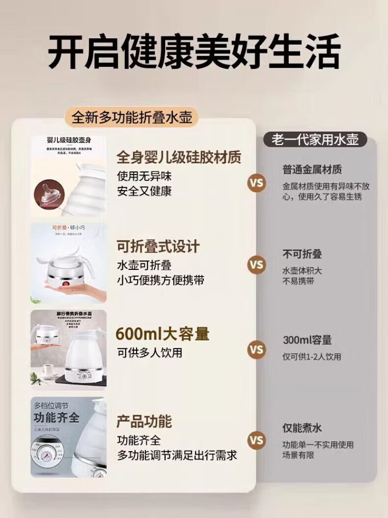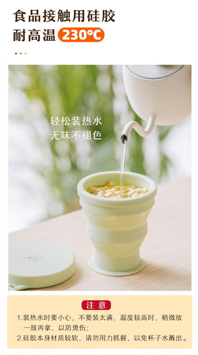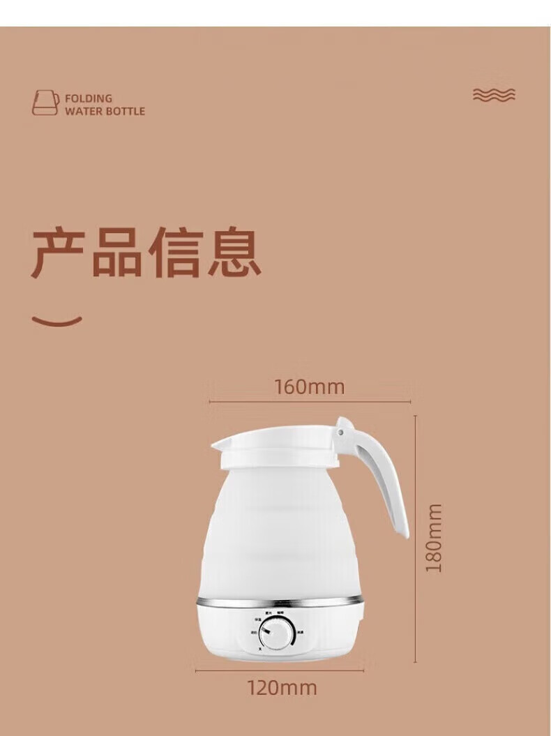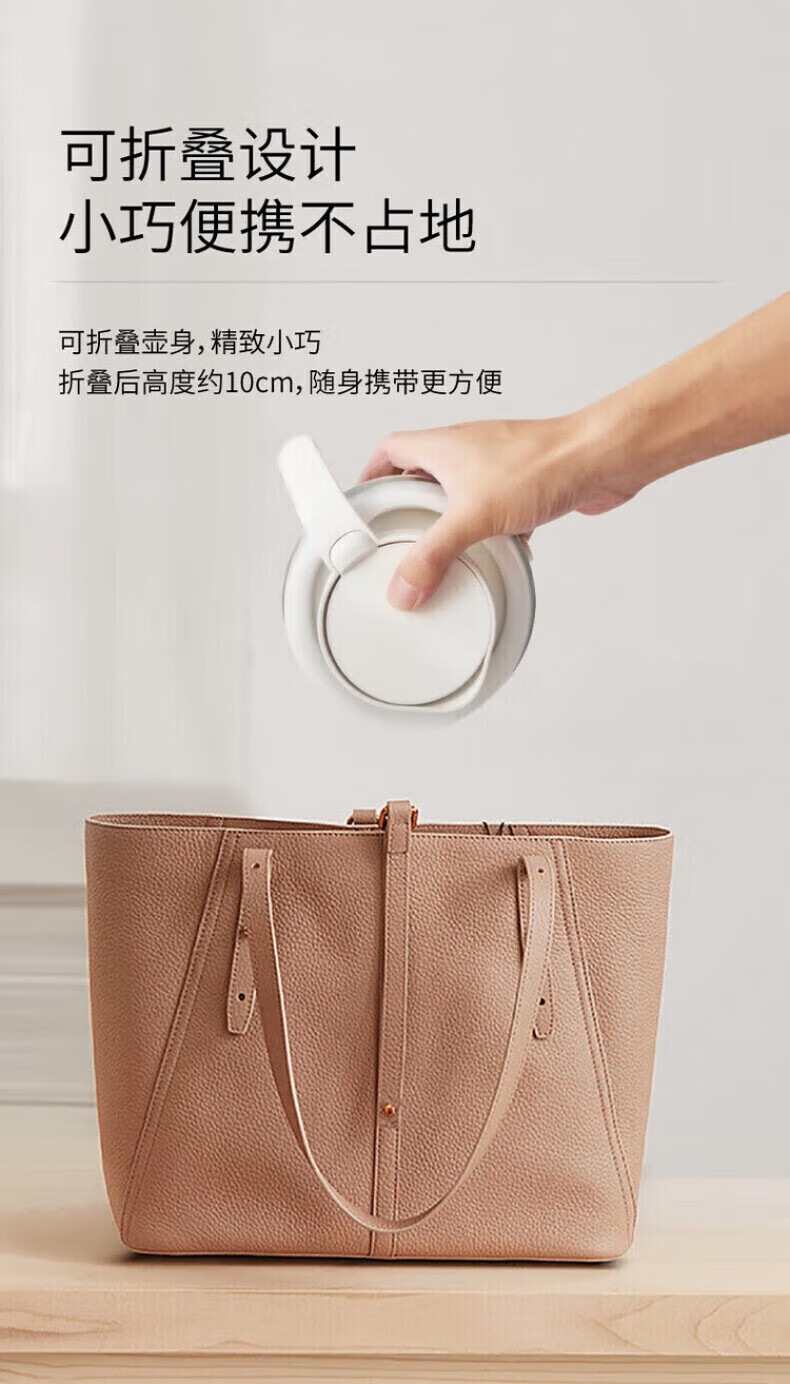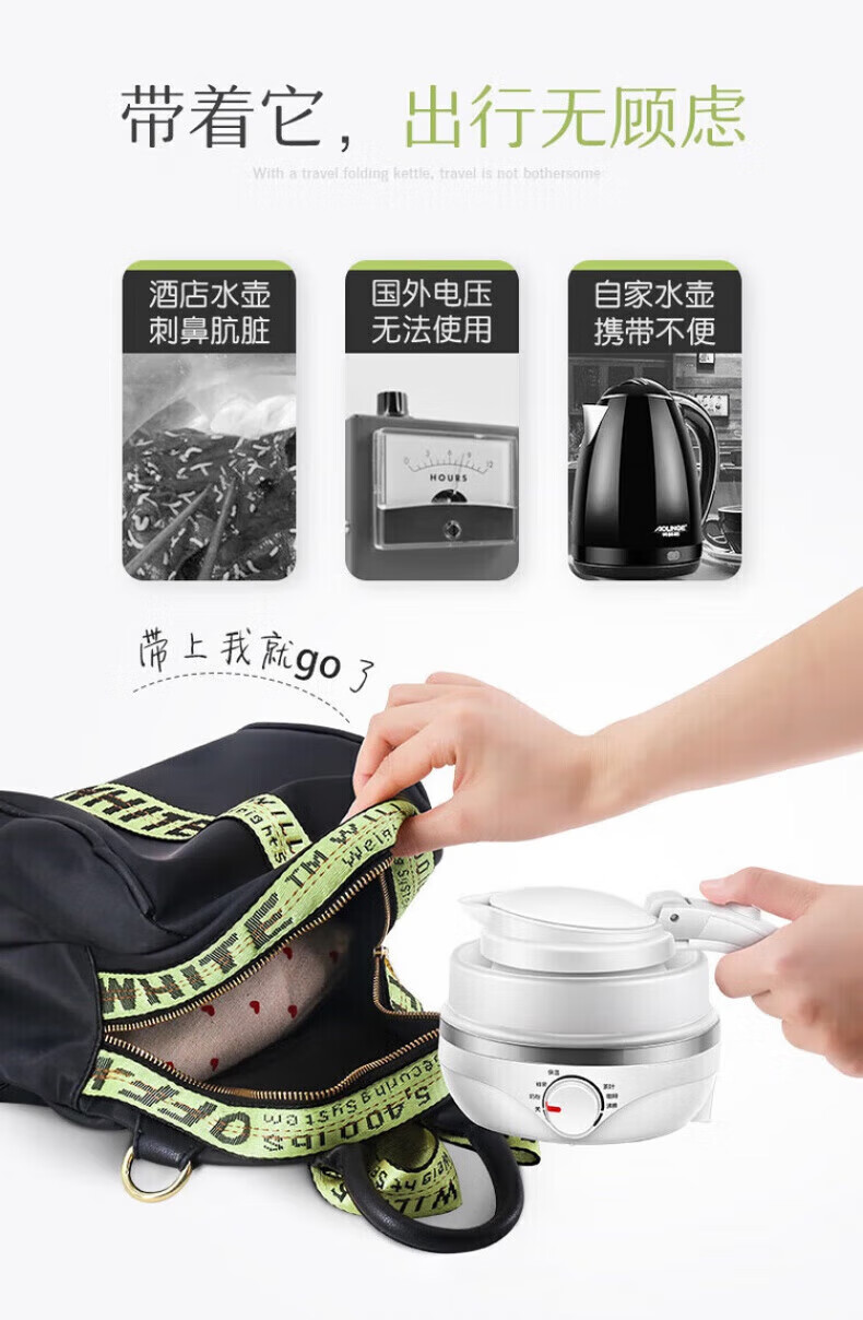 DEATKN德国便携式烧水壶电水壶折叠烧水壶旅行出差小型保温烧水壶宿 0.6L [开关款+折叠水杯]婴儿级
