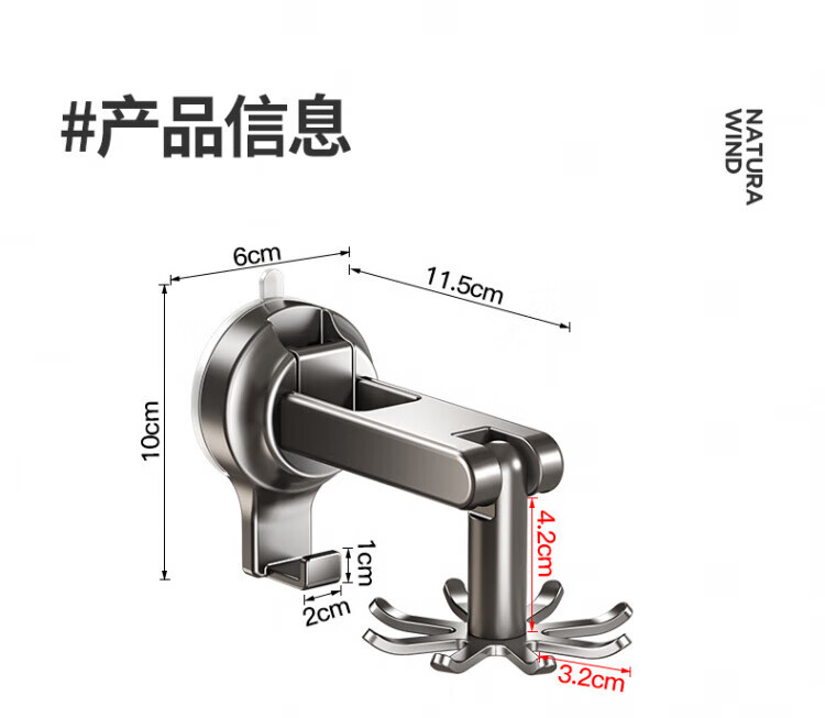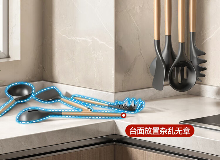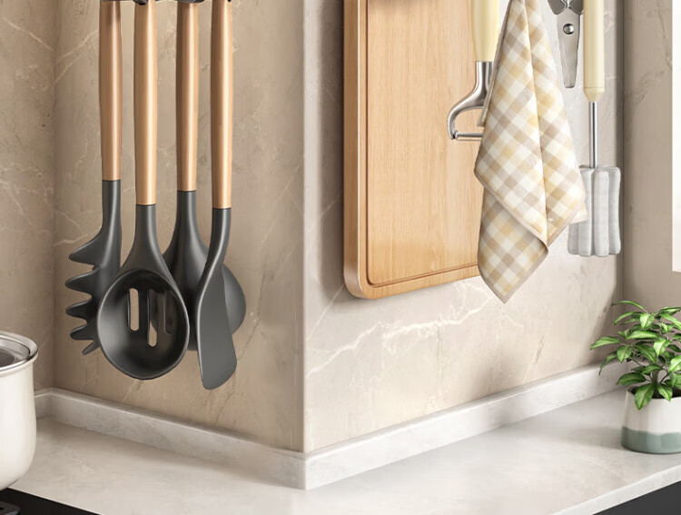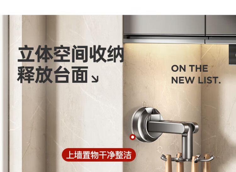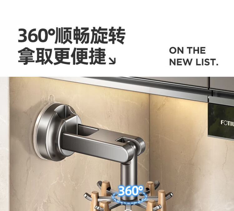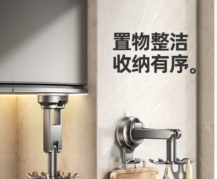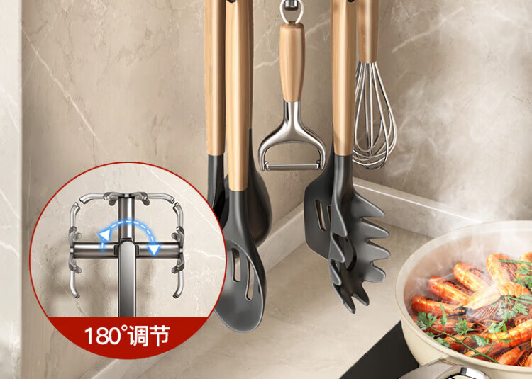 WCZ德国厨房旋转吸盘挂钩置物架锅铲勺子铲子挂架免打孔厨具收纳 标准款吸盘锅铲架8钩(顶挂/壁挂)