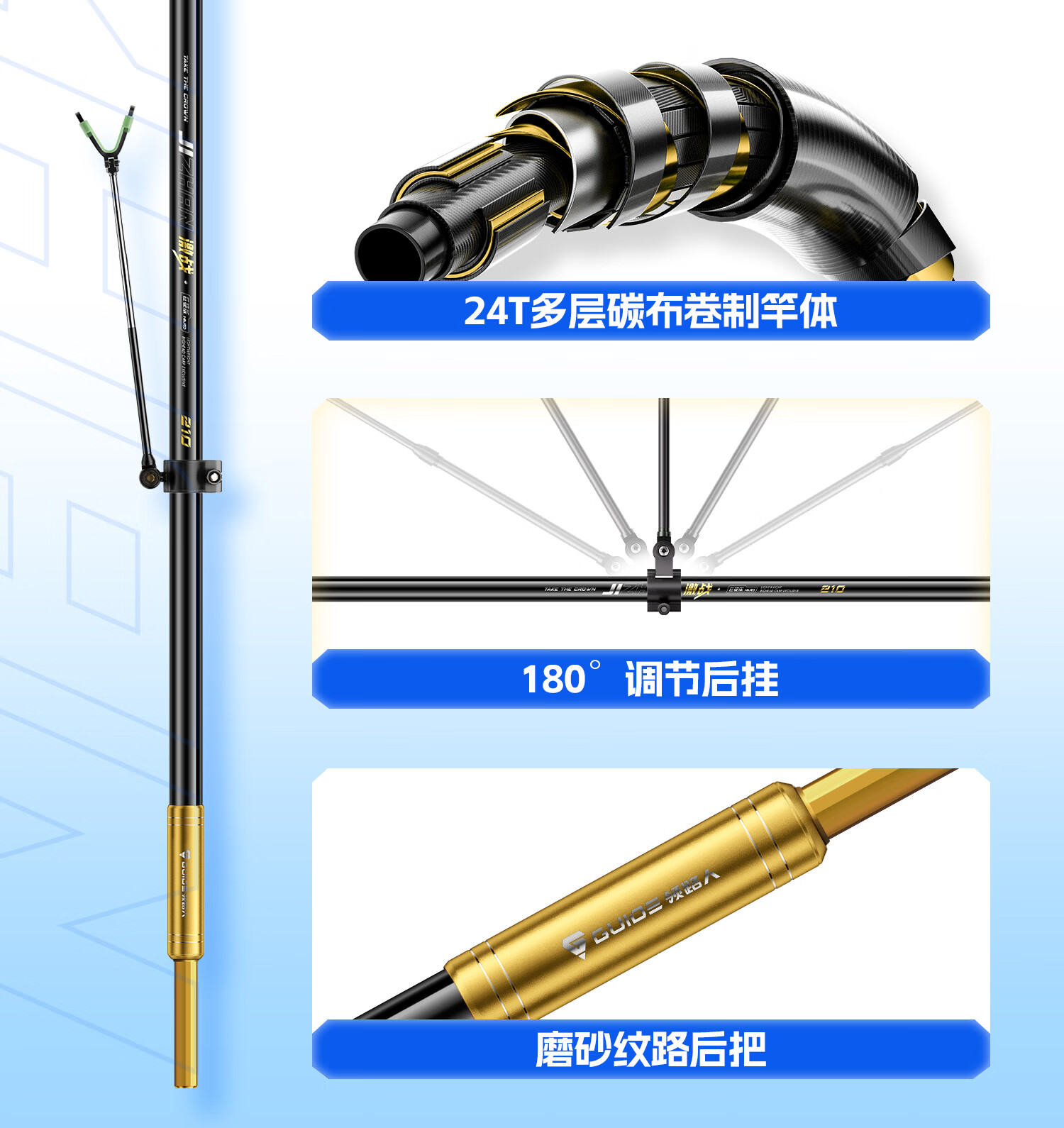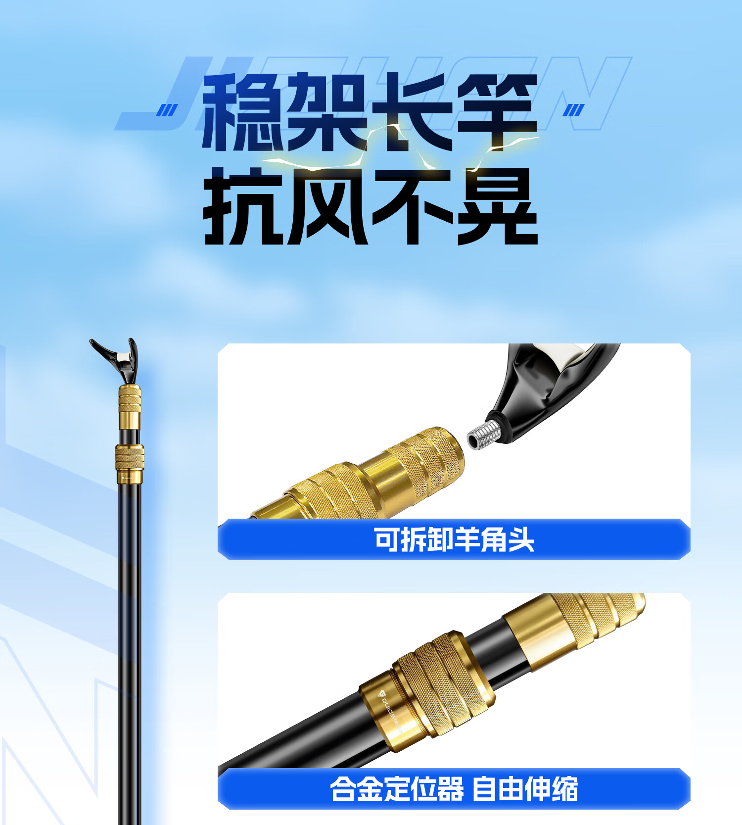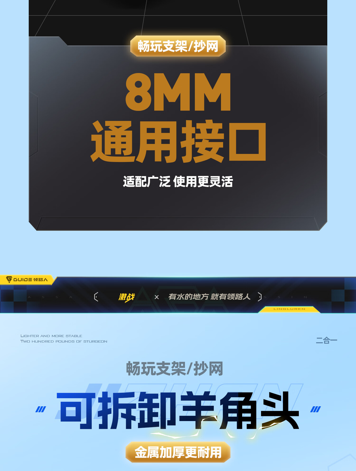 领路人激战超硬支架抄网套装轻硬大物多功能台钓架杆长杆碳素钓鱼竿支架 2.1m 超硬支架(含后挂+羊角头)
