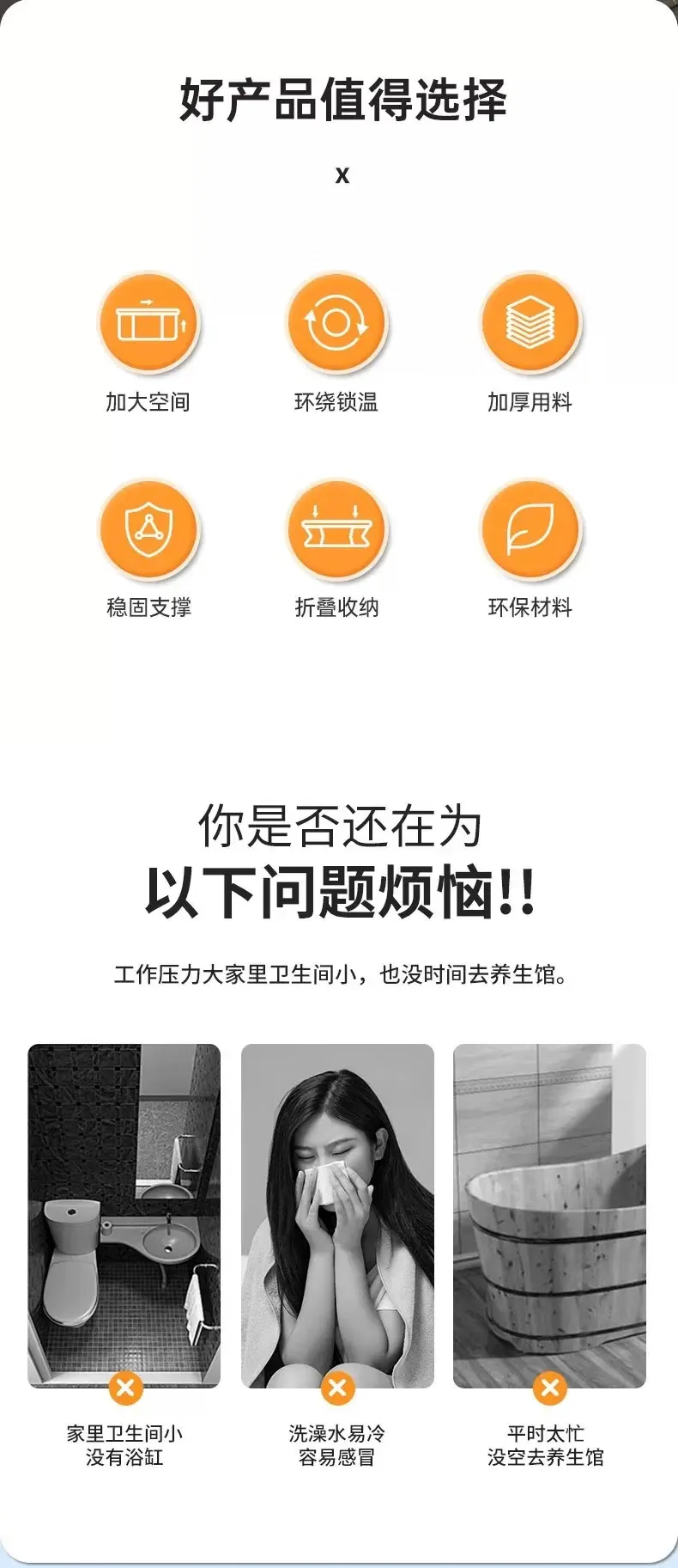 WCZ德国高端情侣双人浴桶大人折叠加热沐浴洗澡桶家用坐浴盆全身浴缸 团购1