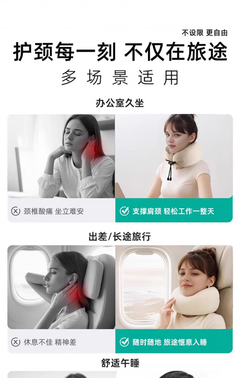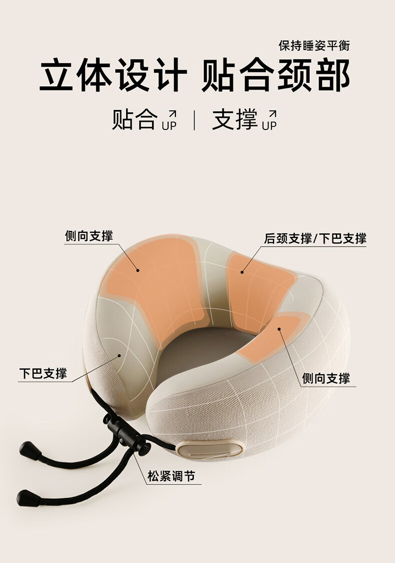 DEATKN德国u型枕旅行可携式飞机睡觉神器脖子靠枕颈椎护颈枕脖枕u形枕头 象牙白【差旅舒适有支撑/德国品牌】