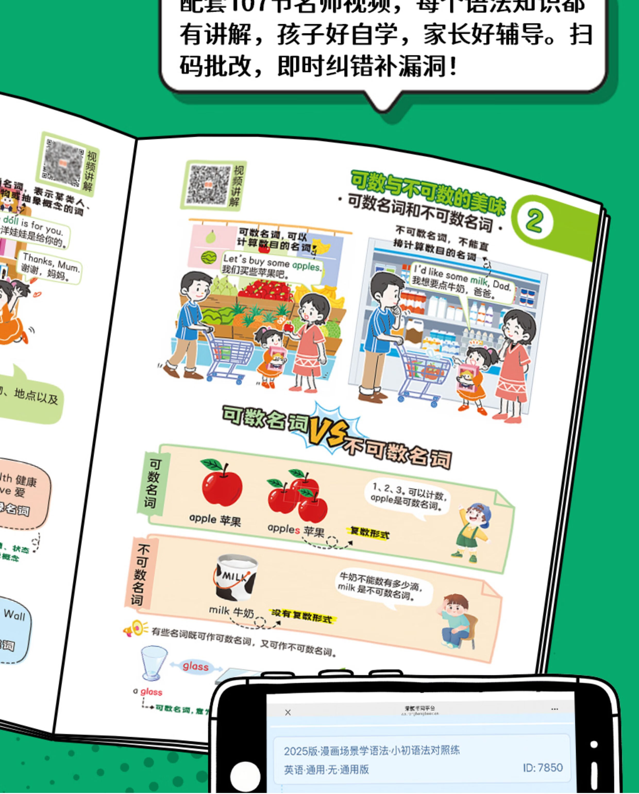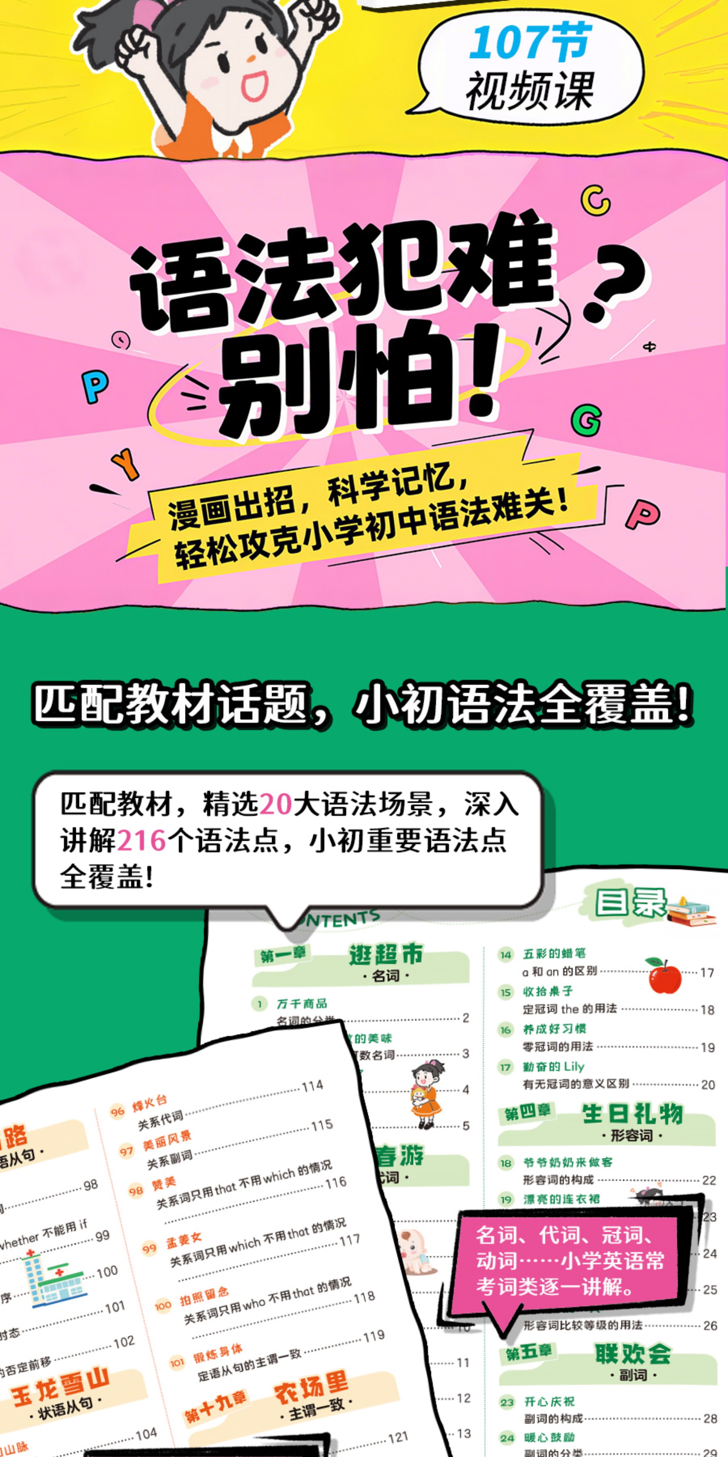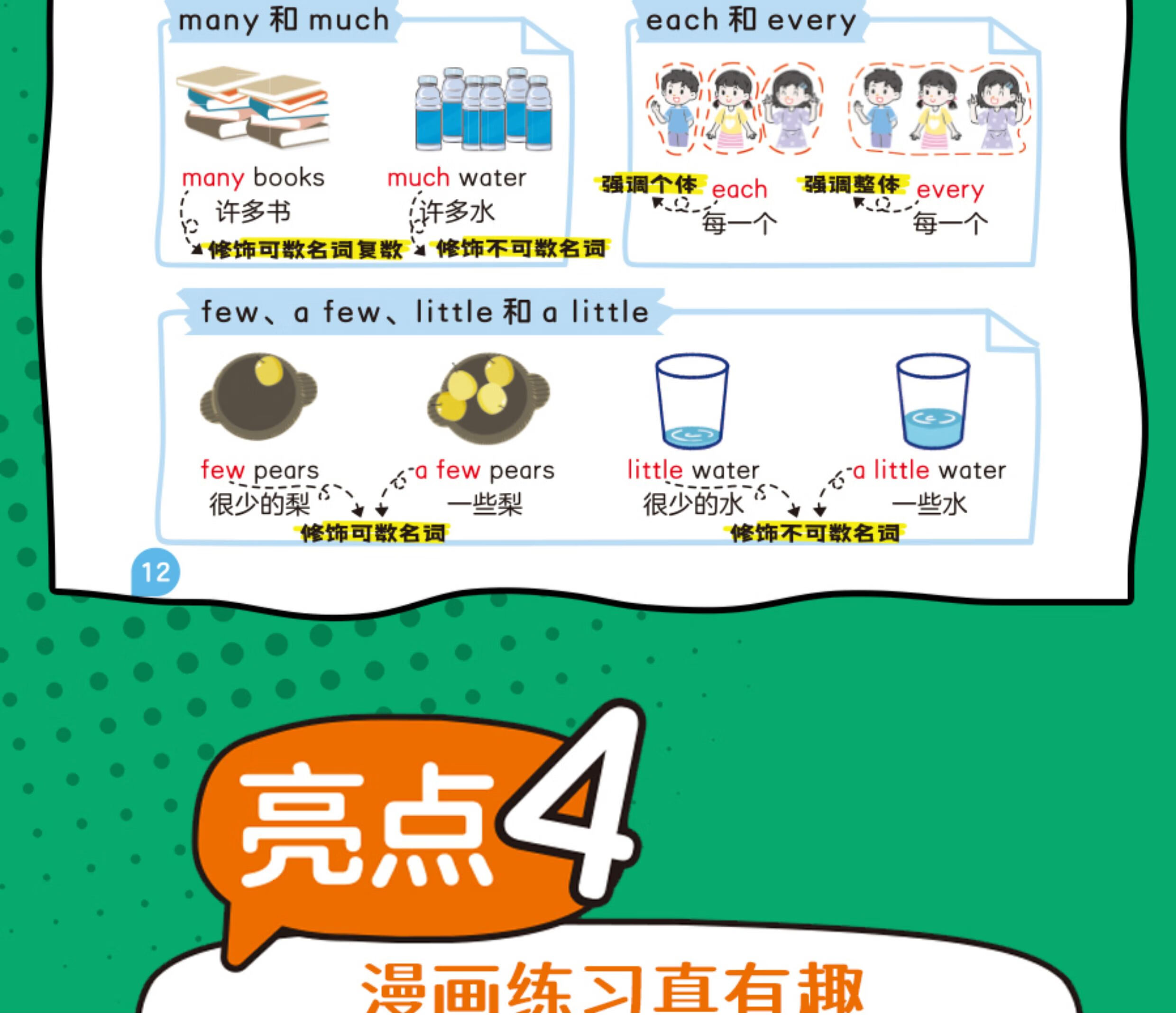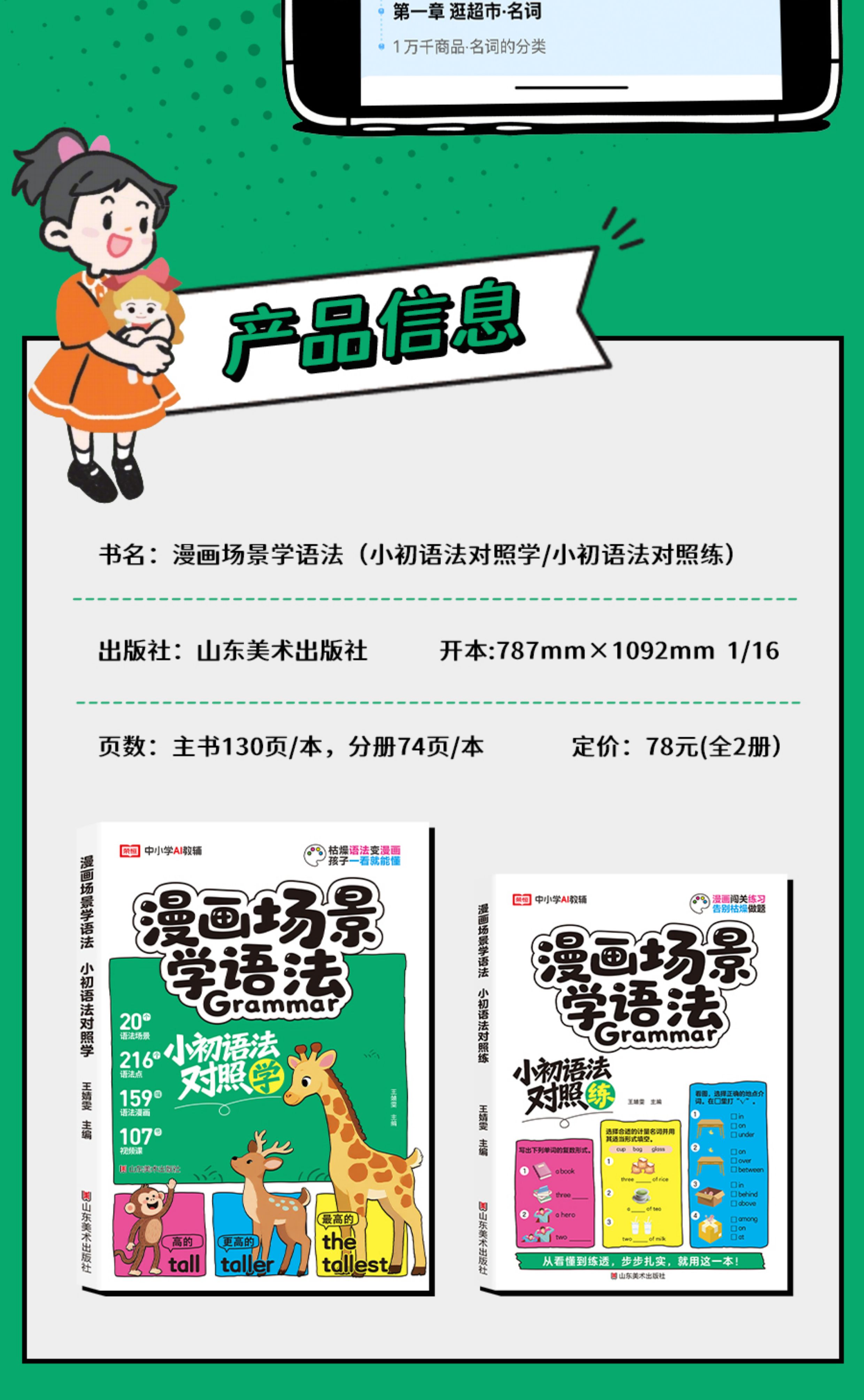 荣恒【 漫画场景学语法】小初语法对照学练零基础学语法口诀小学初中英语三四五六七八年级音标词汇句型知识点大全一本通训练书 推荐2册【漫画场景学语法】对照学+练