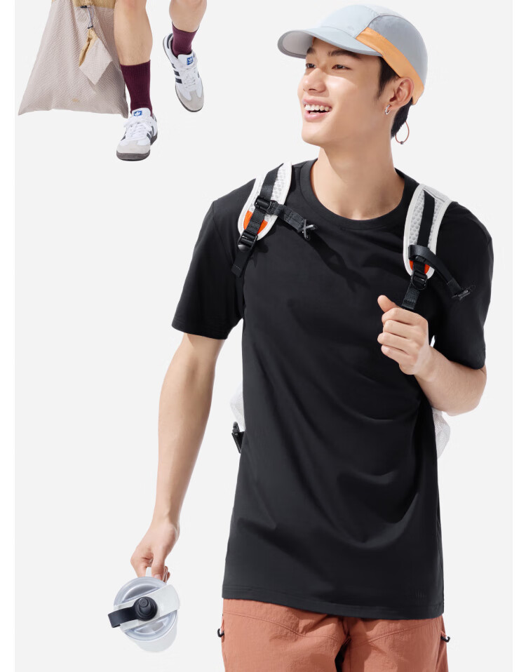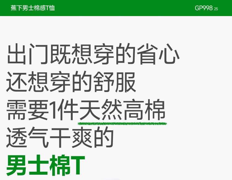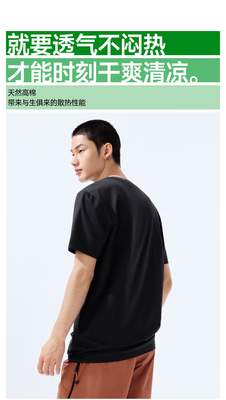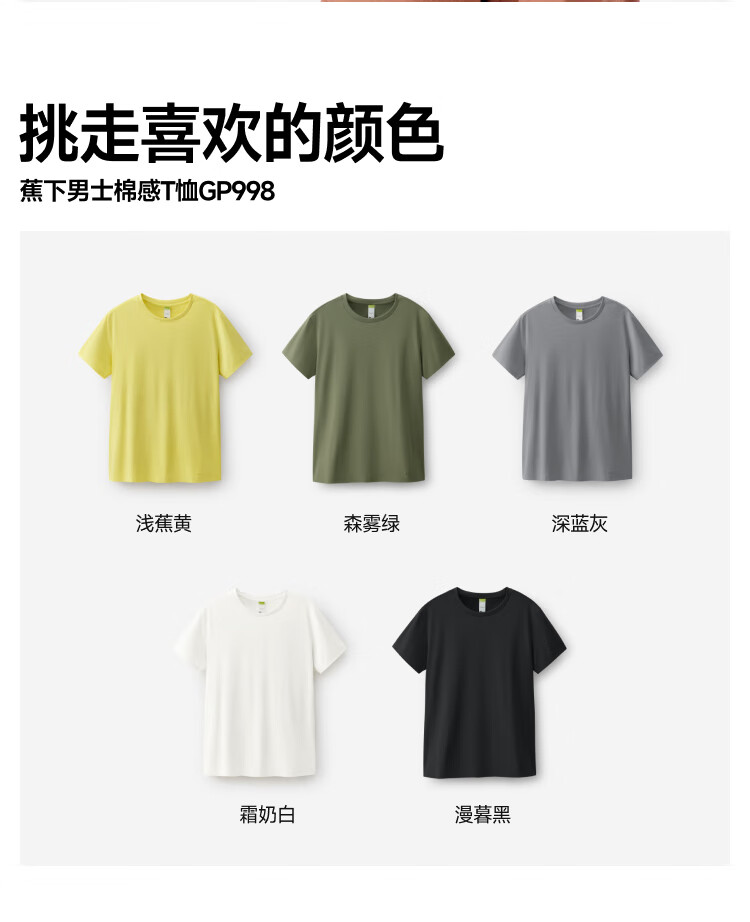 蕉下(beneunder)短袖T恤男士棉感宽松休闲透气耐洗夏季男装GP998森雾绿XL