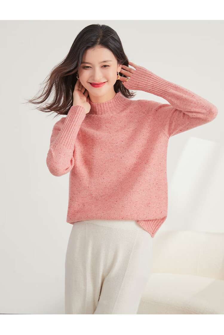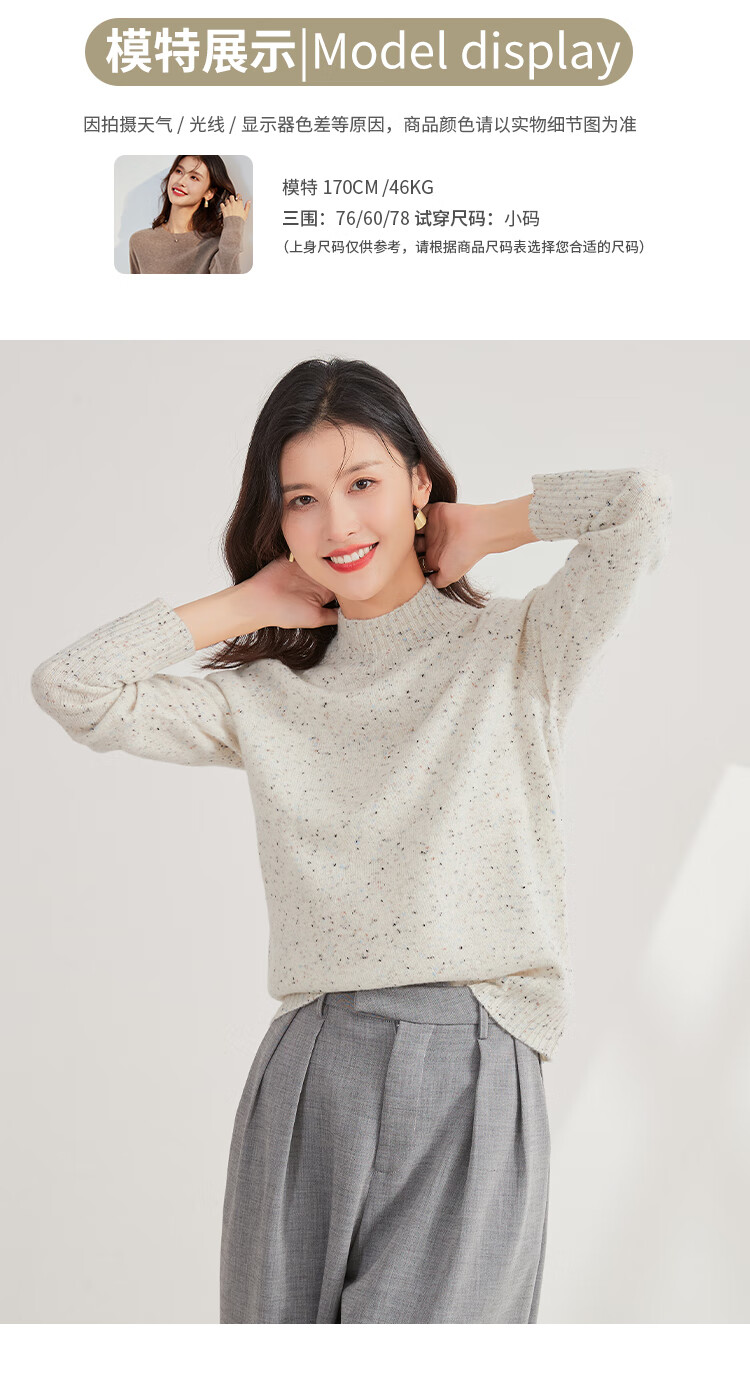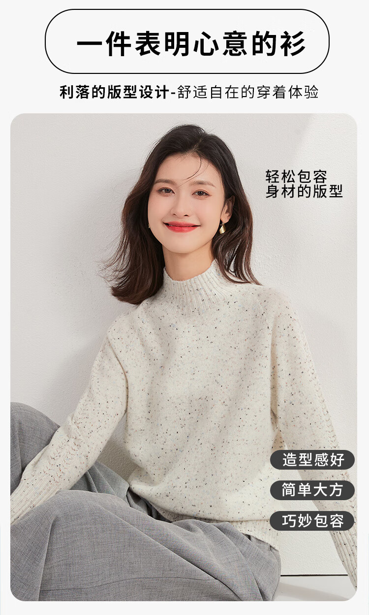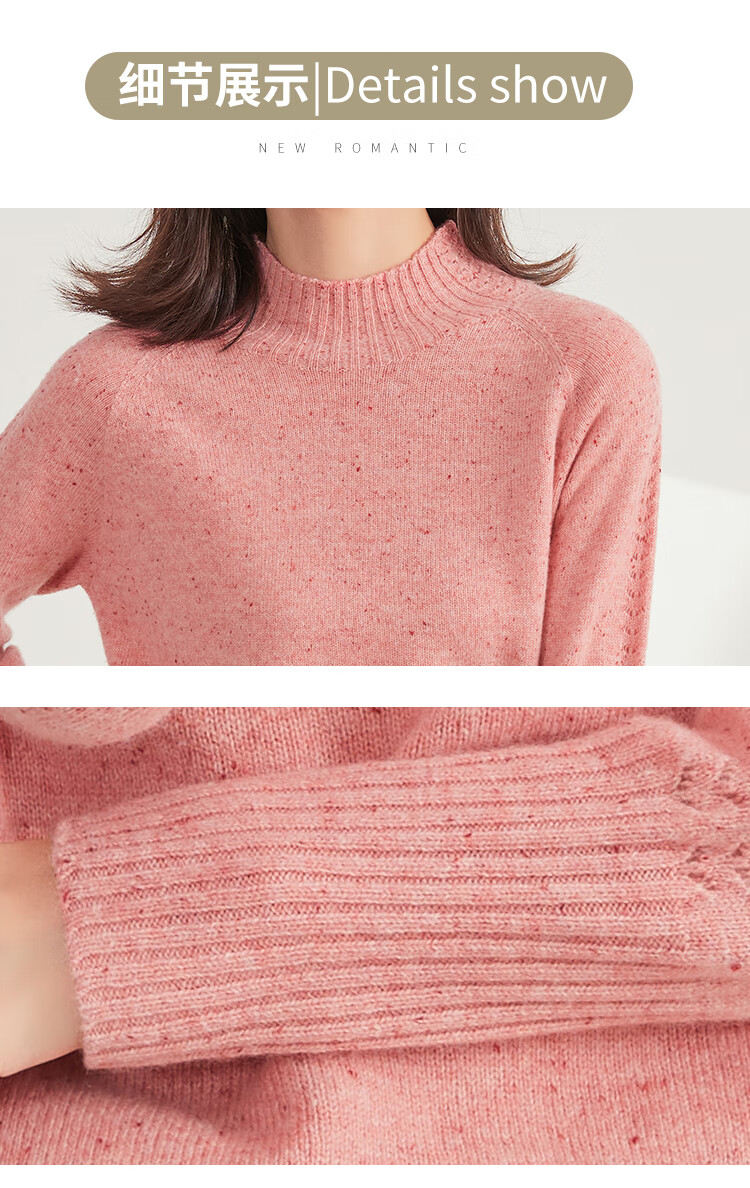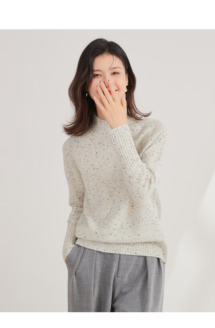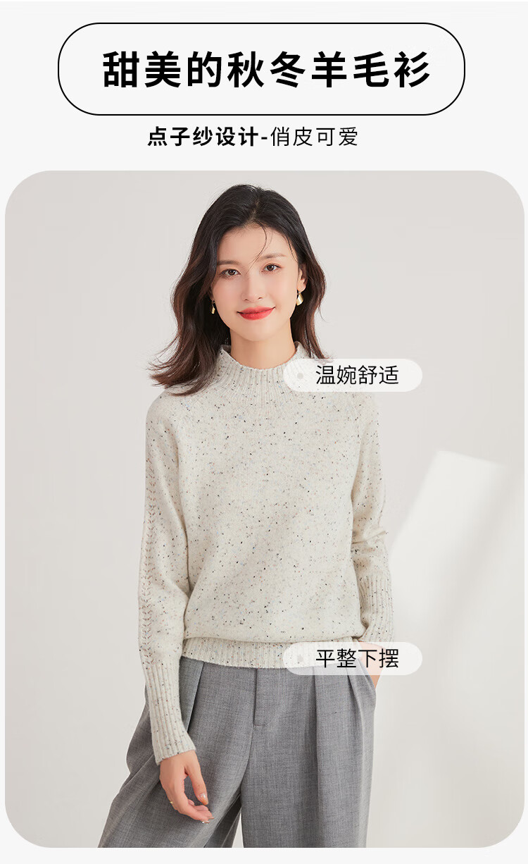 金菊秋冬厚款羊毛衫点子纱打底无缝百搭半高领插肩袖女式毛衣 盐白XL