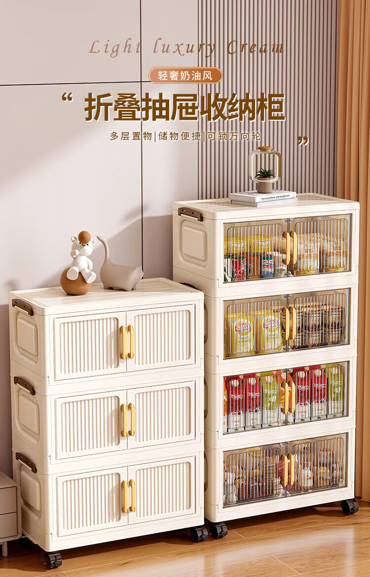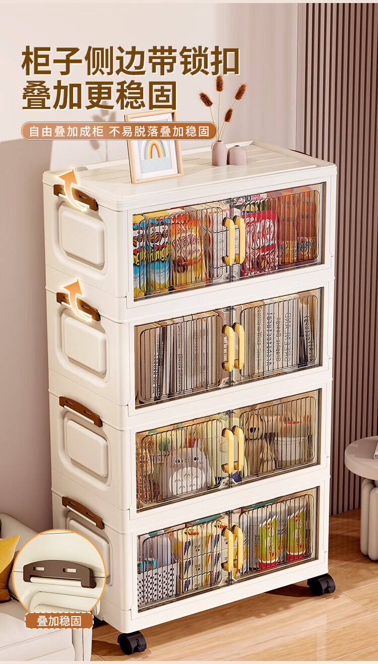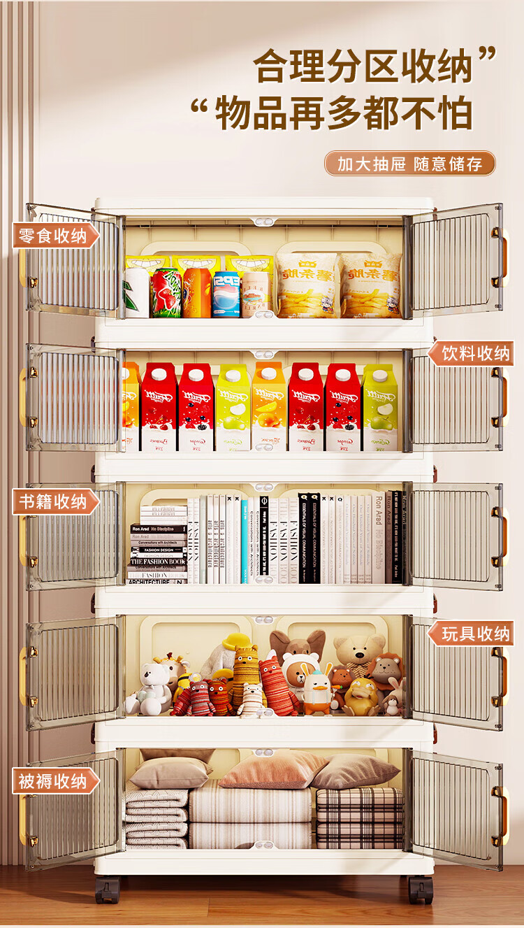 纳份爱简约收纳柜加厚塑料玩具零食储物柜客厅卧室厨房移动整理柜飘窗箱 48面宽【条纹茶透】 5层 【99.99%超值店长推荐】