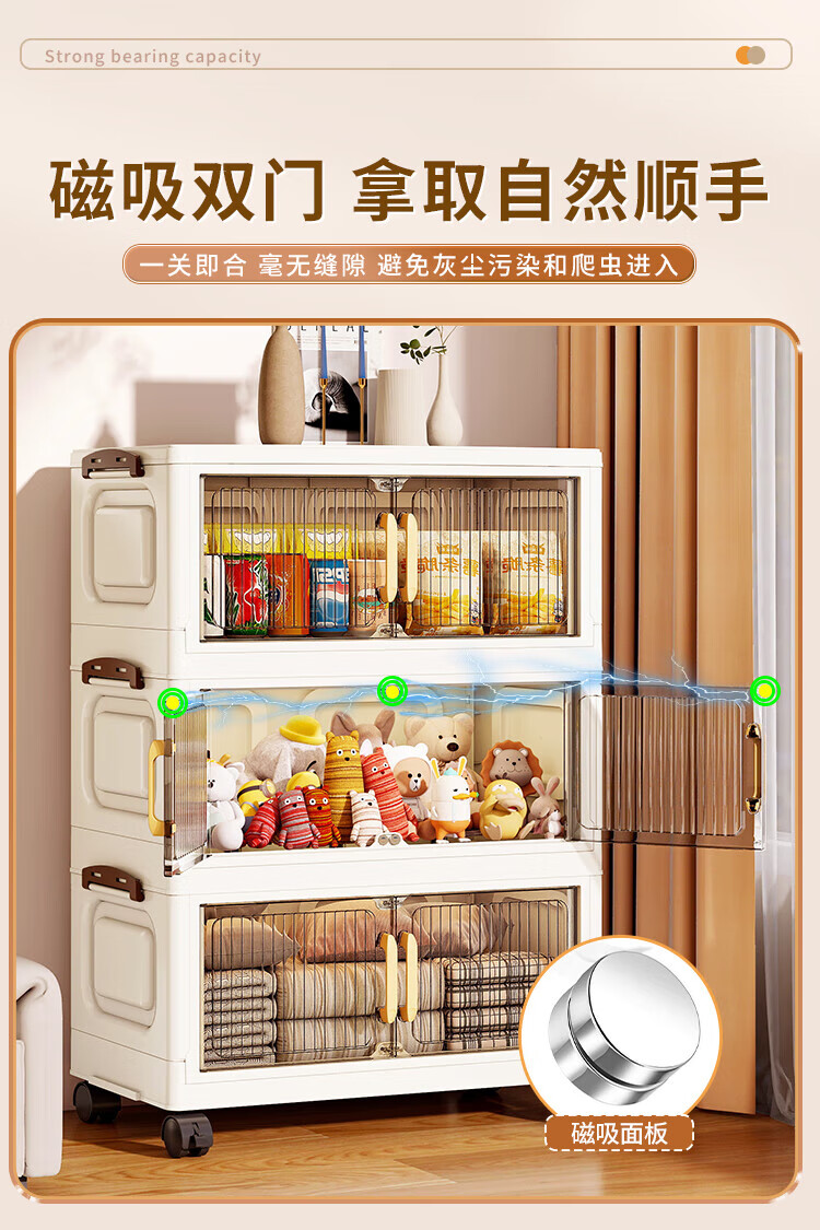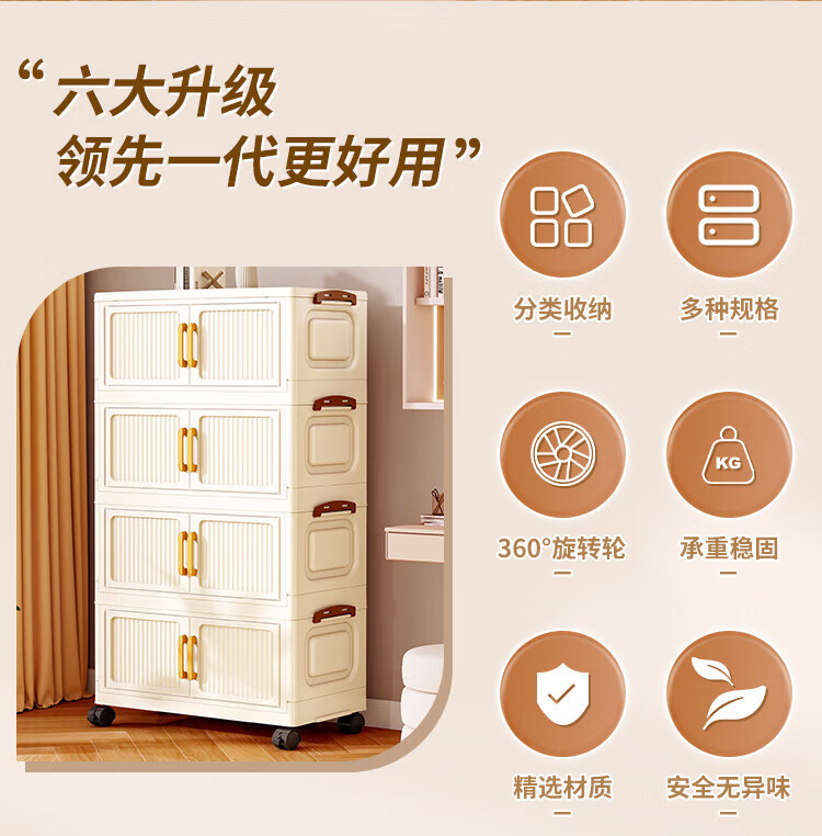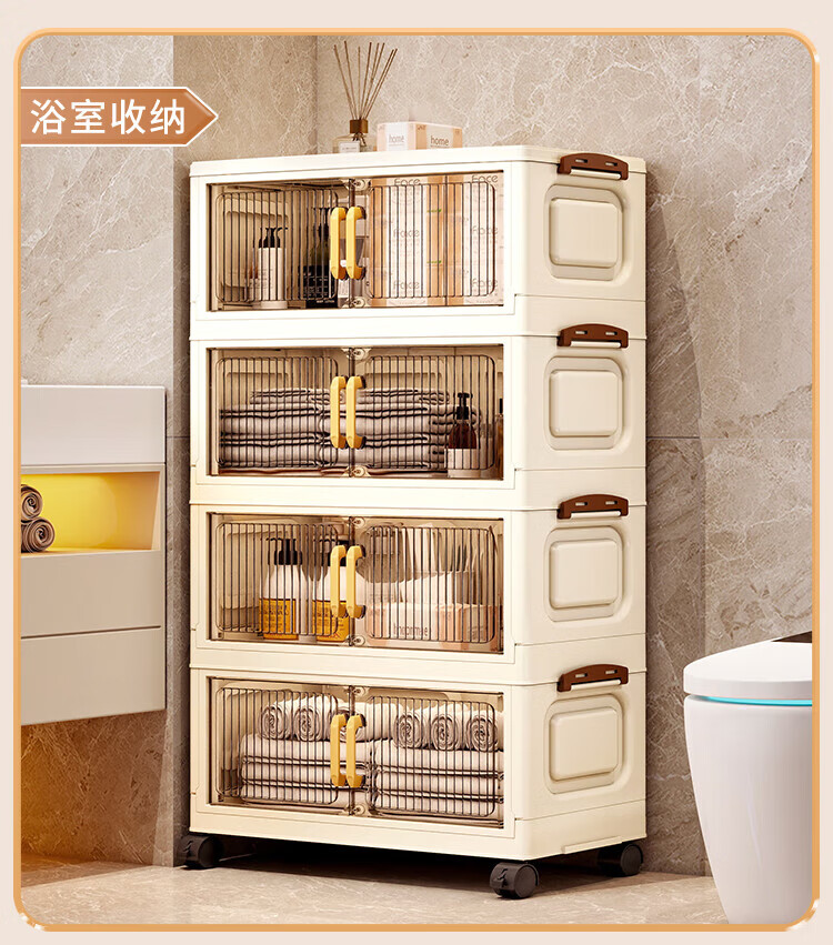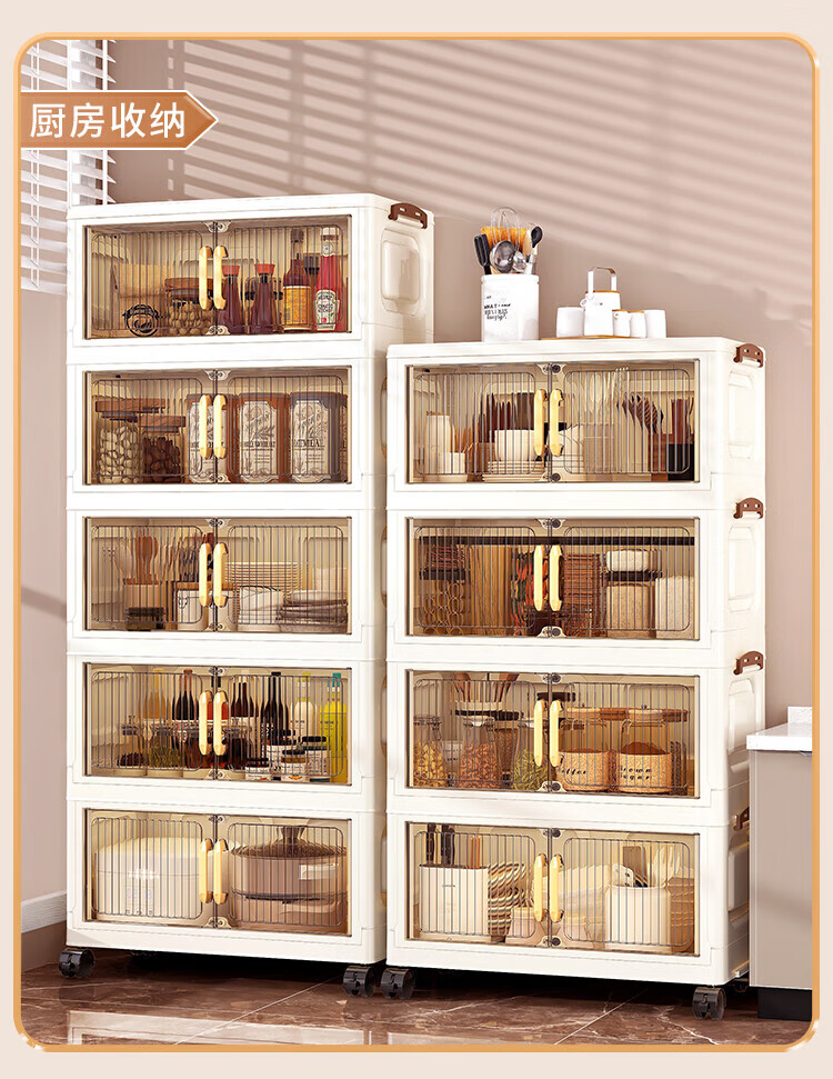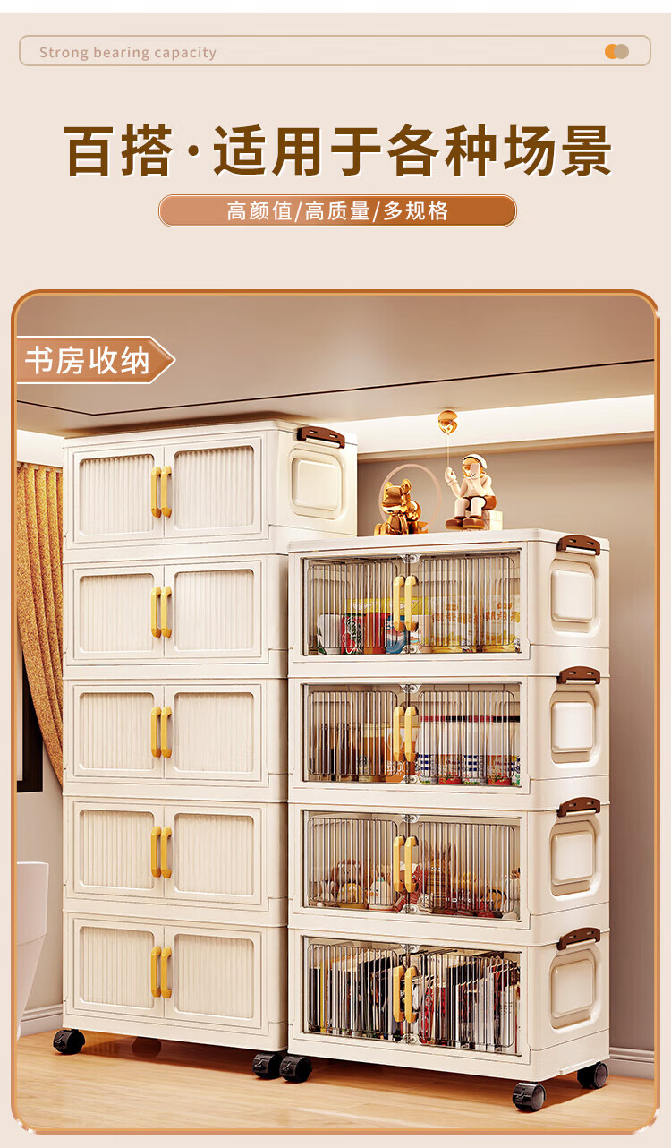 纳份爱简约收纳柜加厚塑料玩具零食储物柜客厅卧室厨房移动整理柜飘窗箱 48面宽【条纹茶透】 5层 【99.99%超值店长推荐】