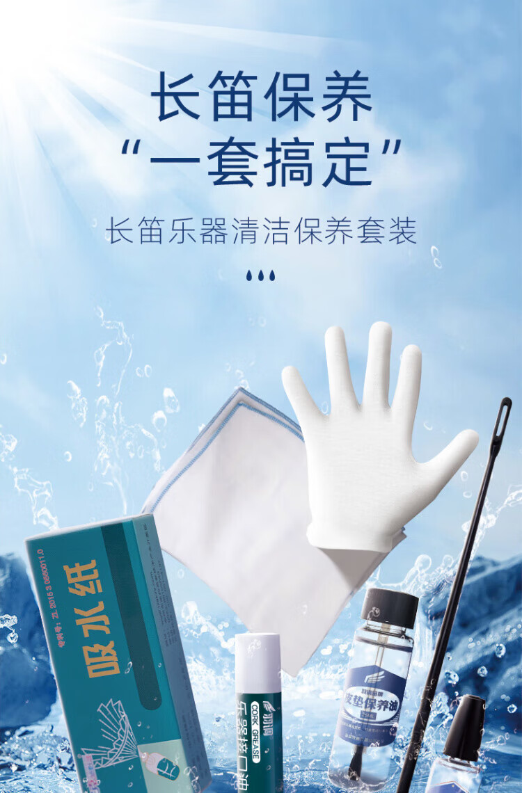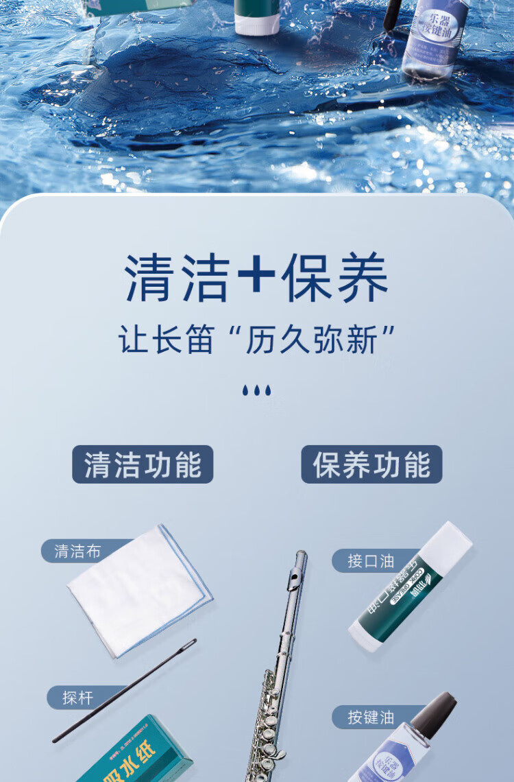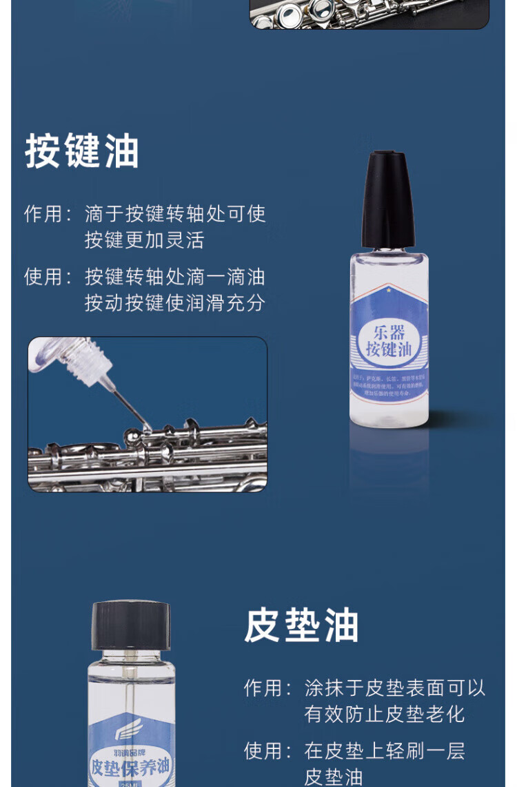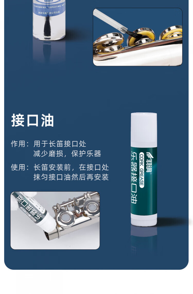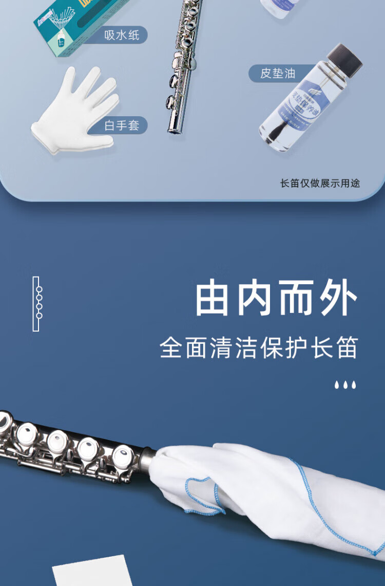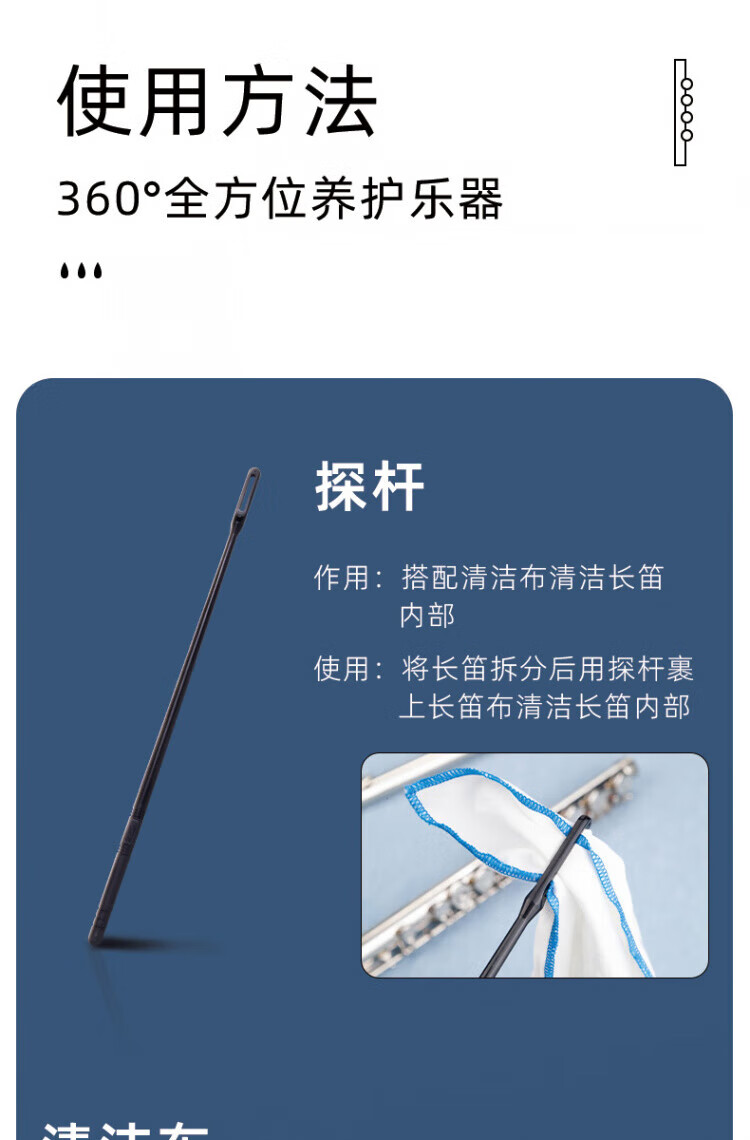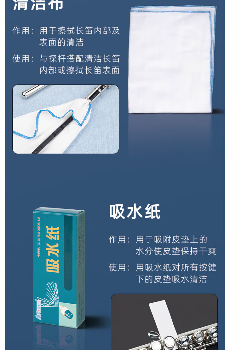 DEATKN德国长笛探杆擦拭布清洁吸水内膛口水按键润滑油皮垫护理清洁擦银 长笛清洁保养套装