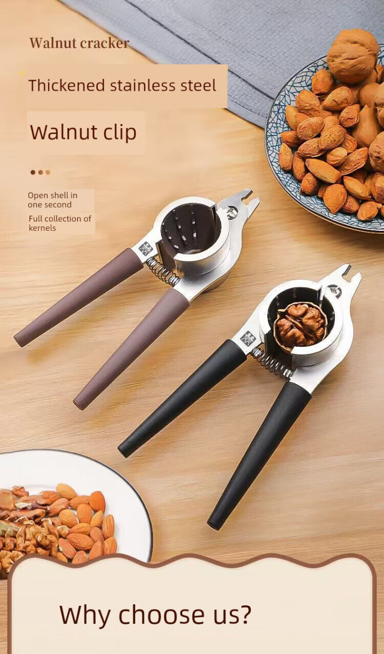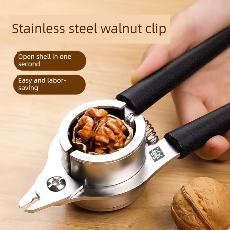 DEATKN德国胡桃夹工艺品家用多功能胡桃夹不锈钢去壳机山核桃去壳机 黑柄304核桃夹2个
