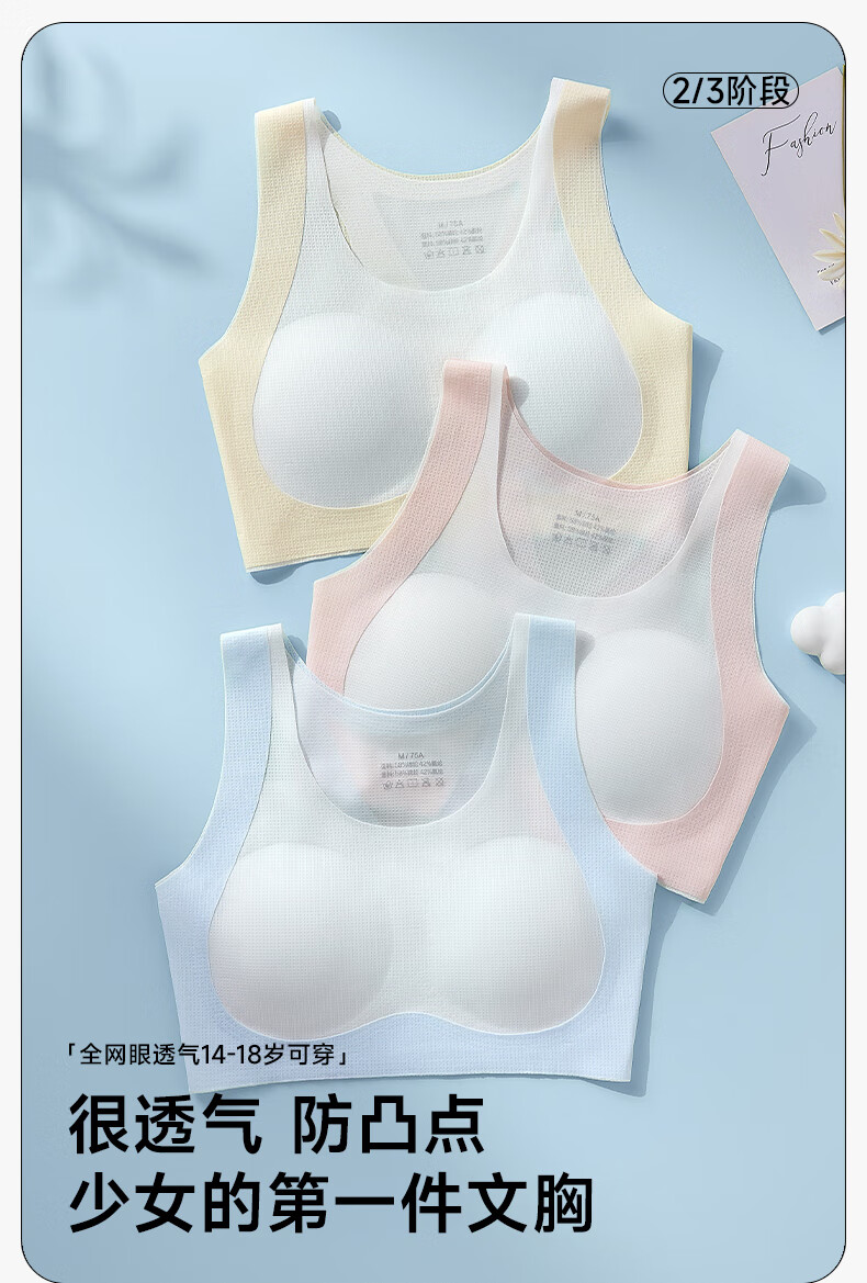 草本初色内衣女少女文胸发育期中大童初高中学生小背心一阶段无痕运动胸罩