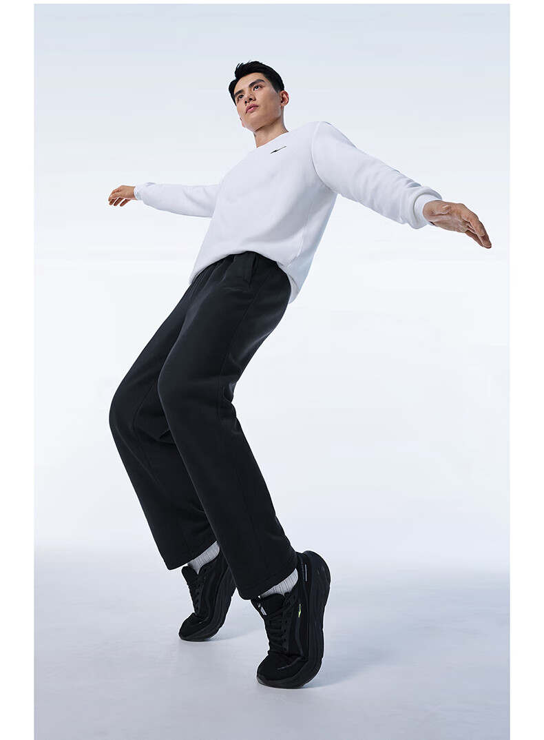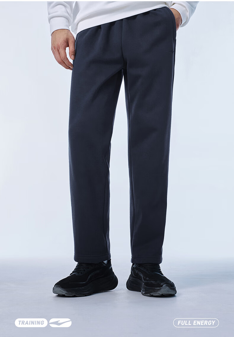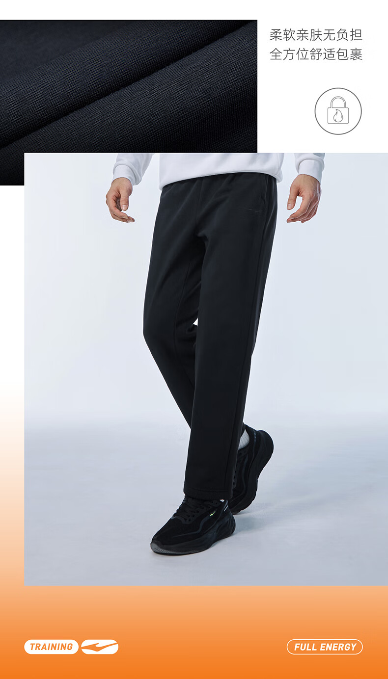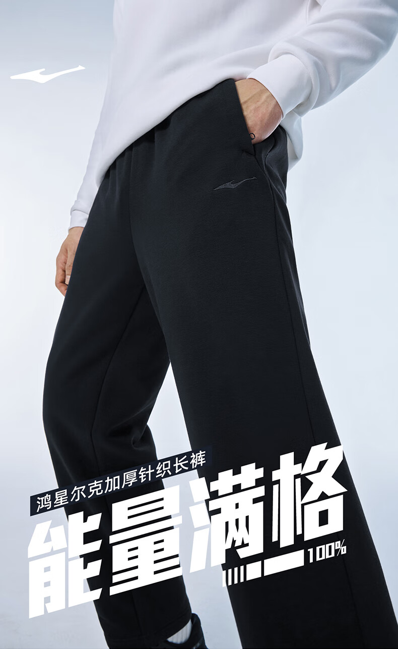 鸿星尔克运动裤男针织长裤秋季新品舒适透气舒暖绒加厚直筒休闲裤子男裤