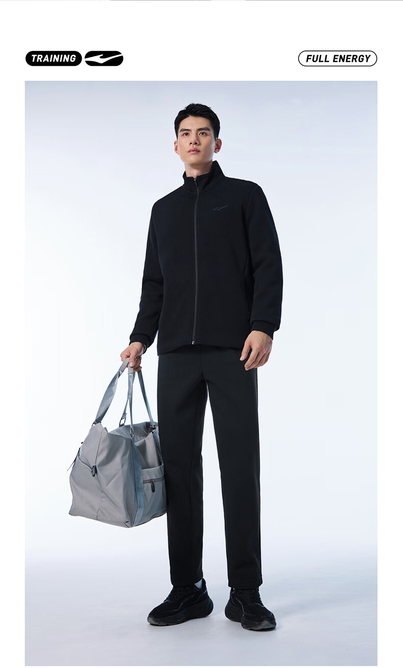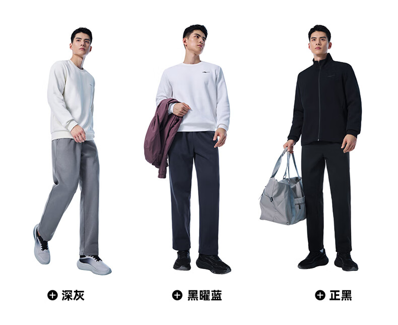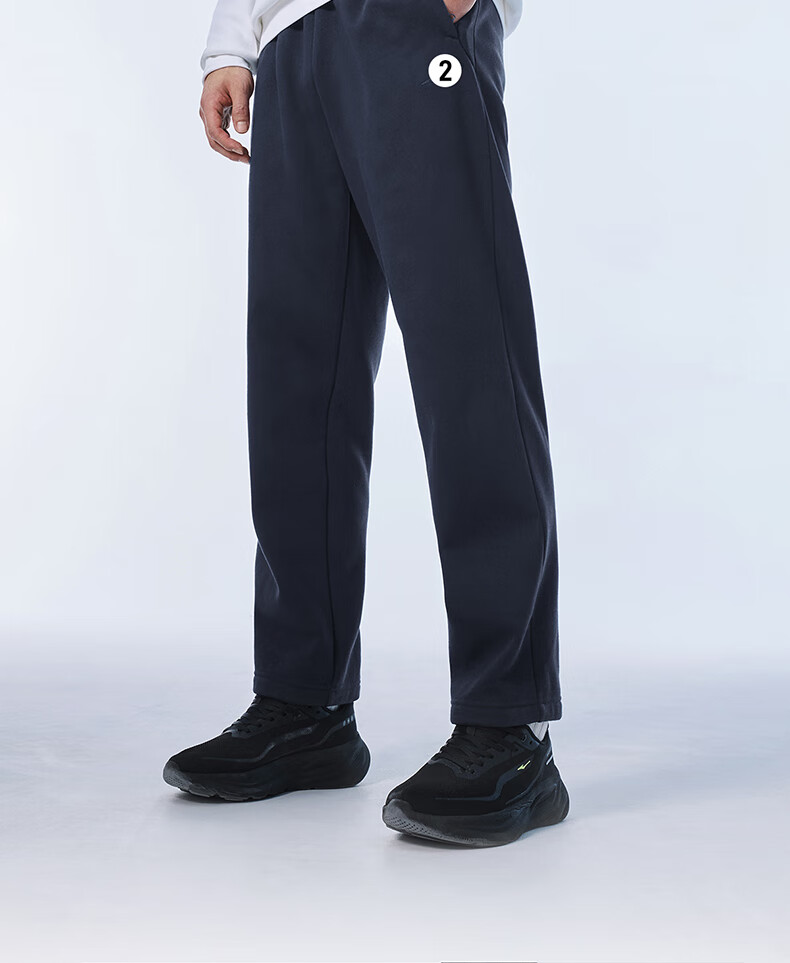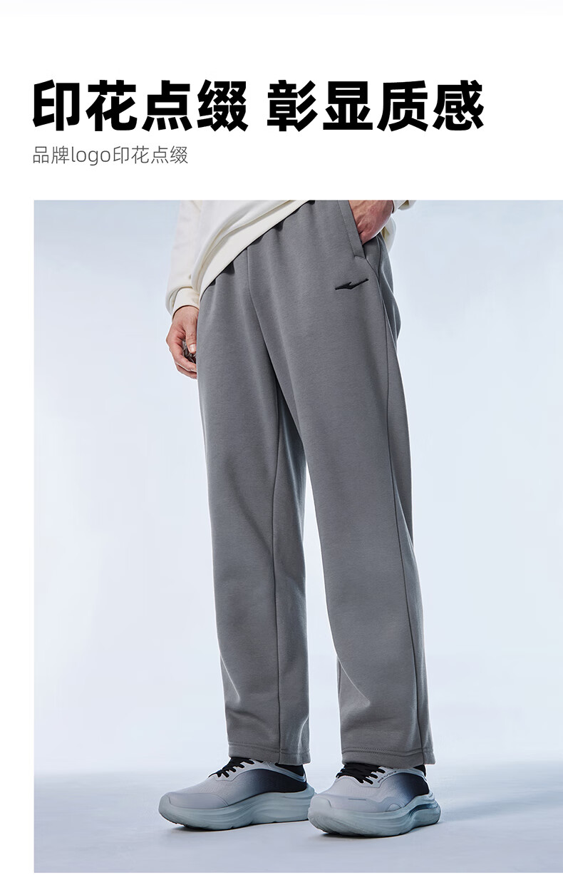 鸿星尔克运动裤男针织长裤秋季新品舒适透气舒暖绒加厚直筒休闲裤子男裤