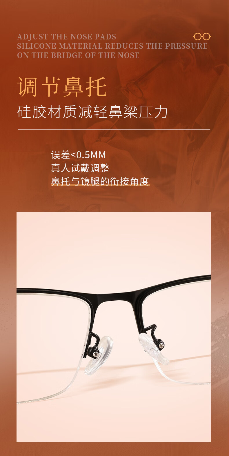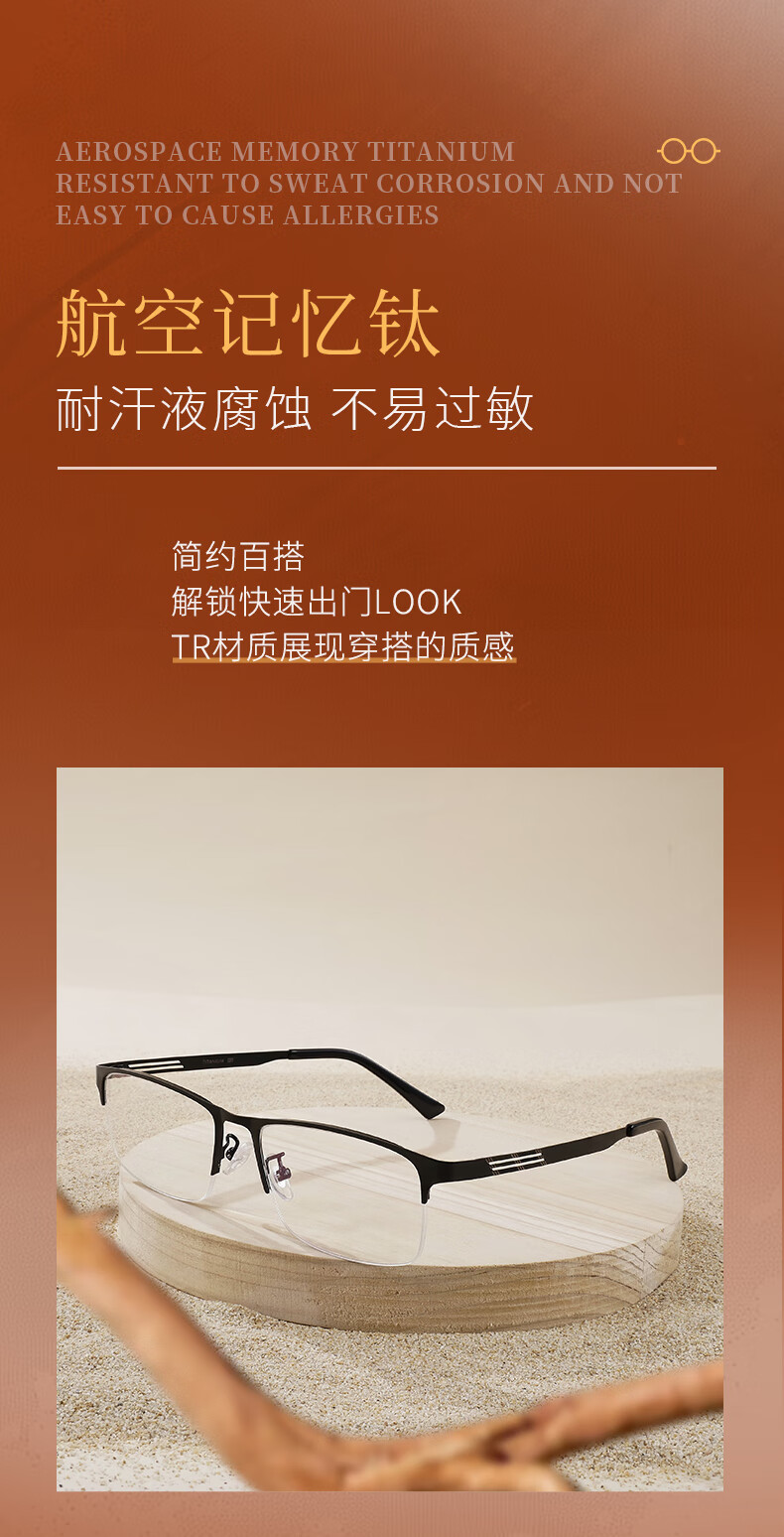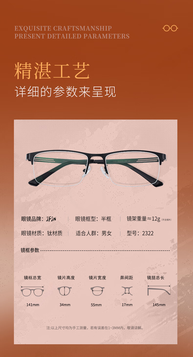 JFJN近视眼镜男款半框商务眼镜框钛材质防蓝光眼镜专业可配度数2322