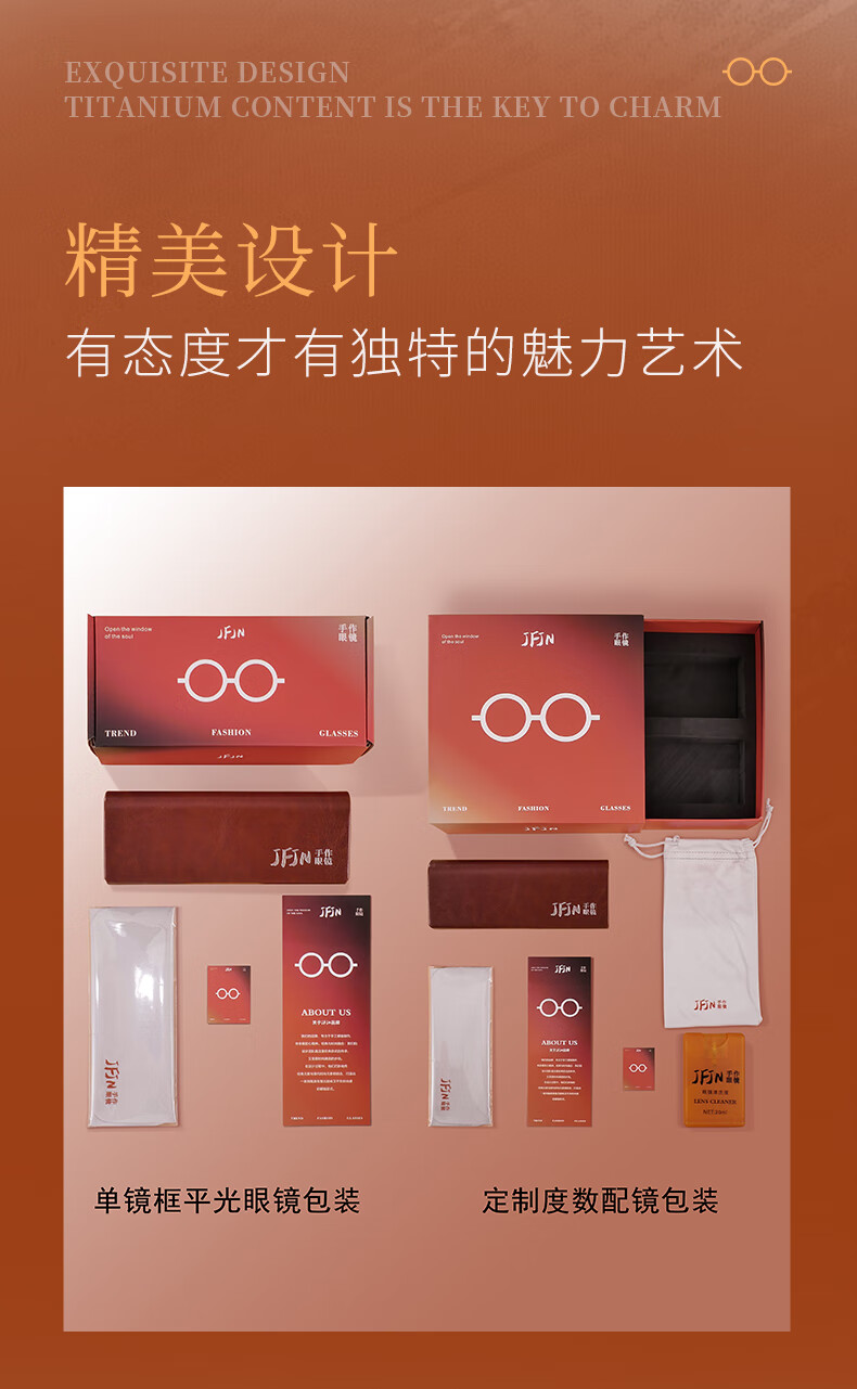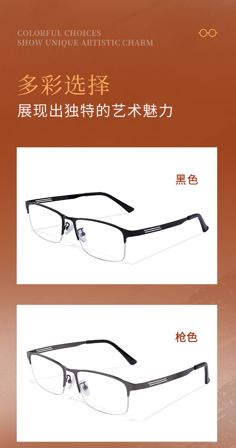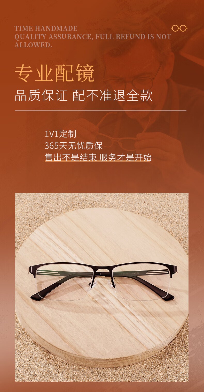JFJN近视眼镜男款半框商务眼镜框钛材质防蓝光眼镜专业可配度数2322