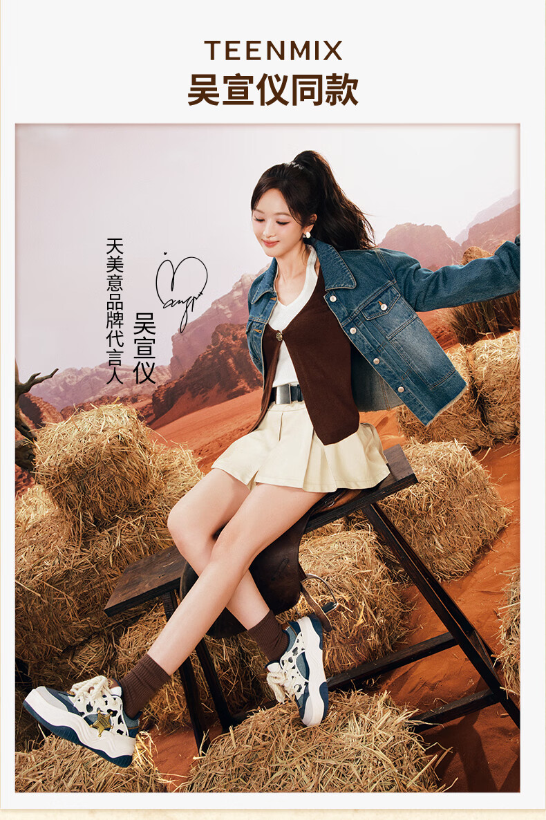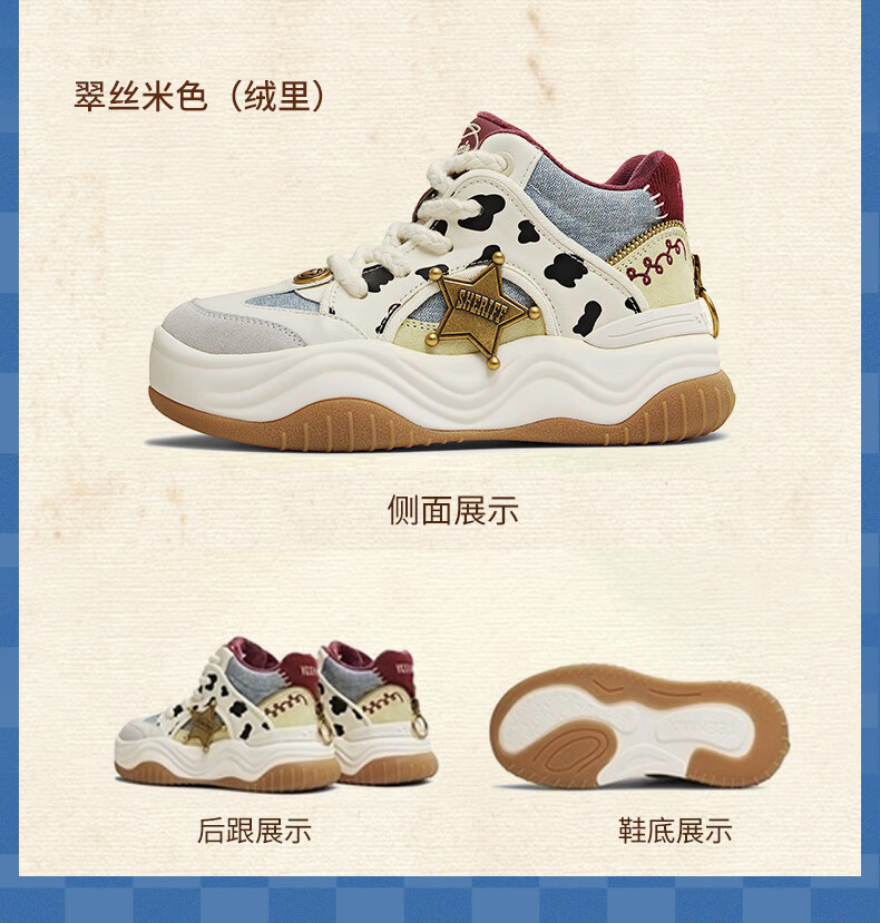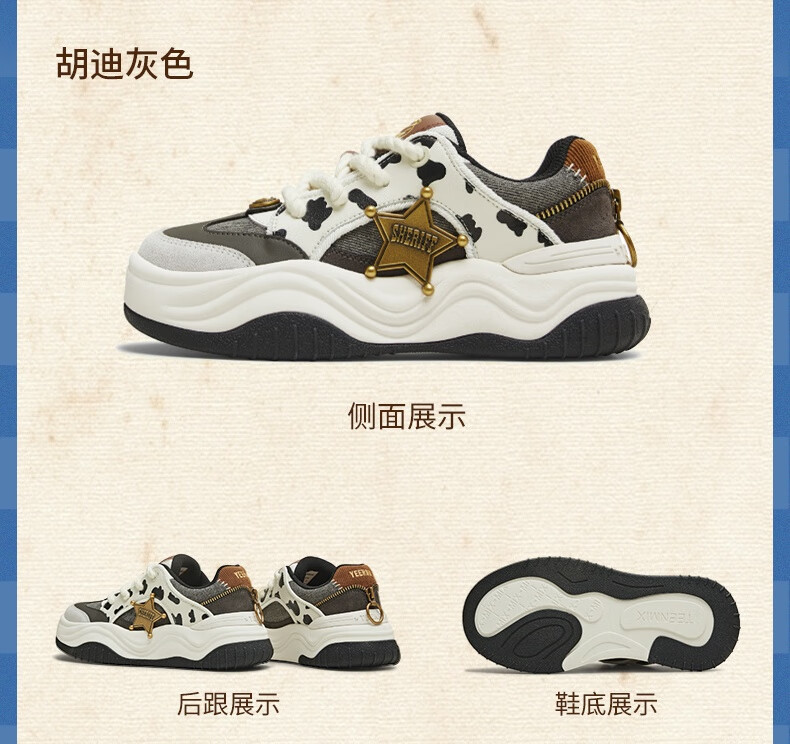 天美意吴宣仪/黄子弘凡玩具总动员联名手作德训鞋男女秋增高运动板鞋 翠丝米色【女款】 36