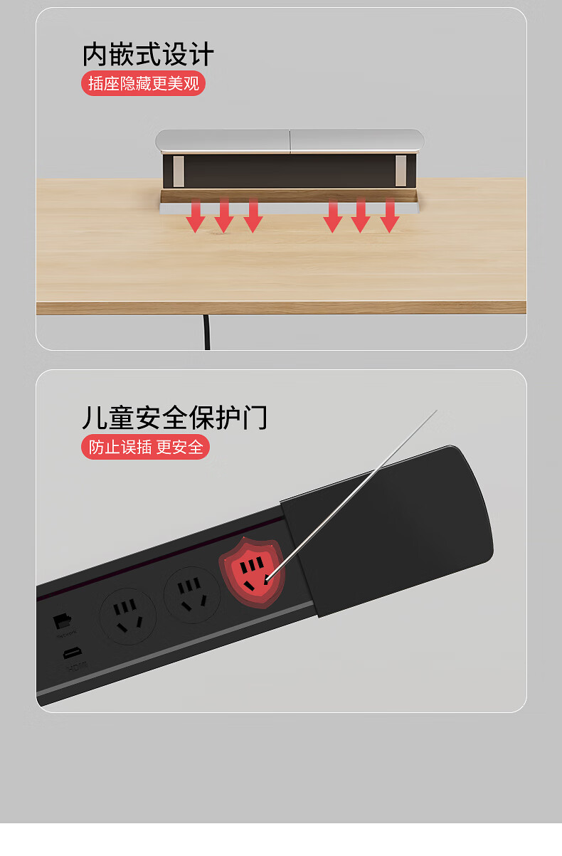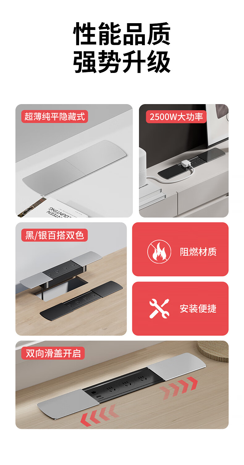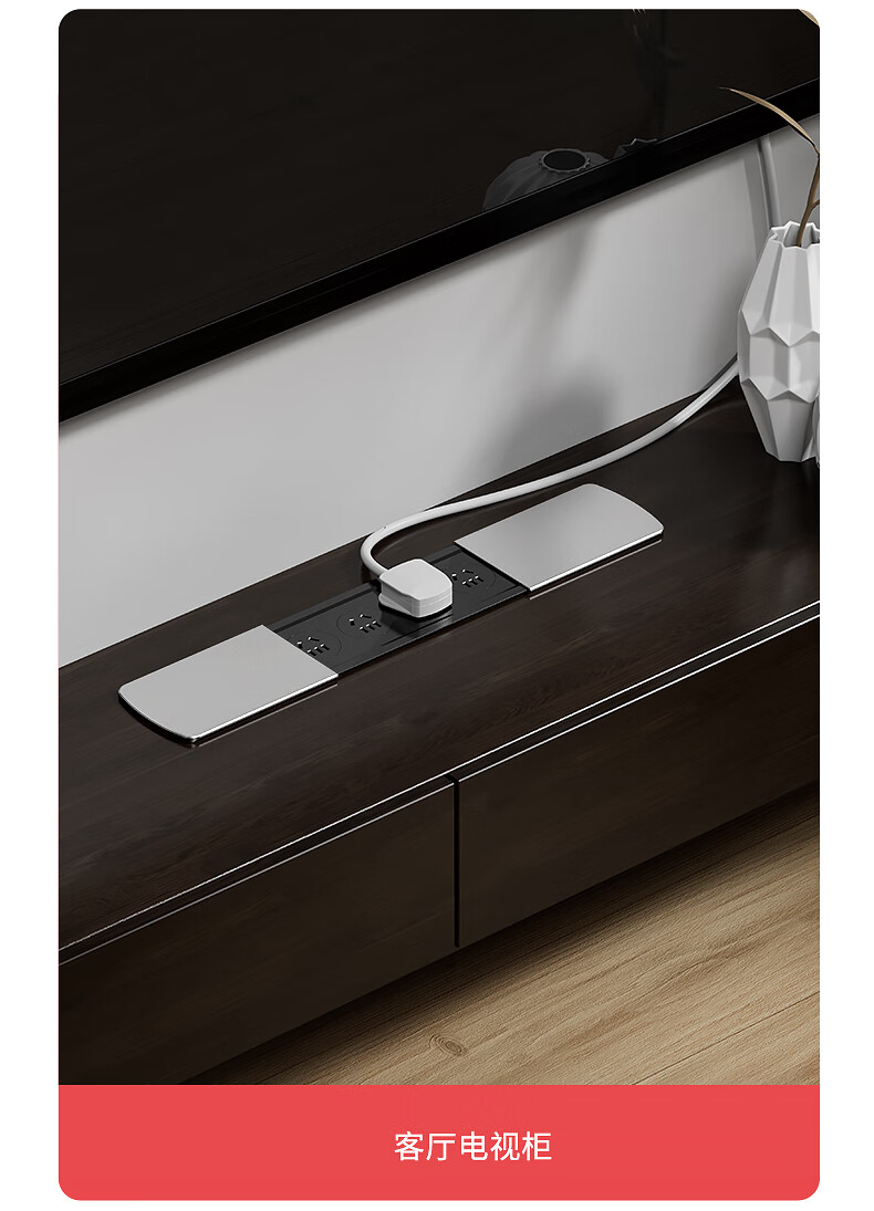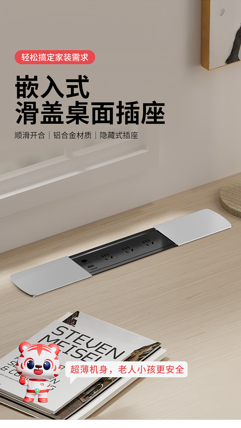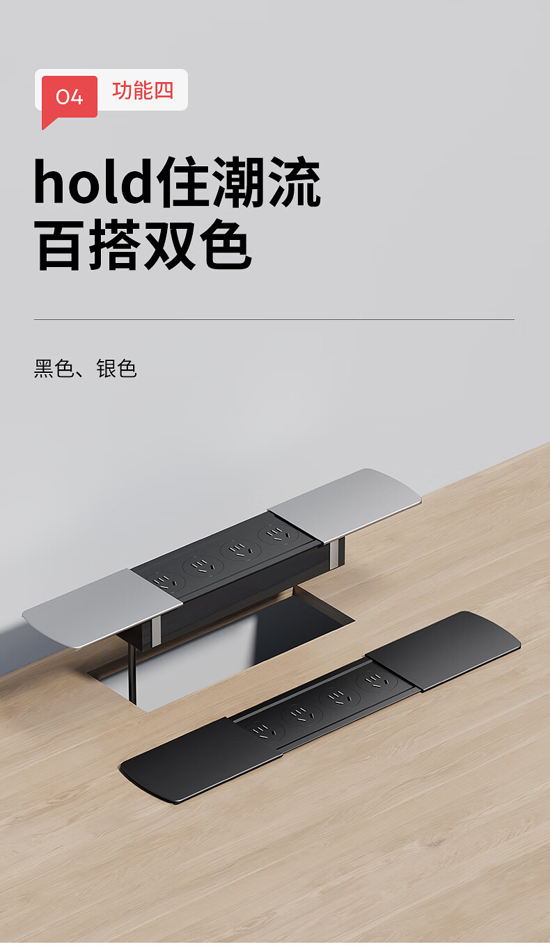 国际电工超薄纯平嵌入式滑盖桌面插座岛台隐藏式台面插排书桌多功能接线板 银色丨四位五孔(不带线不送底座)