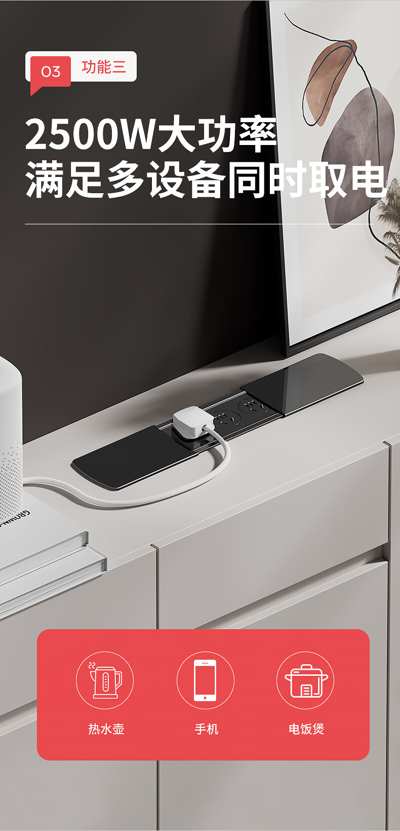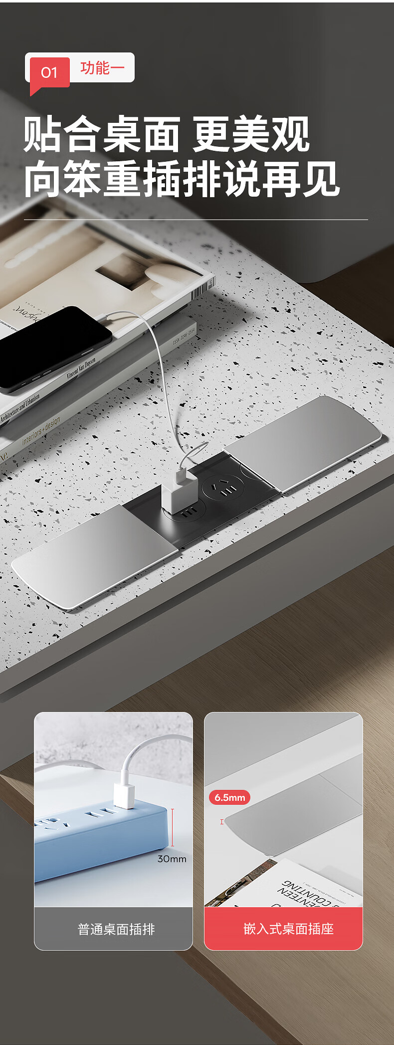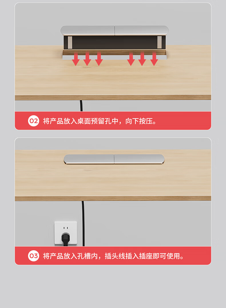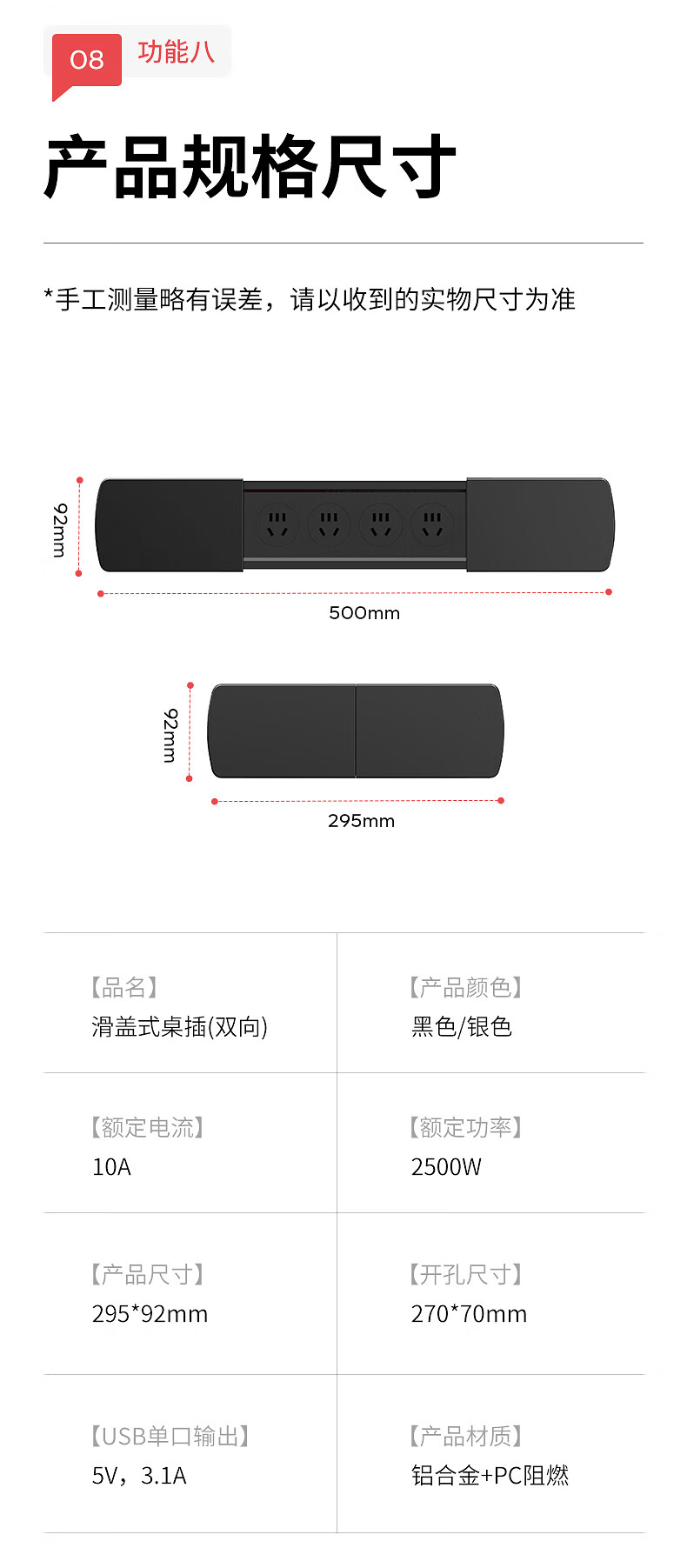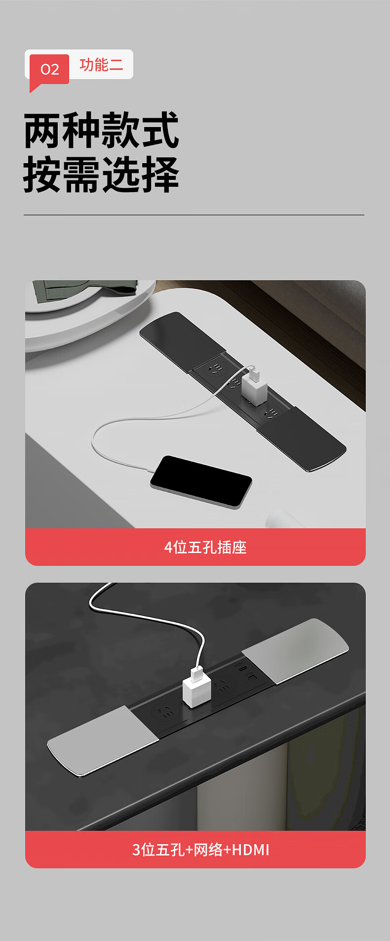 国际电工超薄纯平嵌入式滑盖桌面插座岛台隐藏式台面插排书桌多功能接线板 银色丨四位五孔(不带线不送底座)