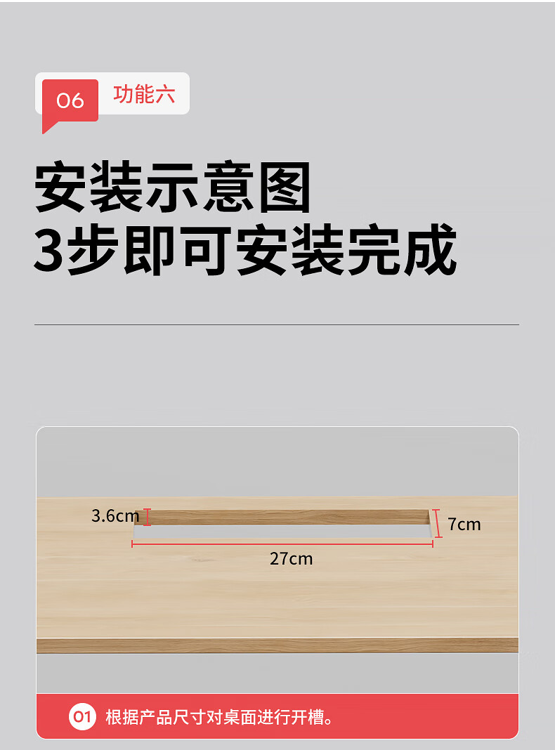 FDD国际电工PDU电竞专用桌面排插隐藏式无痕安装插板防过载家用桌下接线插座 普通单段6位五孔开关双断黑色【无线】