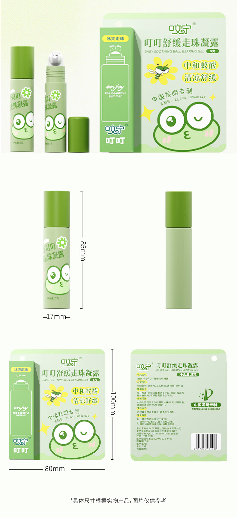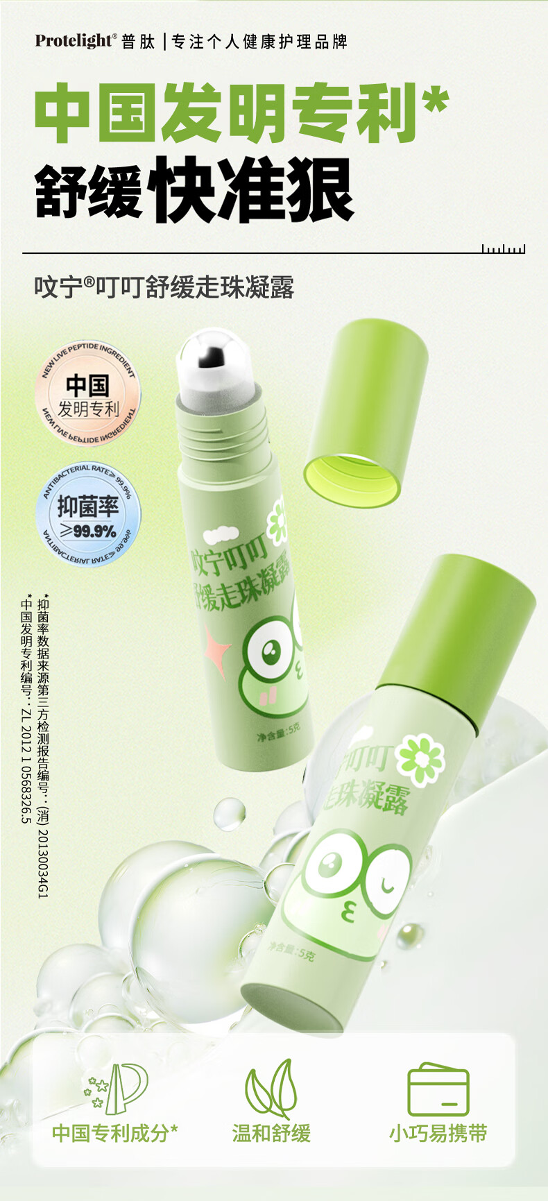 普肽呅宁叮叮舒缓走珠凝露5gx1支 婴儿清凉露叮包舒缓蚊虫叮咬儿童