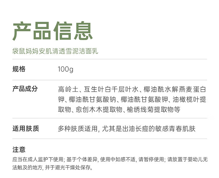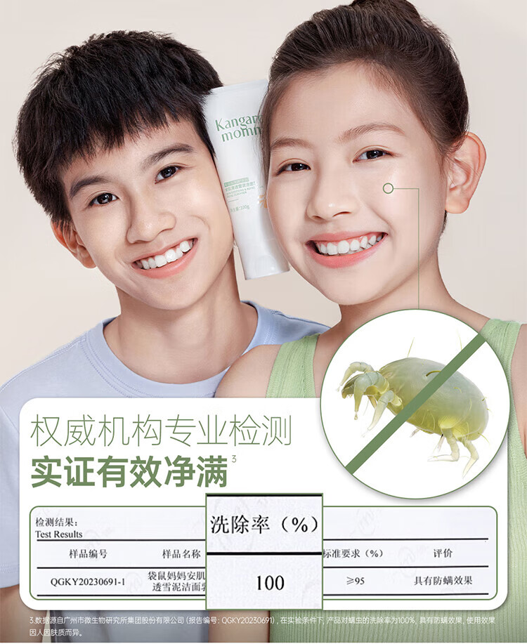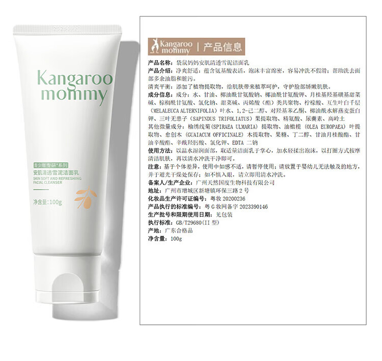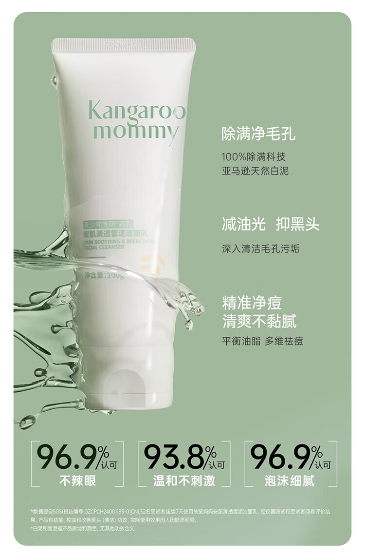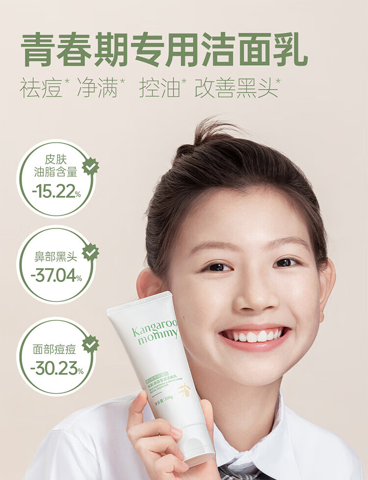 袋鼠妈妈(Kangaroo Mommy)儿童洗面奶青少年控油祛痘水油平衡洁面乳3-18岁男女生专用护肤品 【送10元E卡】洁面乳100g