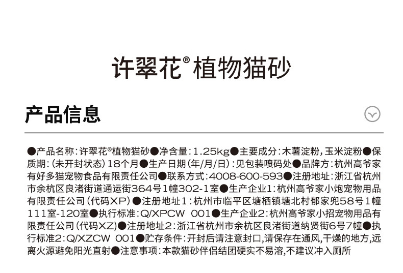 许翠花白金纯植物木薯猫砂1.25kg【拉新装】不粘底易吸水易结团