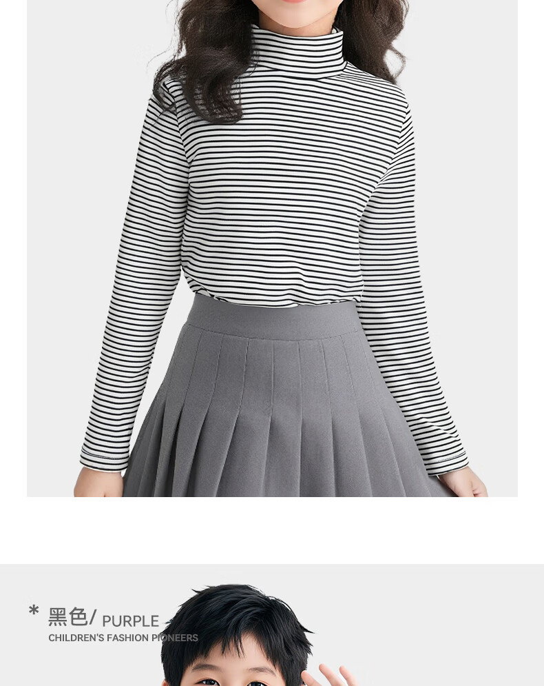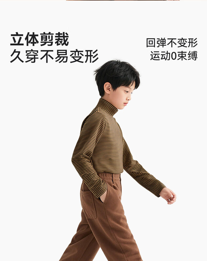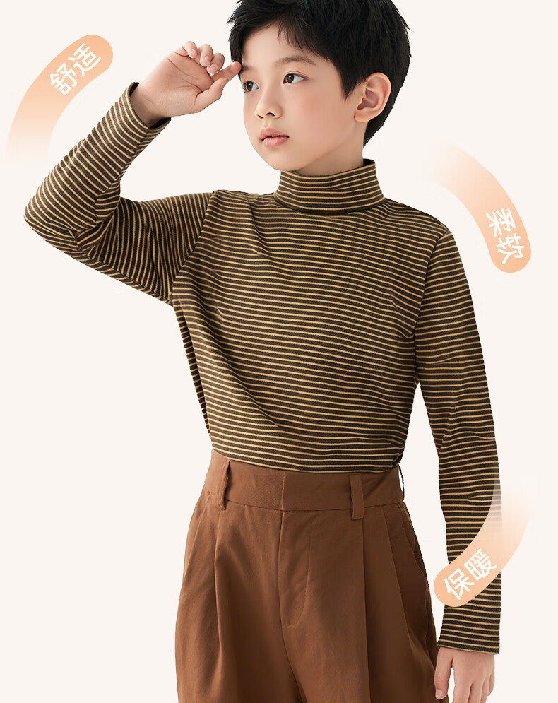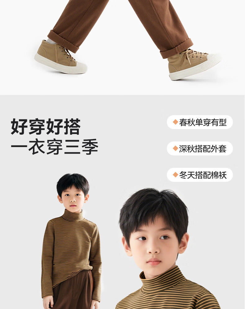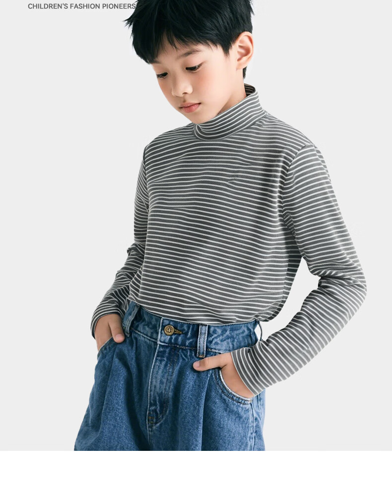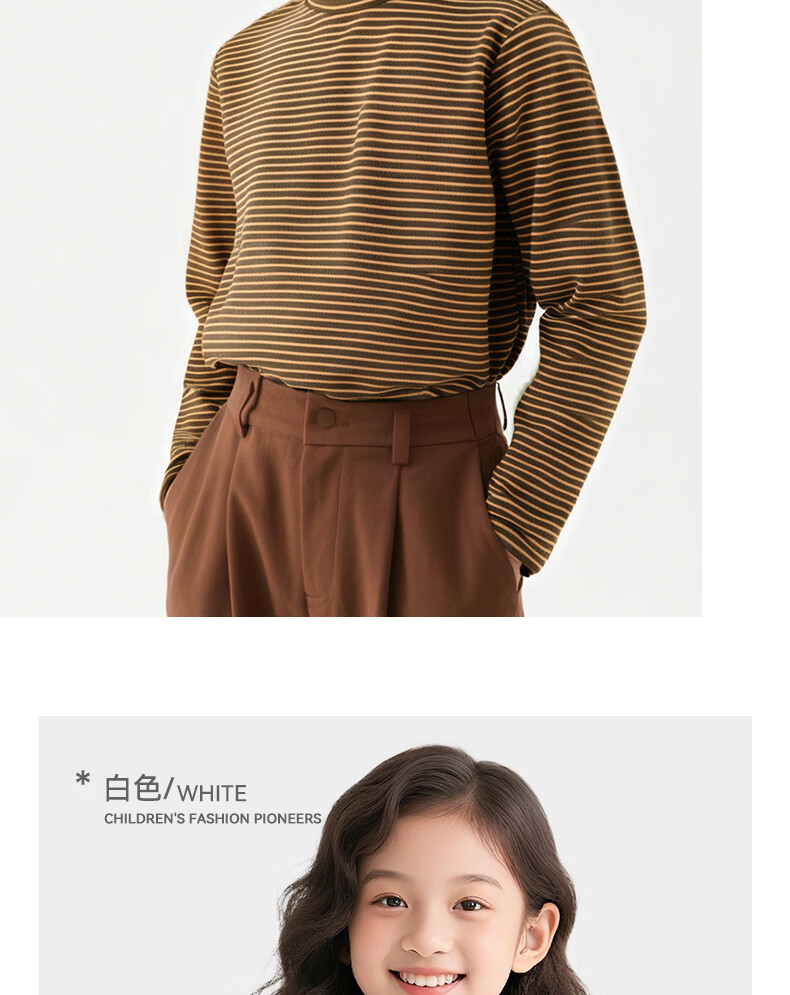 马克华菲(MARK FAIRWHALE)男女童打底衫中大童秋冬款条纹半高领上衣儿童保暖休闲长裤 纯色白色(条纹半高领) 160