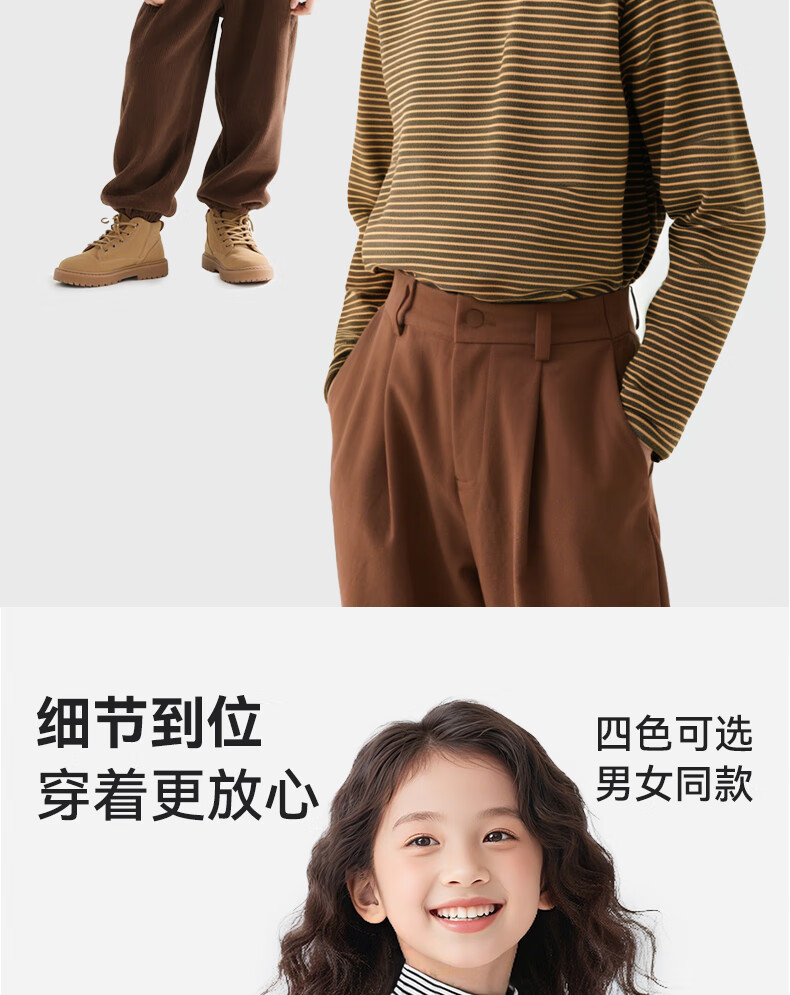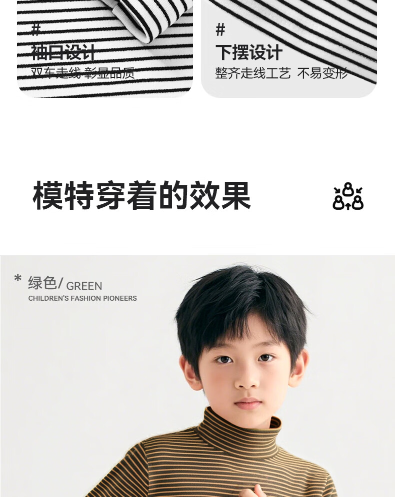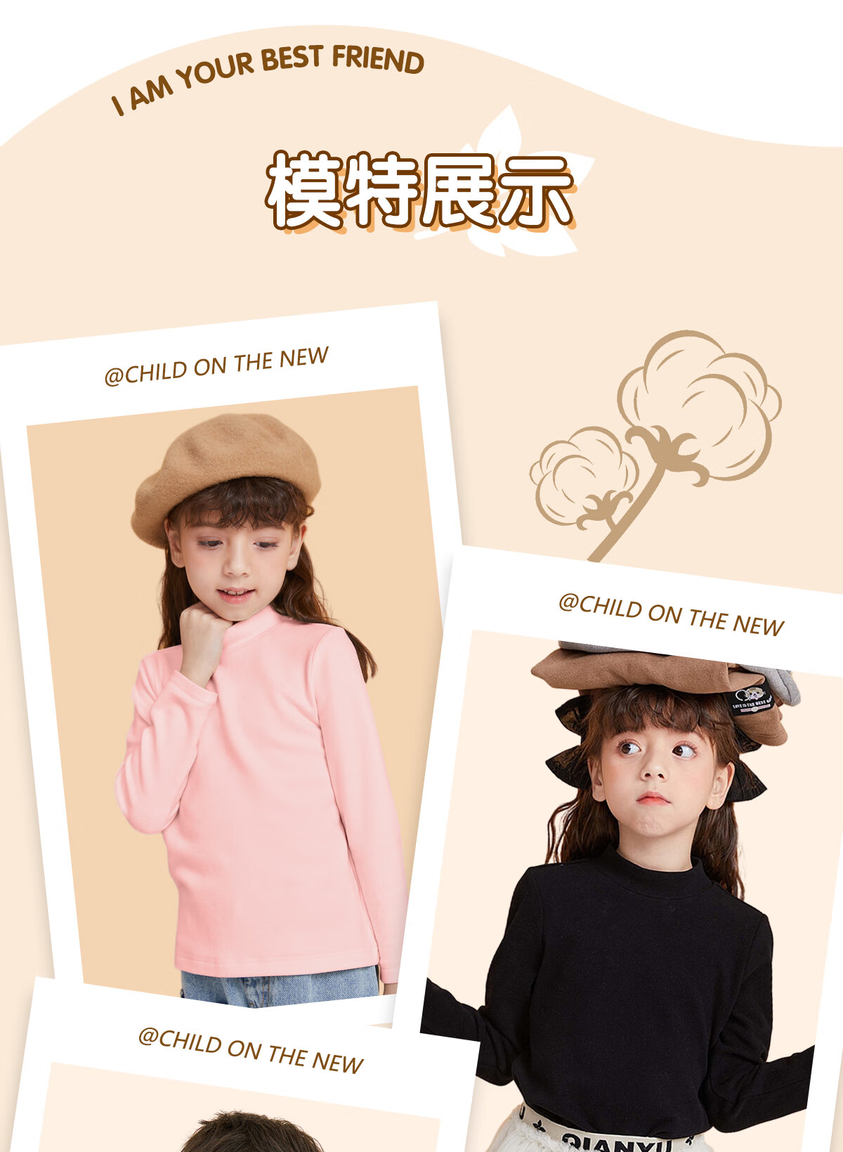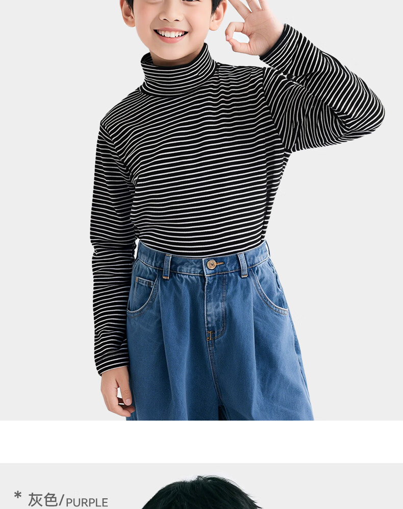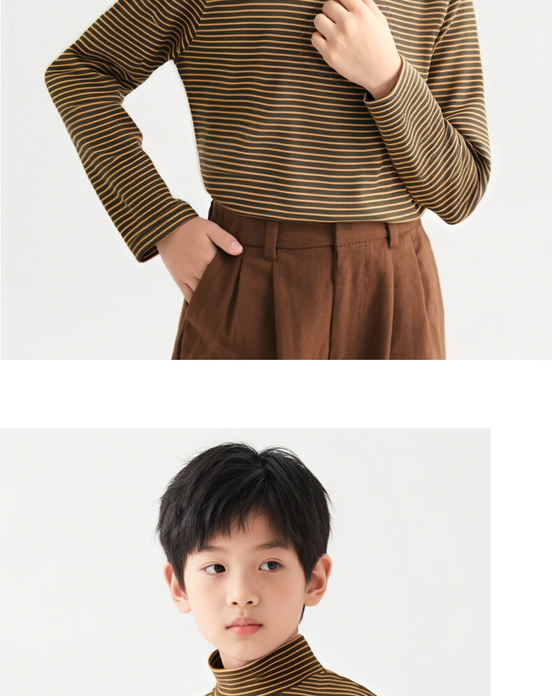 马克华菲(MARK FAIRWHALE)男女童打底衫中大童秋冬款条纹半高领上衣儿童保暖休闲长裤 纯色白色(条纹半高领) 160