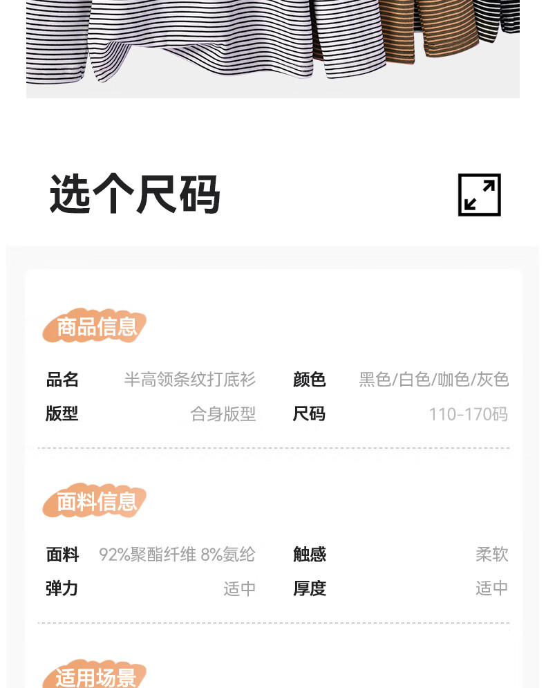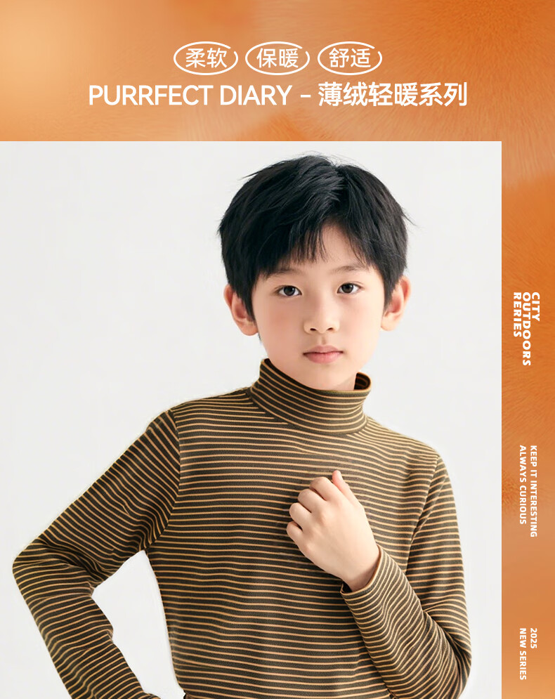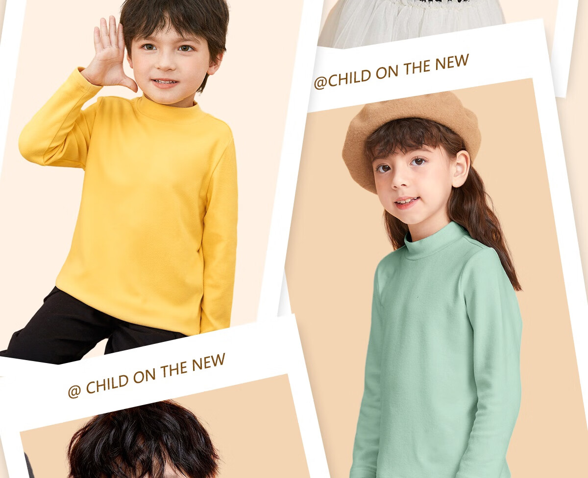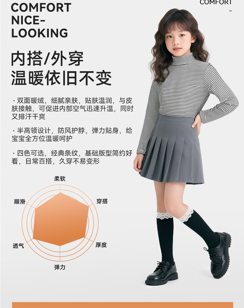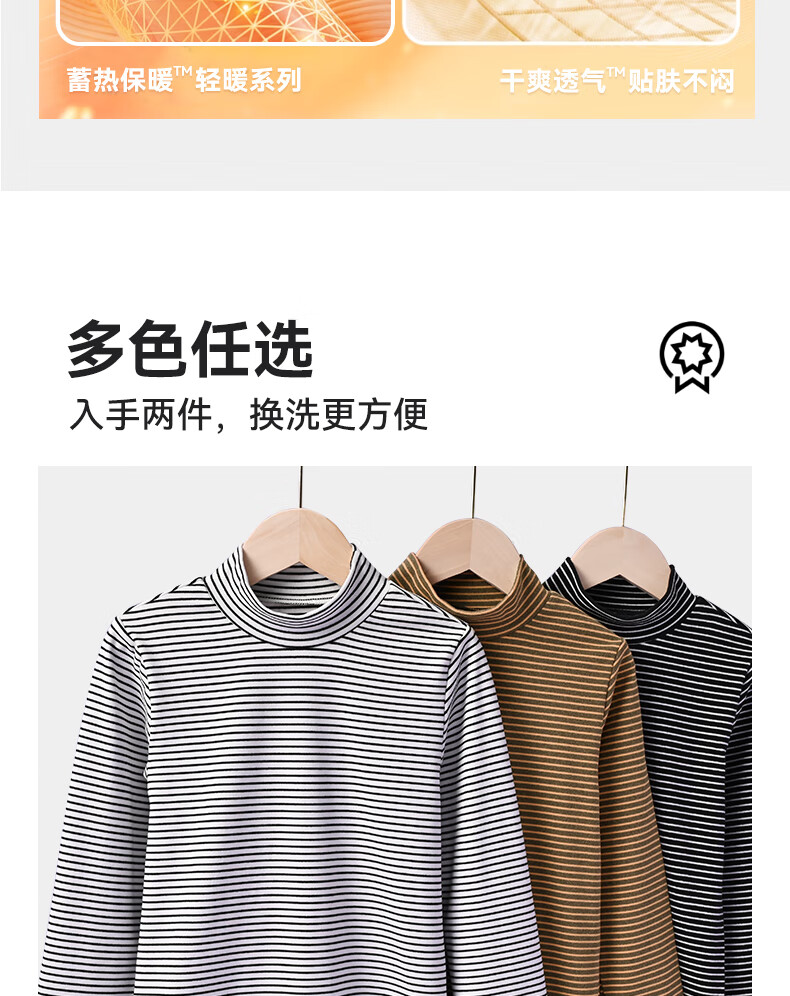 马克华菲(MARK FAIRWHALE)男女童打底衫中大童秋冬款条纹半高领上衣儿童保暖休闲长裤 纯色白色(条纹半高领) 160