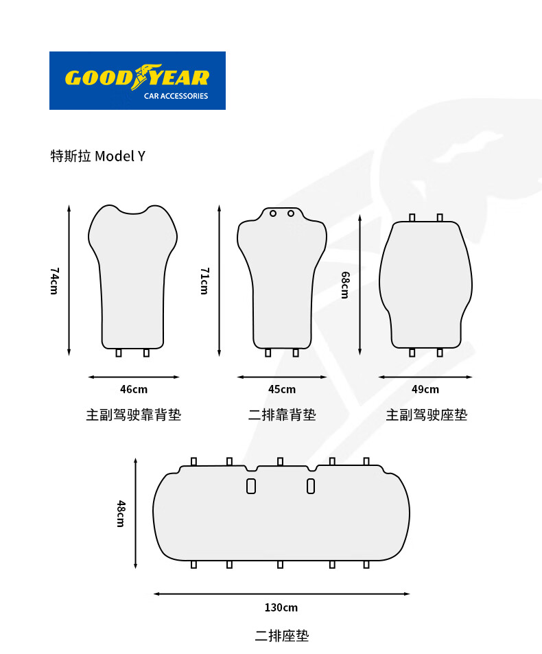 固特异(Goodyear)汽车座垫适用特斯拉modely四季通用防污原车色坐垫黑七件套