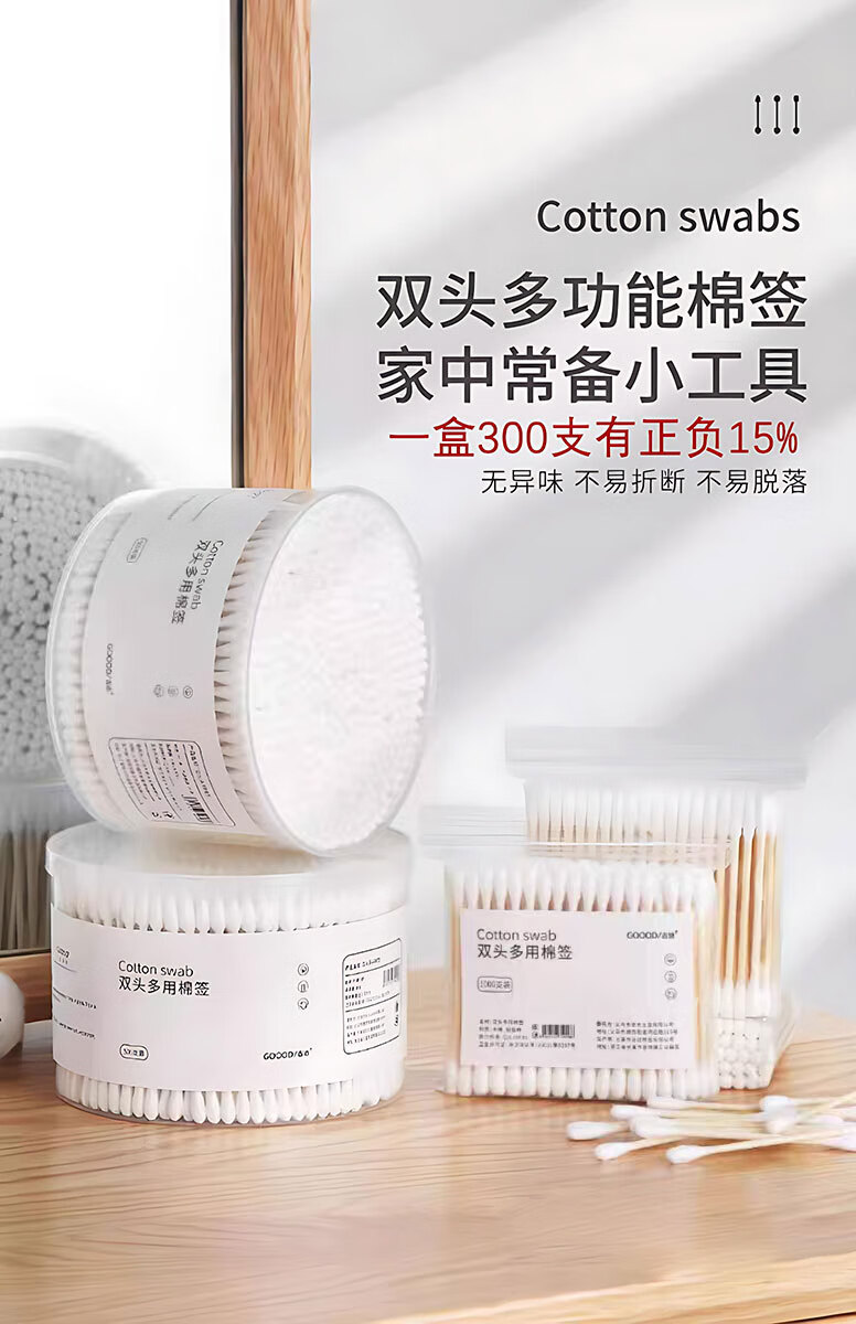 倩挥棉签掏耳朵挖耳家用一次性袋装家庭装双头消毒竹棒卫生 常规款 300枚 双头棉签*3