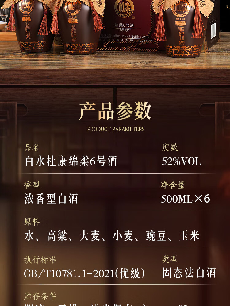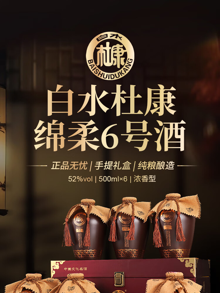 白水杜康(BAISHUIDUKANG)绵柔6号酒白酒整箱52度浓香型500ml*6瓶礼盒装请客送礼佳品 52度 500mL 6瓶